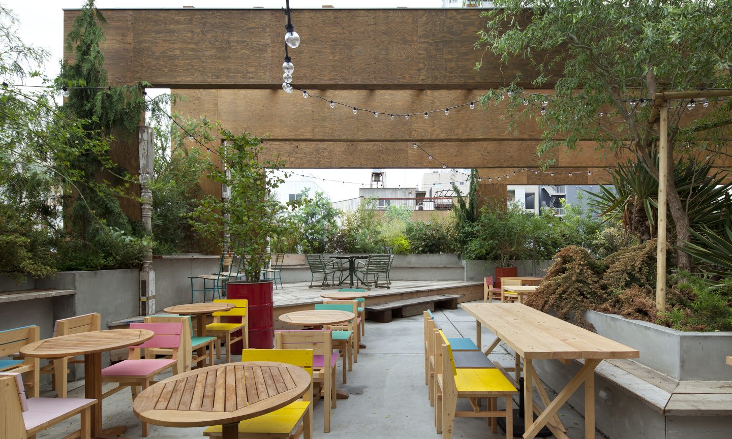 We regarded the built interior and its components the way we looked at the site within the geography. Relationships form within and without the structure, between the building, its garden, and beyond them, to the city. The rooftop becomes part of the shop’s interior design, a pergola enclosing the architecture and attaching it to its environment.