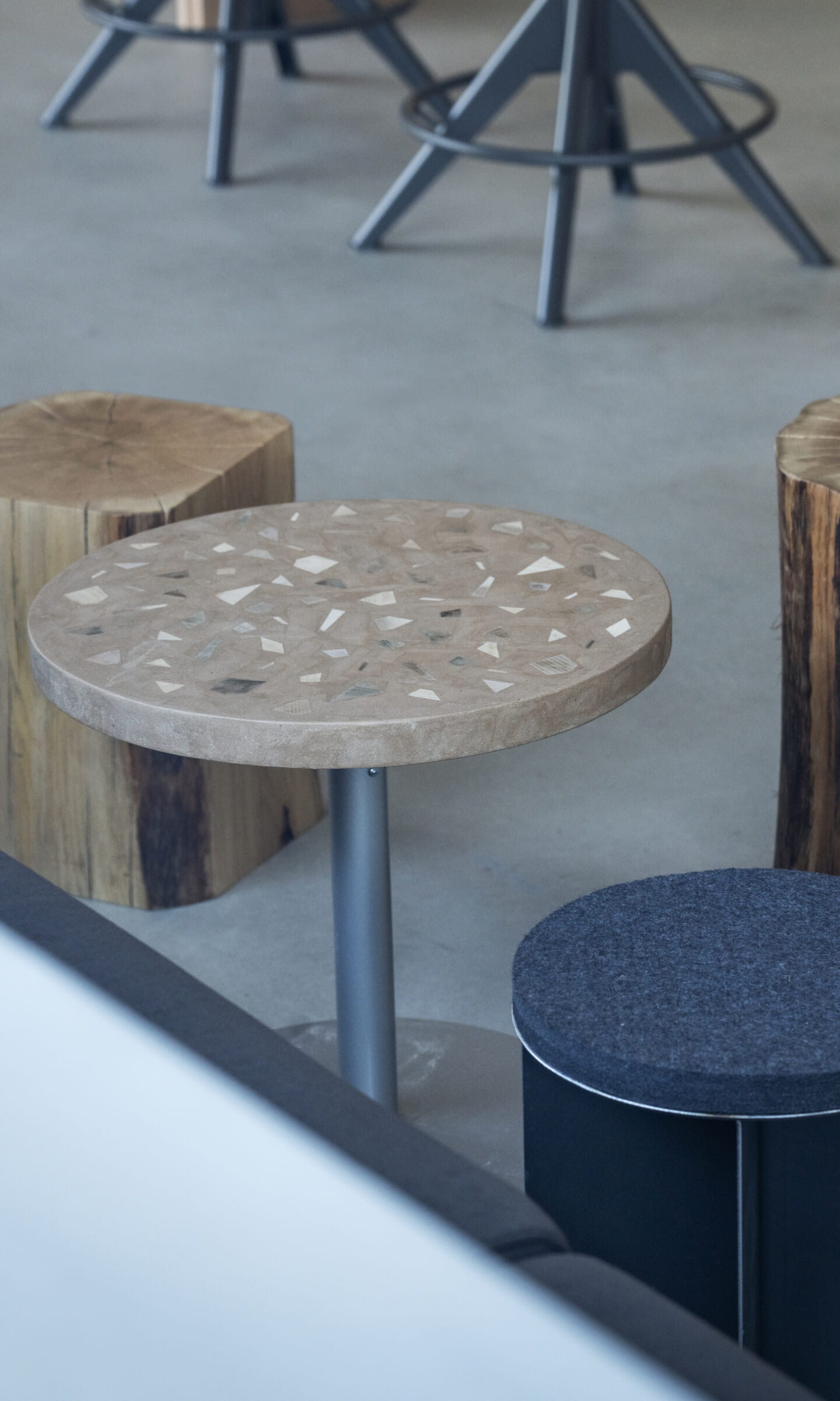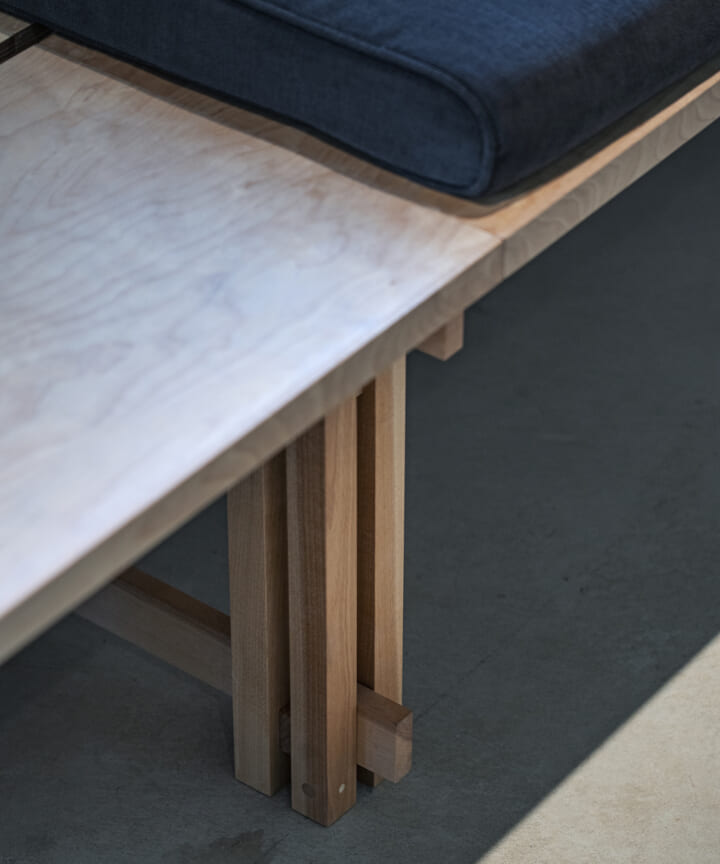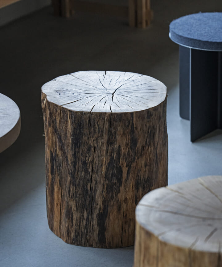 一貫して小経木の魅力でカフェ全体を構築していくことを自らに課しデザインしたことで、 パン耳材というパーツの活用法の幅を広げる事を可能にしたと思う。また、木の皮をあえて残すことで、製材されて薄れてしまう木の記憶を残した。「制約の中にこそ新たなクリエイションの可能性が潜んでいる」ということを改めて感じることが出来た。この空間に訪れる人にもそれを感じてもらえることを願っている。