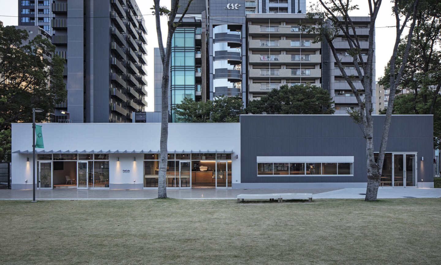 公園に対して敢えて屋根という低さの制約を作ること。
