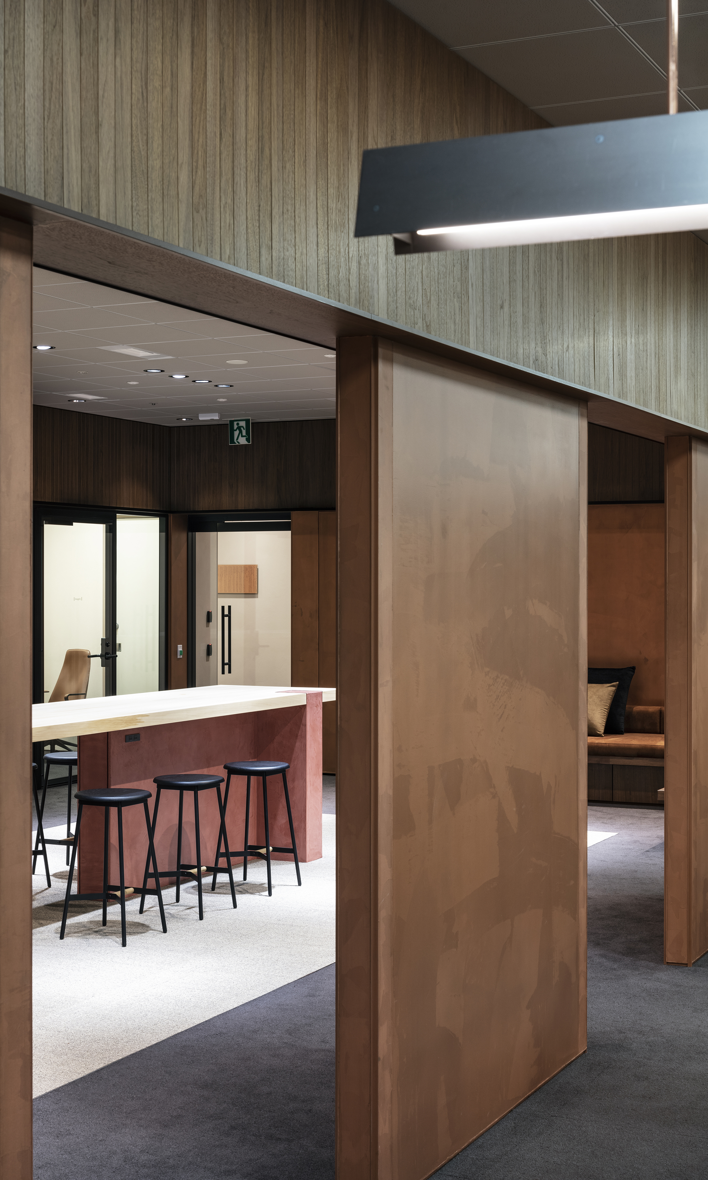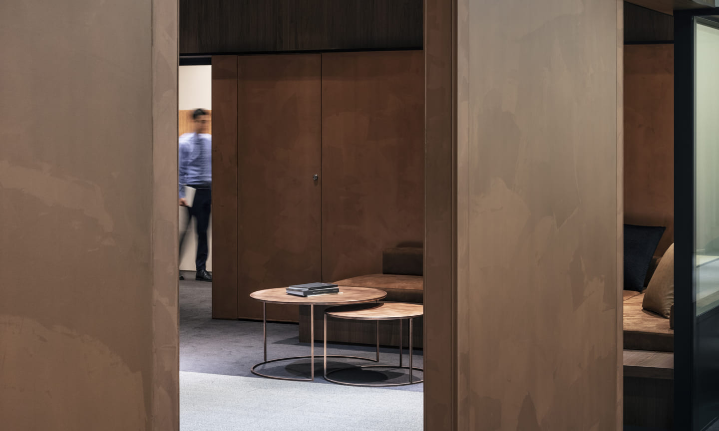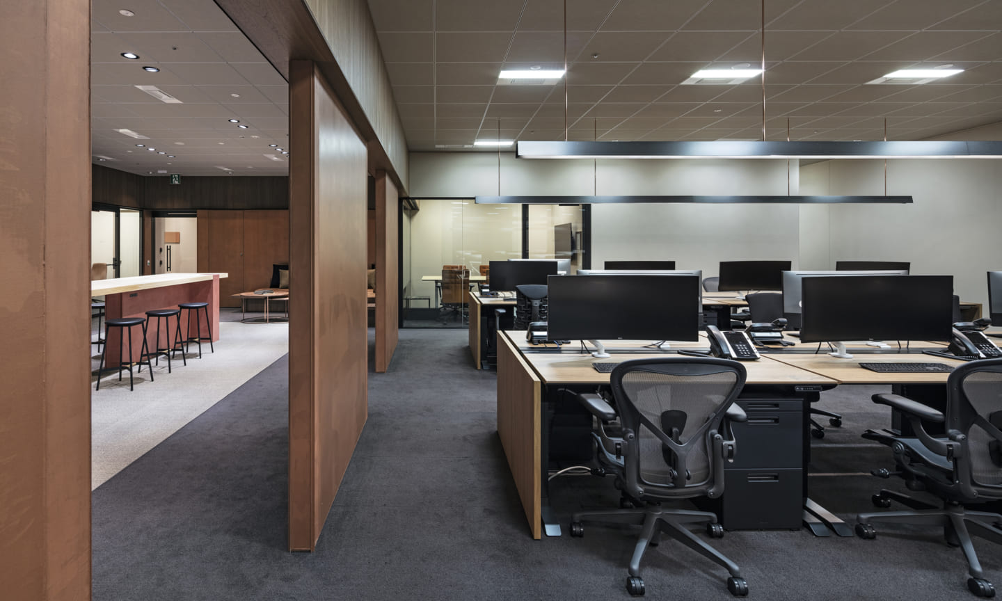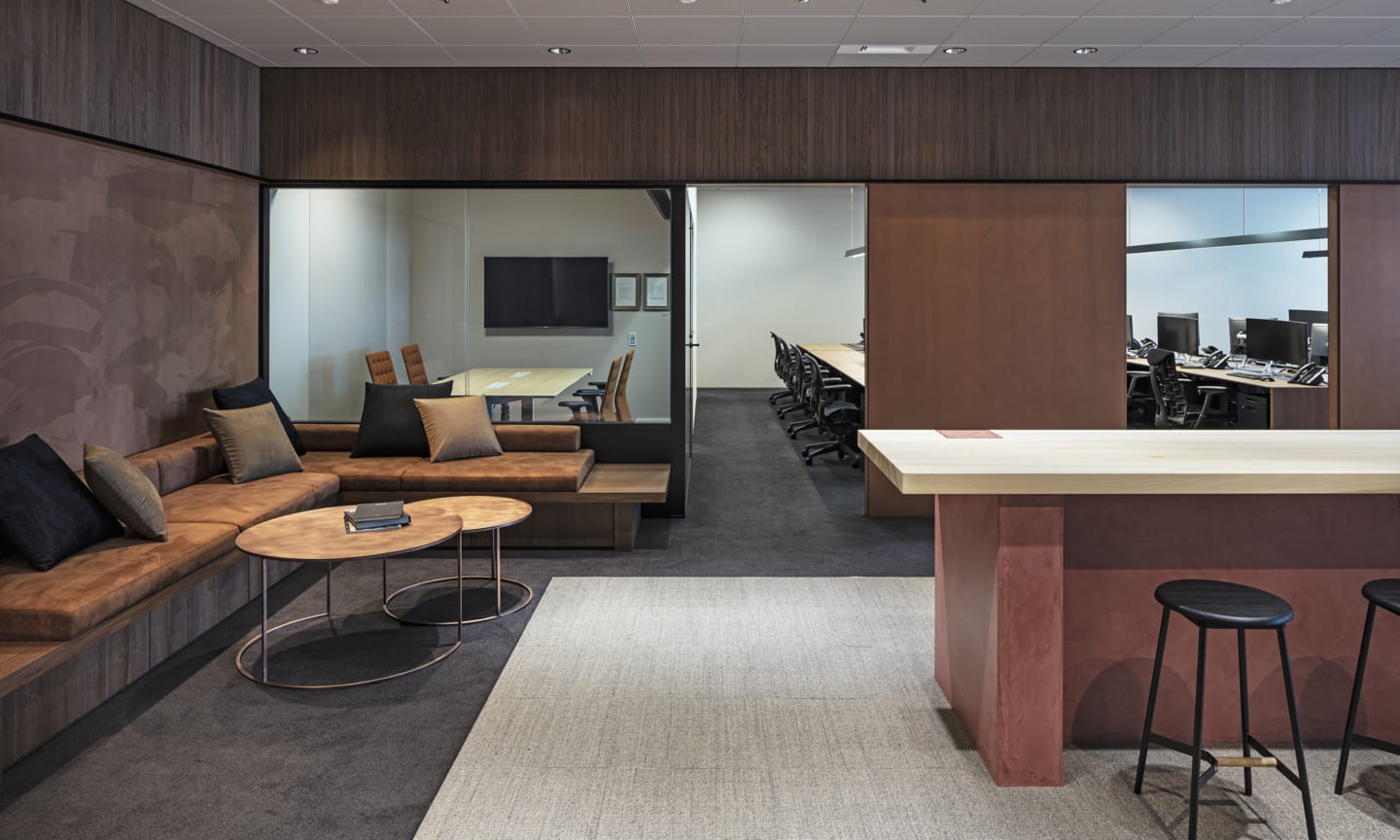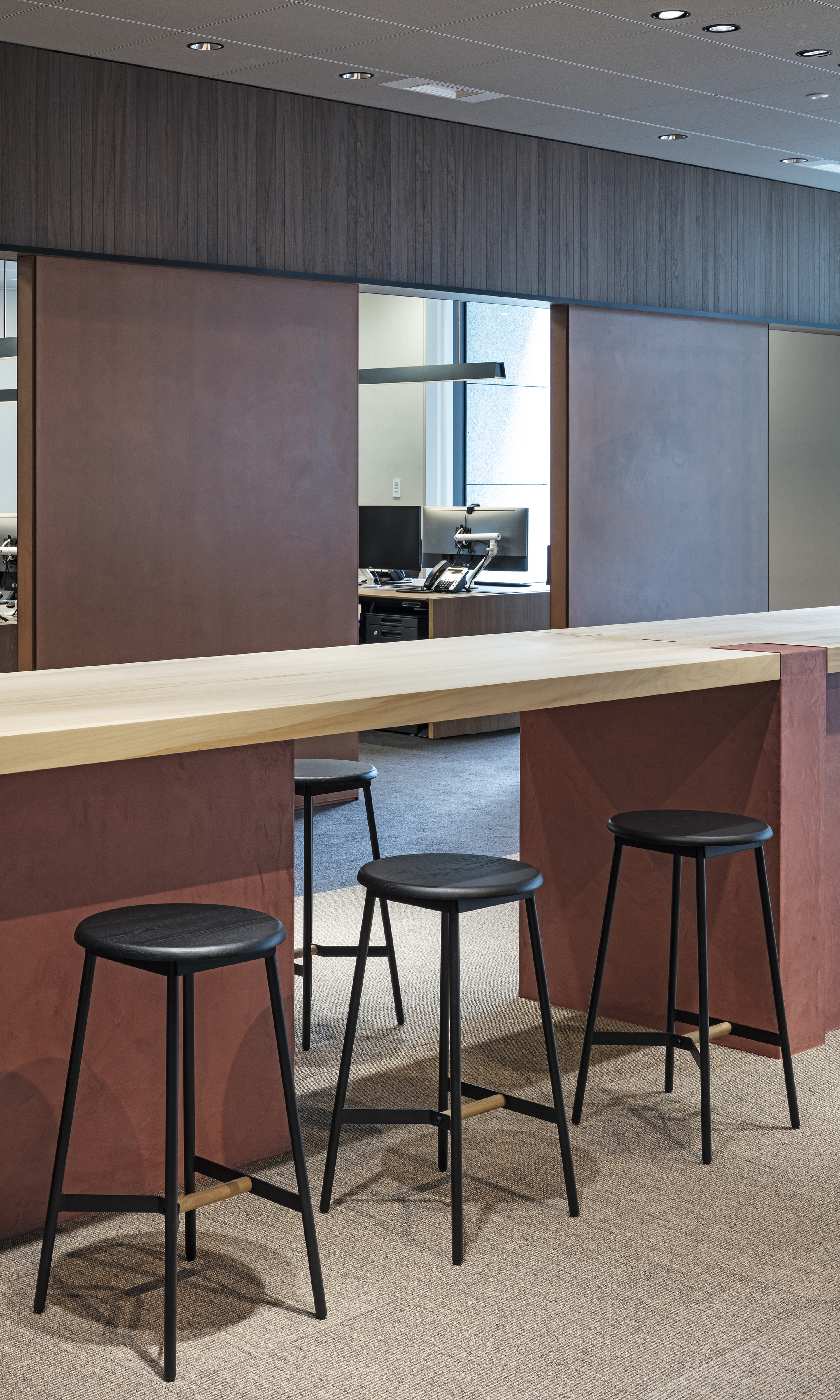 People gather and communications happen as a result of placing a courtyard. Yet being an office interior, the space has depth within it.