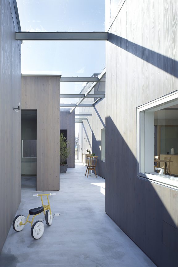 The narrow alleys between houses, the wood’s edge, under the floorboards, an open lot, an old shed – all places transformed by children who inhabit them seeking a place to play. Unlike the sort of project – a park or public garden – that sets out with a program to accommodate play, we sought to build a place incorporating a courtyard that stimulated the natural will to play, enclosed within the safe harbour of home.