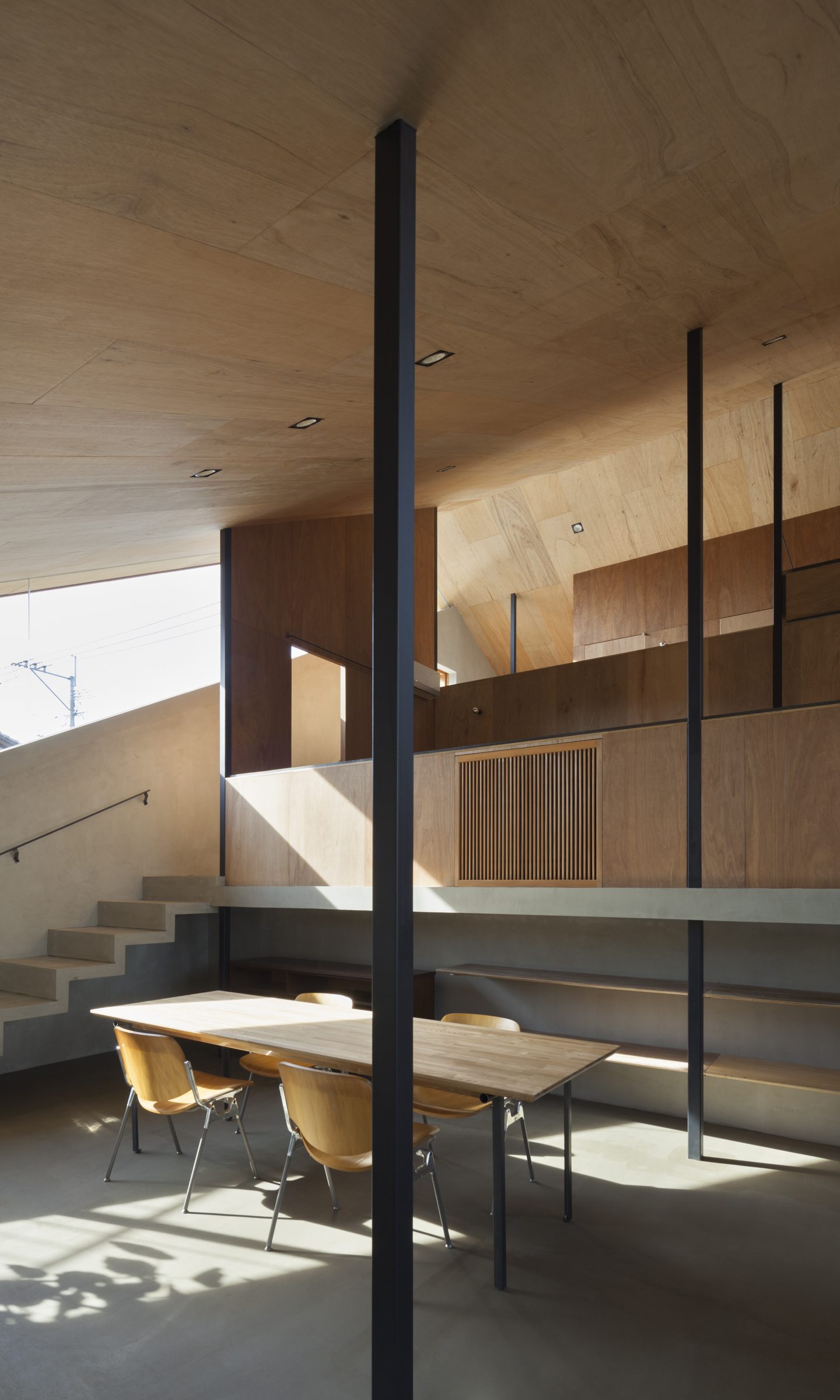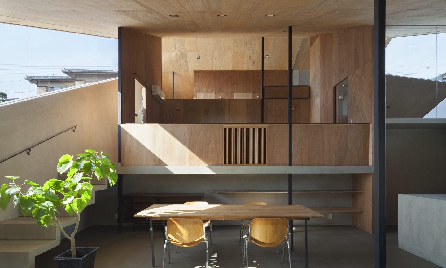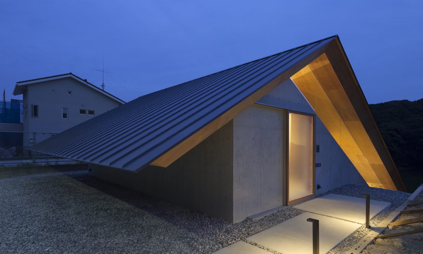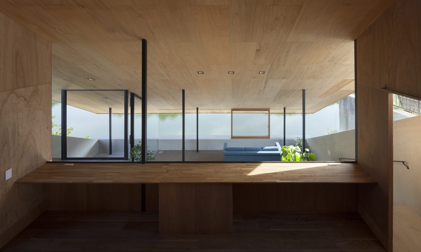 The plan called for a residence on a deep slope adjoining a reservoir in Fukuoka, for a family of four. In this environment trees and flowers grow in abundance, and here too, local wildlife of every variety regularly happen by and peer in. It’s a setting in which one can simply stand still and dwell at length on the enduring force of nature. Here the act of placing a roof over the site engages ideas of both enclosure and liberation.