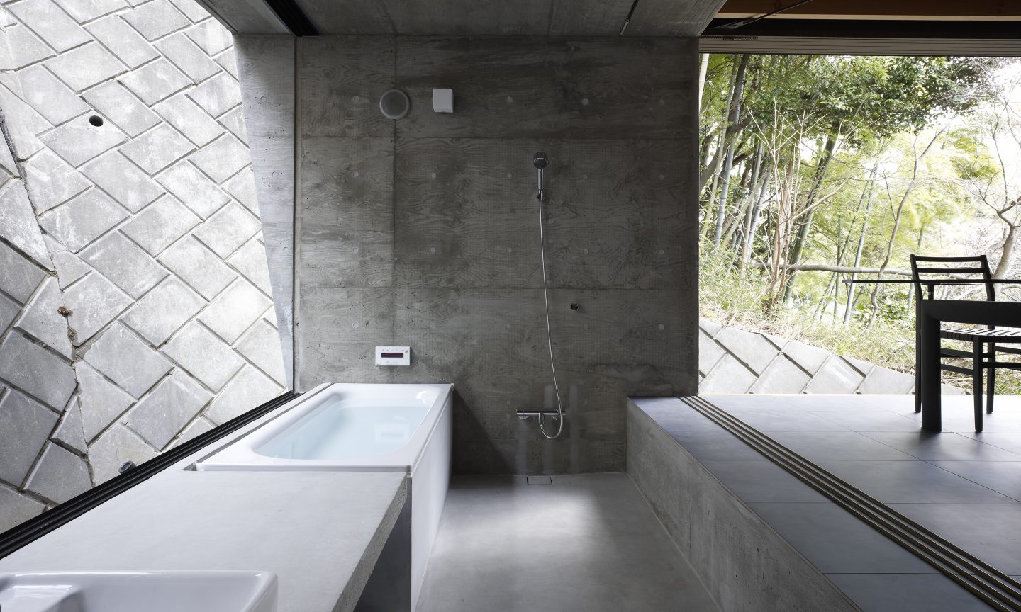 Generally, where plots contain uneven grades and other physical deformations, a building’s planning doesn’t commence until the site is cleared and stabilized by reclamation. Although that makes sense in terms of its workability, it also results in a loss of individuality. Here we let the coarse personality of the existing site exert its influence on the architecture. At the same time, we brought the site’s small treasures, such as an adjacent bamboo thicket, it into the equation.