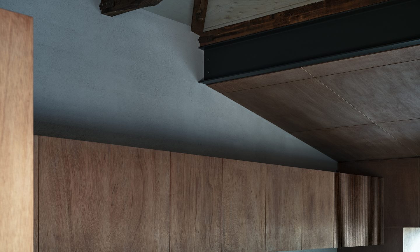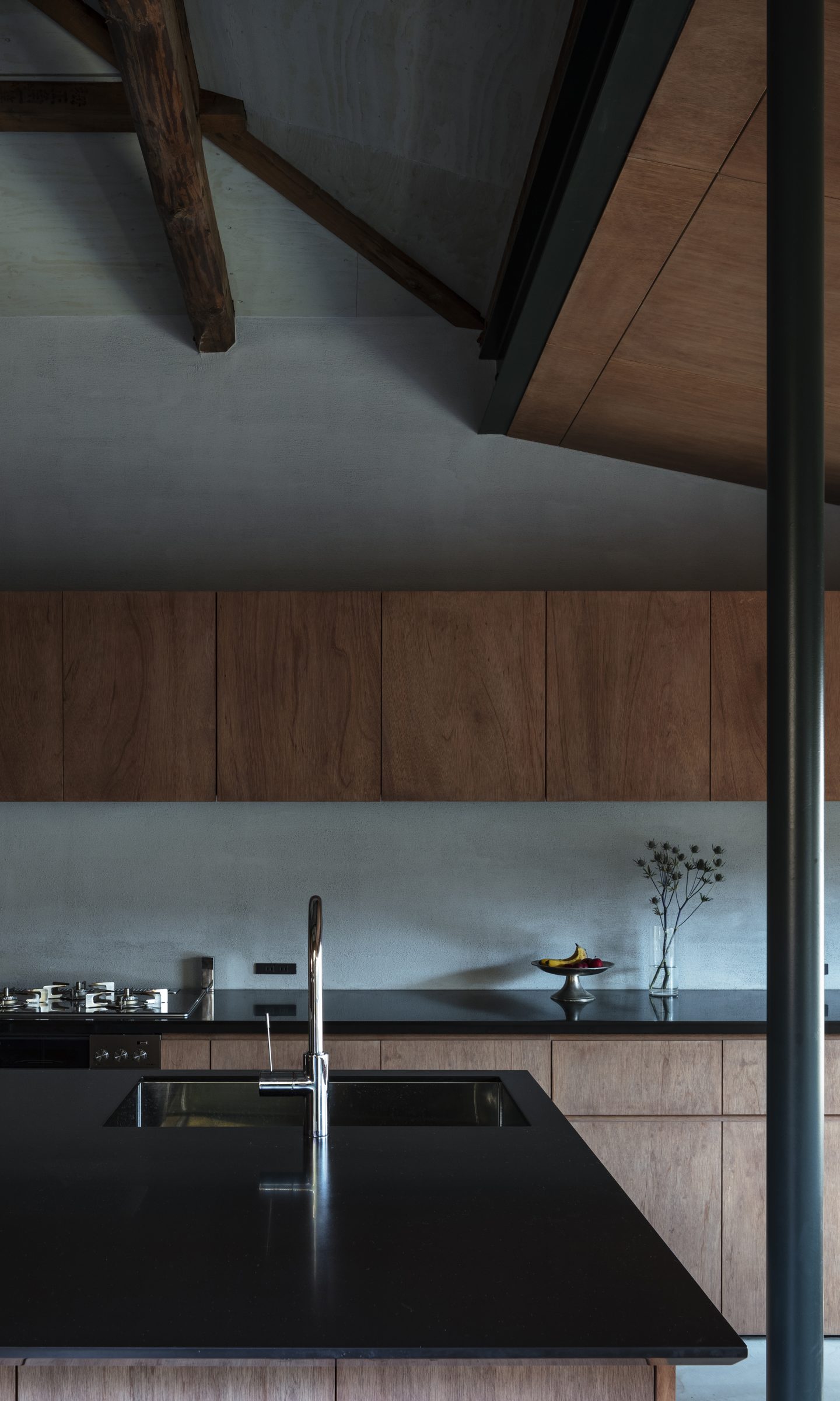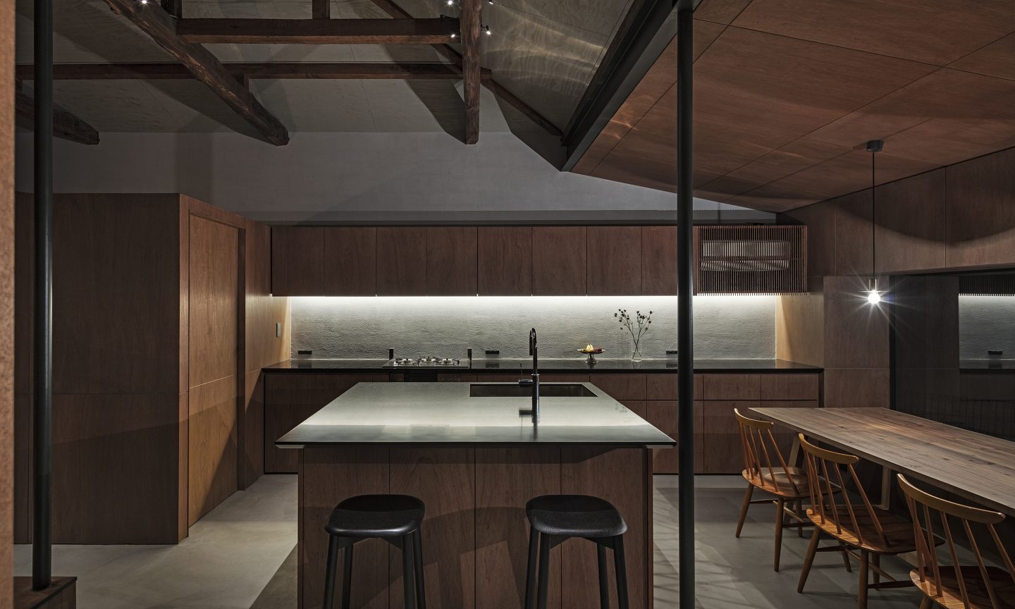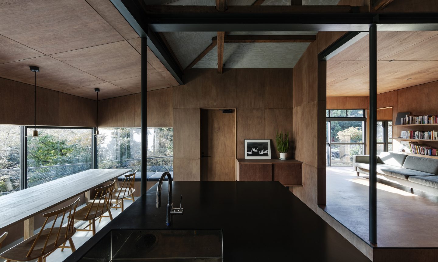 The bench in the kitchen reflects the seasonal change like a picture frame. Framing out the colours of forests and mountains, the place for a family blends into the scenery.