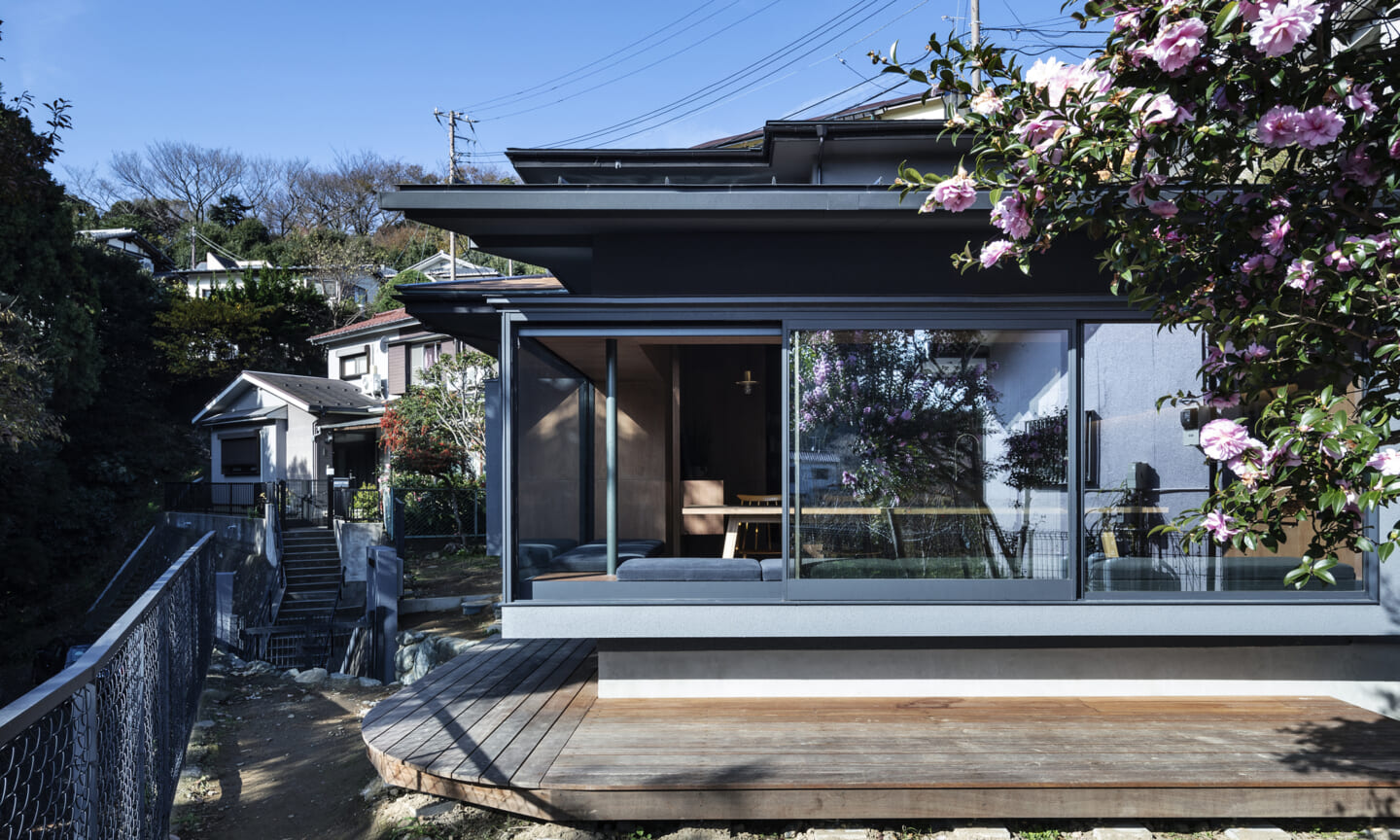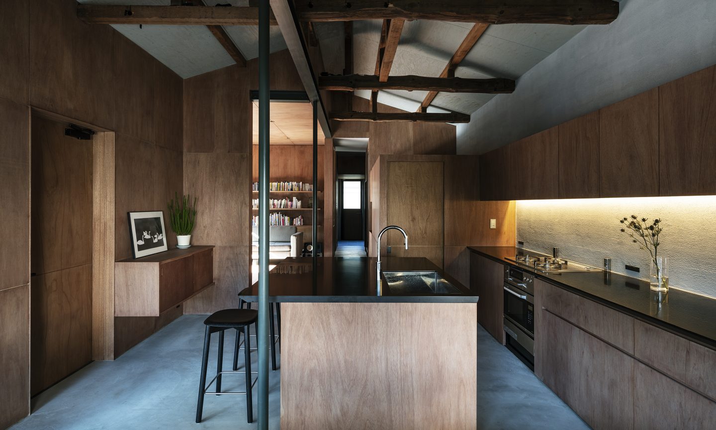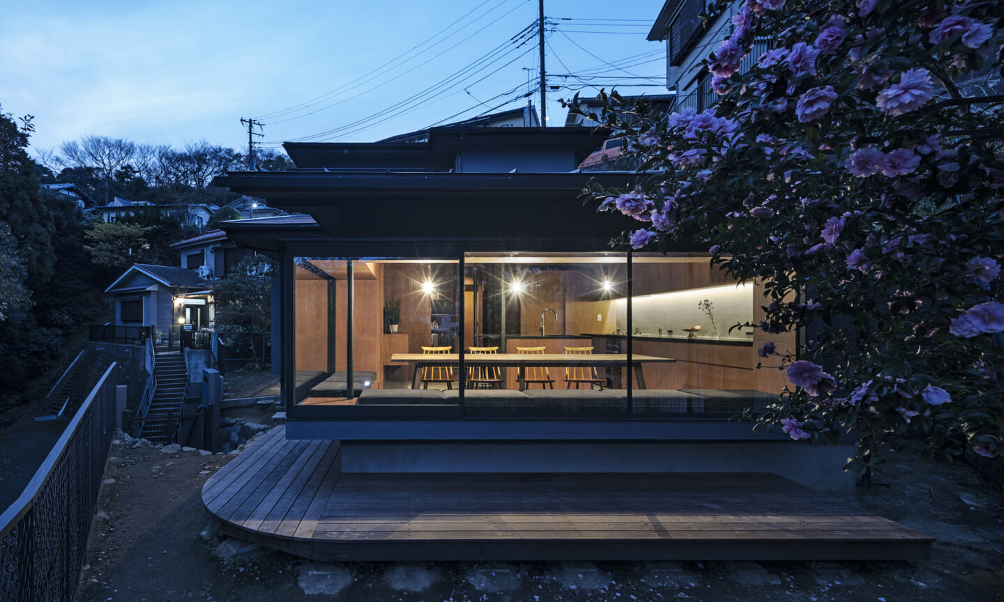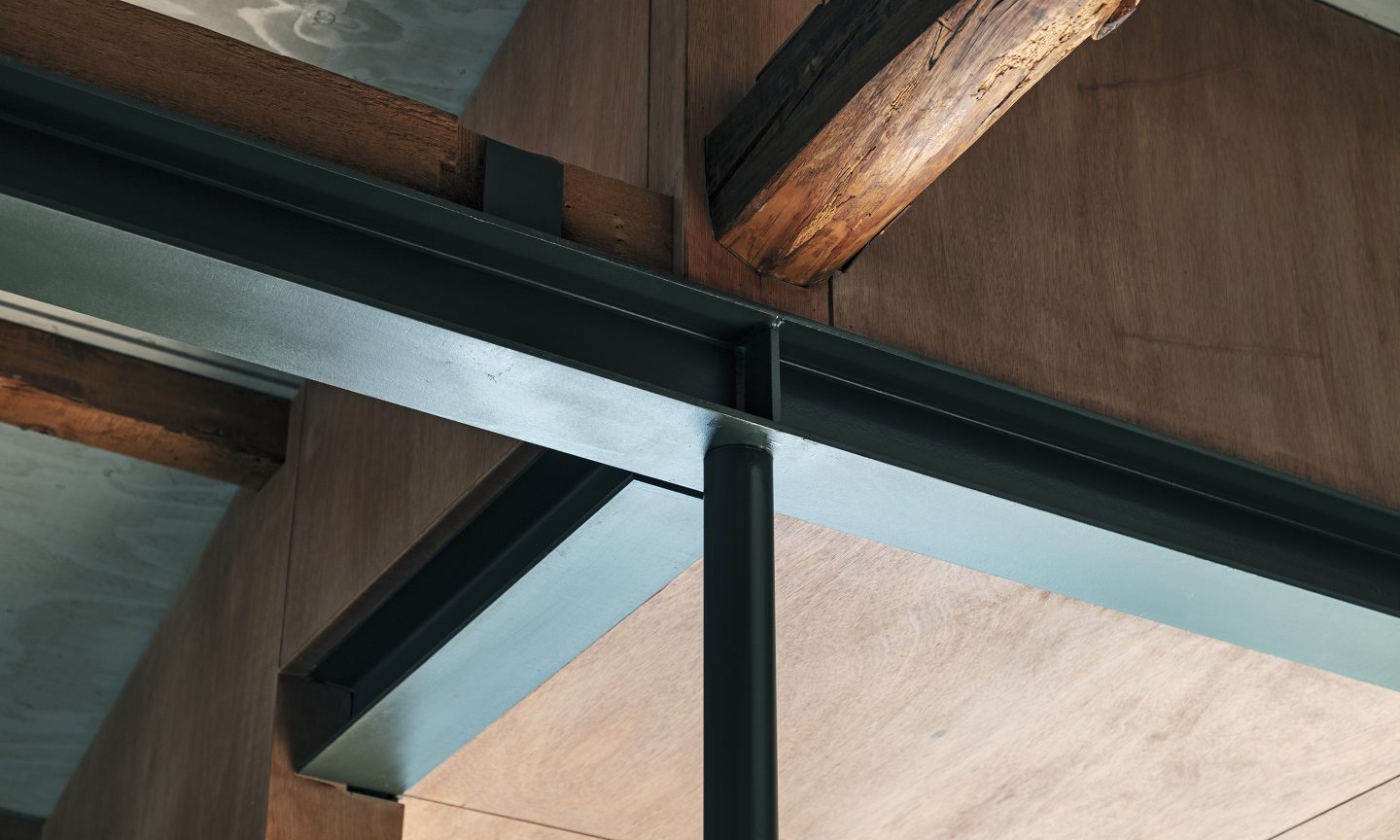 The bench in the kitchen reflects the seasonal change like a picture frame. Framing out the colours of forests and mountains, the place for a family blends into the scenery.