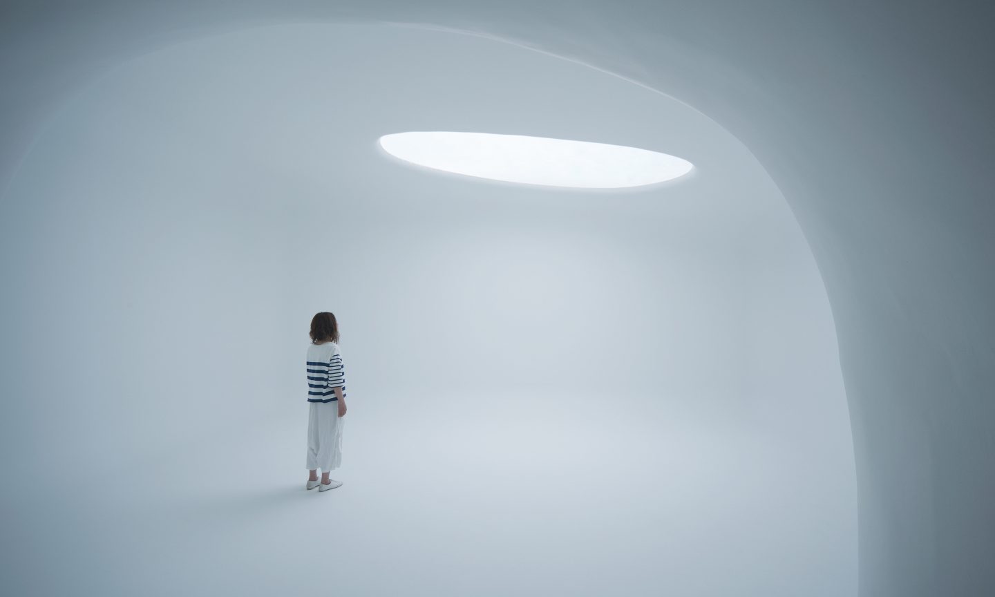 The venue for the exhibition was in Milan’s Zona Tortona district, a part of town that presents an obdurate face, with buildings made of stone, along roads paved with them. To force a reset in the visitors’ consciousness, we brought them from that environment directly into a room that was darkened, peaceful, and where the floors were of a material that felt soft beneath the foot. Beyond that was a room where they would observe light that we brought as close to possessing the qualities of nature as possible. We created a space for the visitor to peer into a port that appeared suffused in this light; a fog-like vault, where we eliminated all ordinary signposts of architecture. Where the perception of depth became unclear, and the provenance of light and shadows uncertain. The cutting-edge LED lighting system we were given to work with was, at that time, Toshiba’s most advanced. There would be no program, no direction, no music. Instead, we designed a mechanism for generating sound waves to be projected upon the walls, so that the walls themselves acted like the diaphragms of speakers, amplifying and returning the sound of visitors’ footsteps and speech. Eliminating any hint of showy production, we chose to leave the visitor alone with the most basic elements of light and sound, in the hope that this meditation would extend a message directly into the imagination, offering a unique experience that suggested the possibilities of the future.