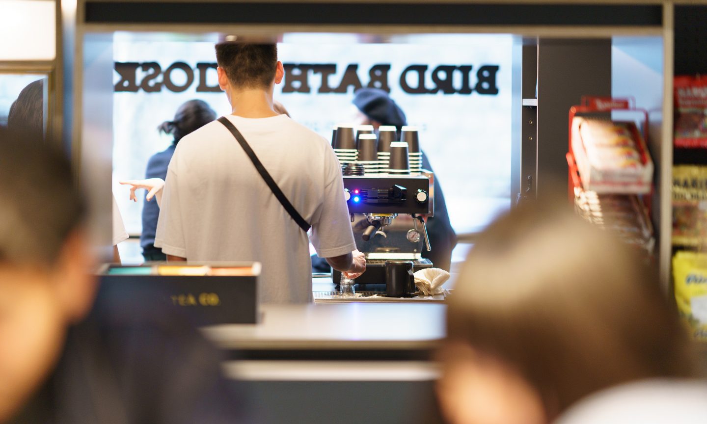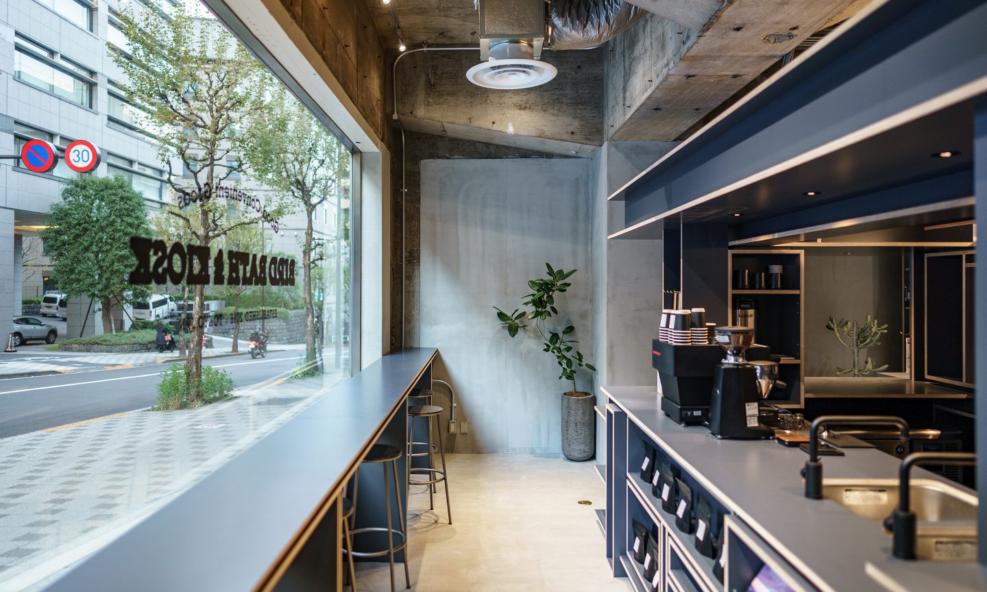 建築ではインナーバルコニー・屋上テラス・ラウンジなどの余白空間を設け、ビル内に様々な関わりが生まれる仕掛けを導入し、人と人、まちとオフィスを繋ぐハブとなる存在としてエントランスにキオスク型(売店)のコーヒースタンドを提案し、同店の運営も弊社で行なうこととした。