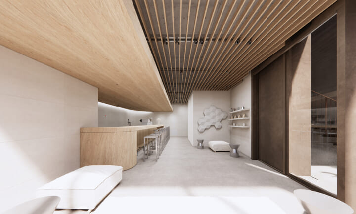 人工と自然の調和を軸に据えた「Organic Landscape」という考え方を反映し、有機と無機、自然と都市、静と動、内と外──相反する要素が共存する空間を立ち上げています。