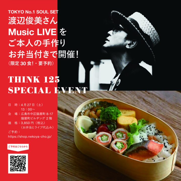 THINKの次の日は渡辺俊美さんのライブをご本人が作ってくれたお弁当を味わいながらお楽しみいただけます!実際に詰めているところも見学できる猫屋町ビルヂングならではのスペシャルイベントです。ご予約はプロフィールリンクのオンラインショップより!