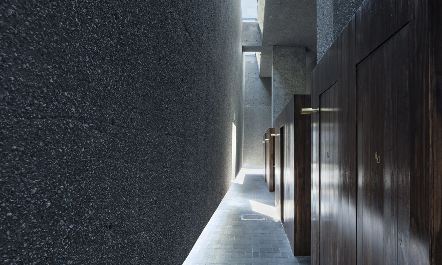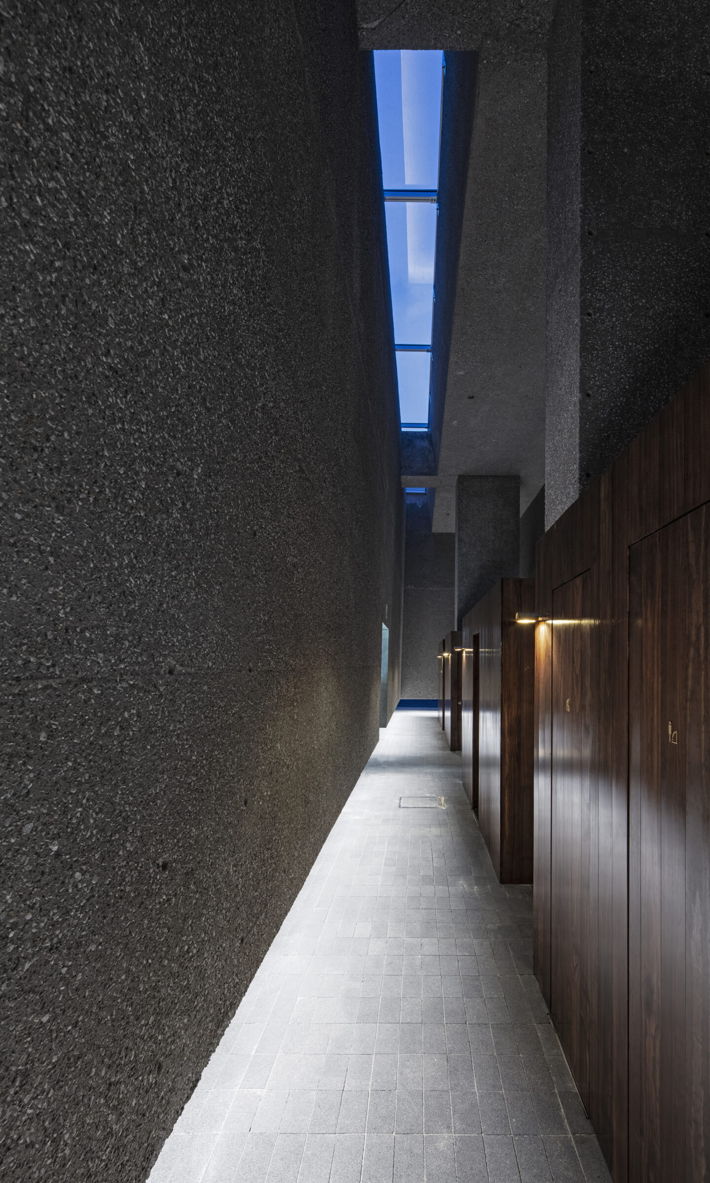 この建築では"重たさによる浮遊感"や"暗さによる光の存在感"など矛盾により顕在化される関係性を丁寧に積み上げて空間を構築することで、街と建築のあいだにある境界線をぼんやりと溶かし、自然と建築が共鳴しあうような魅力的な境界の在り方を模索した。建物内の余白はアートのための場所として残しており、成熟した都市における公共建築として「用をたす」という機能だけにとどまらず、街をめぐる楽しみというもう一つの意味も建築に持たせている。