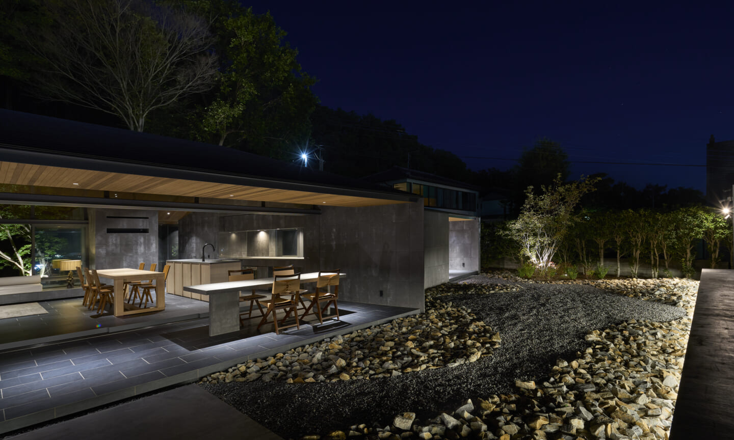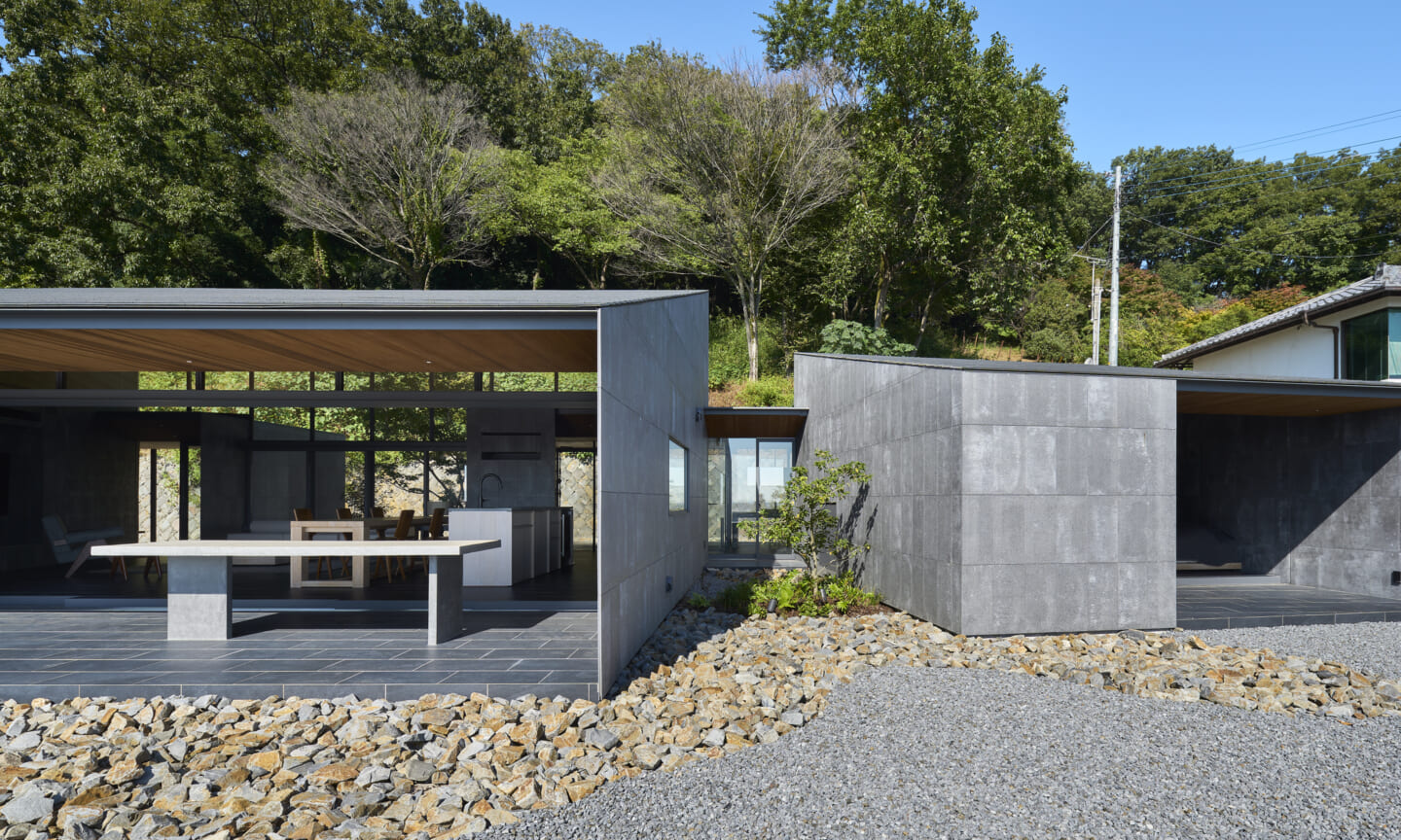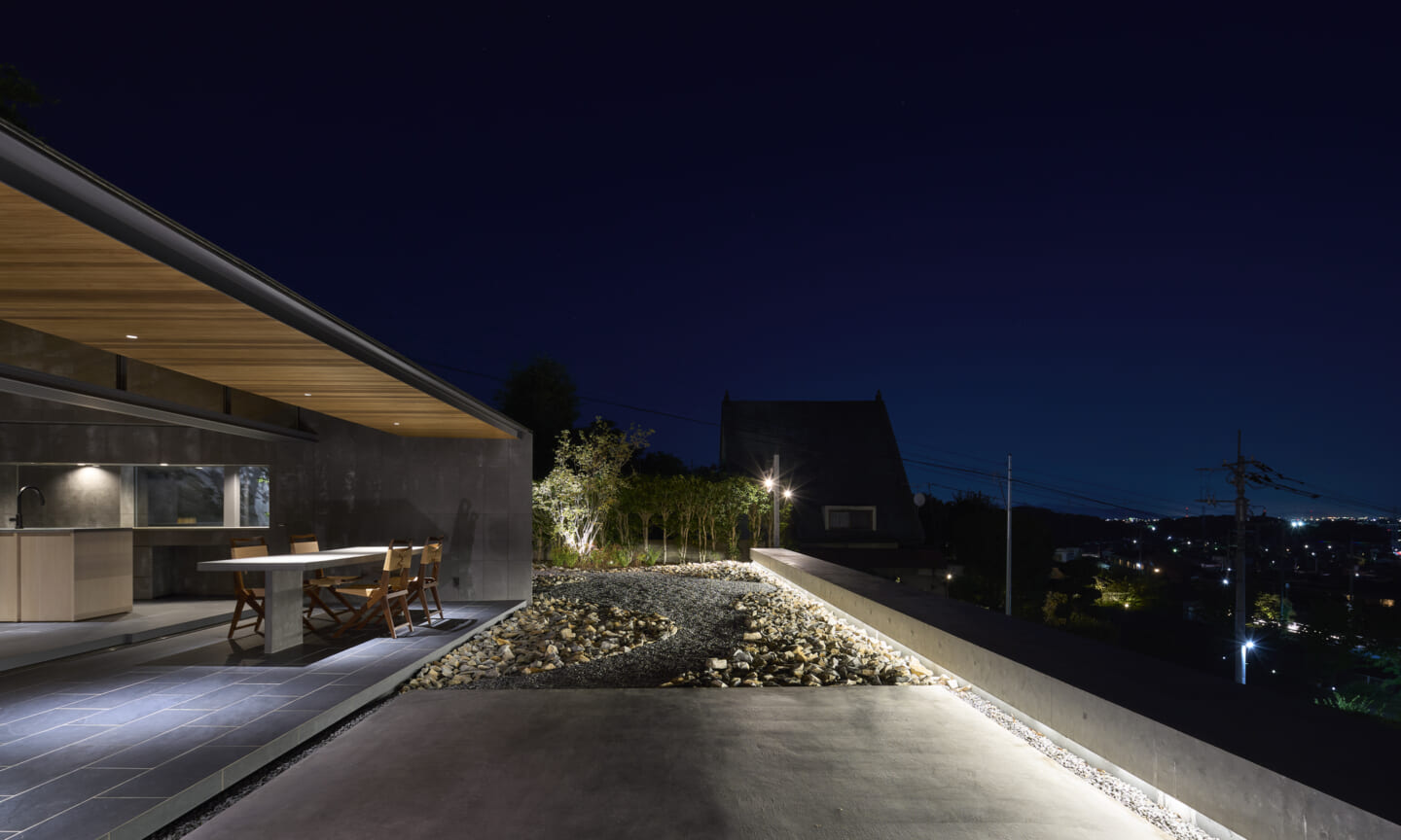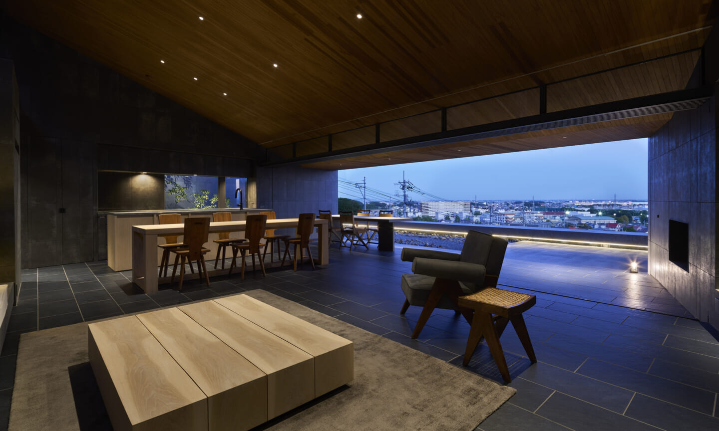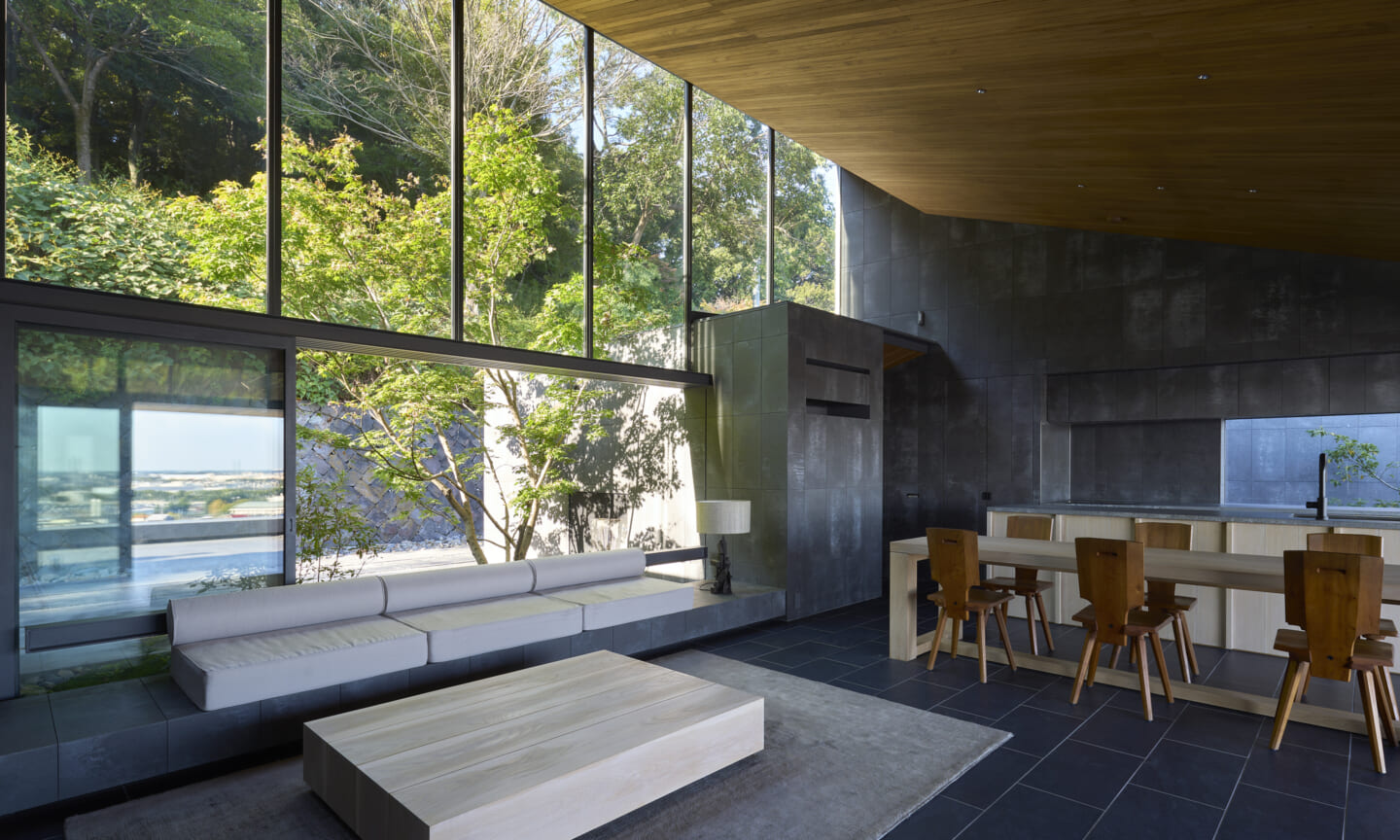 近隣との距離を保つことが難しい国土の狭い日本において、壁や屋根は外的環境から住まい手を守り隠す重要な要素となるが、この住まいの壁や屋根は、人工的な風景であるまちと大自然の間で、住まい手に新たな環境との共存を促す柔らかな隙間を作っている。