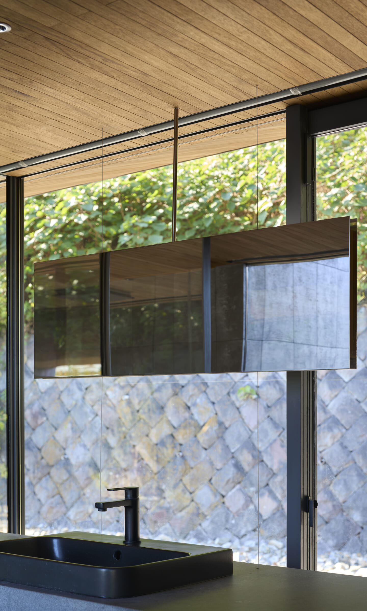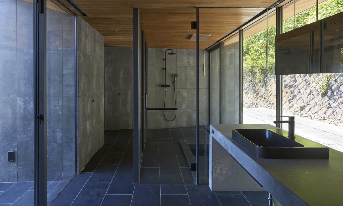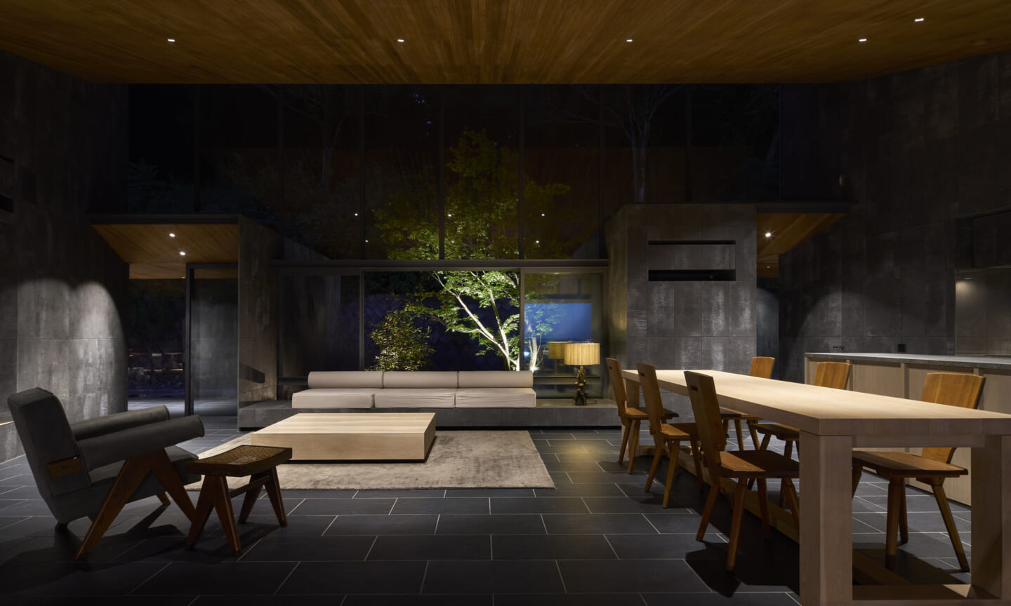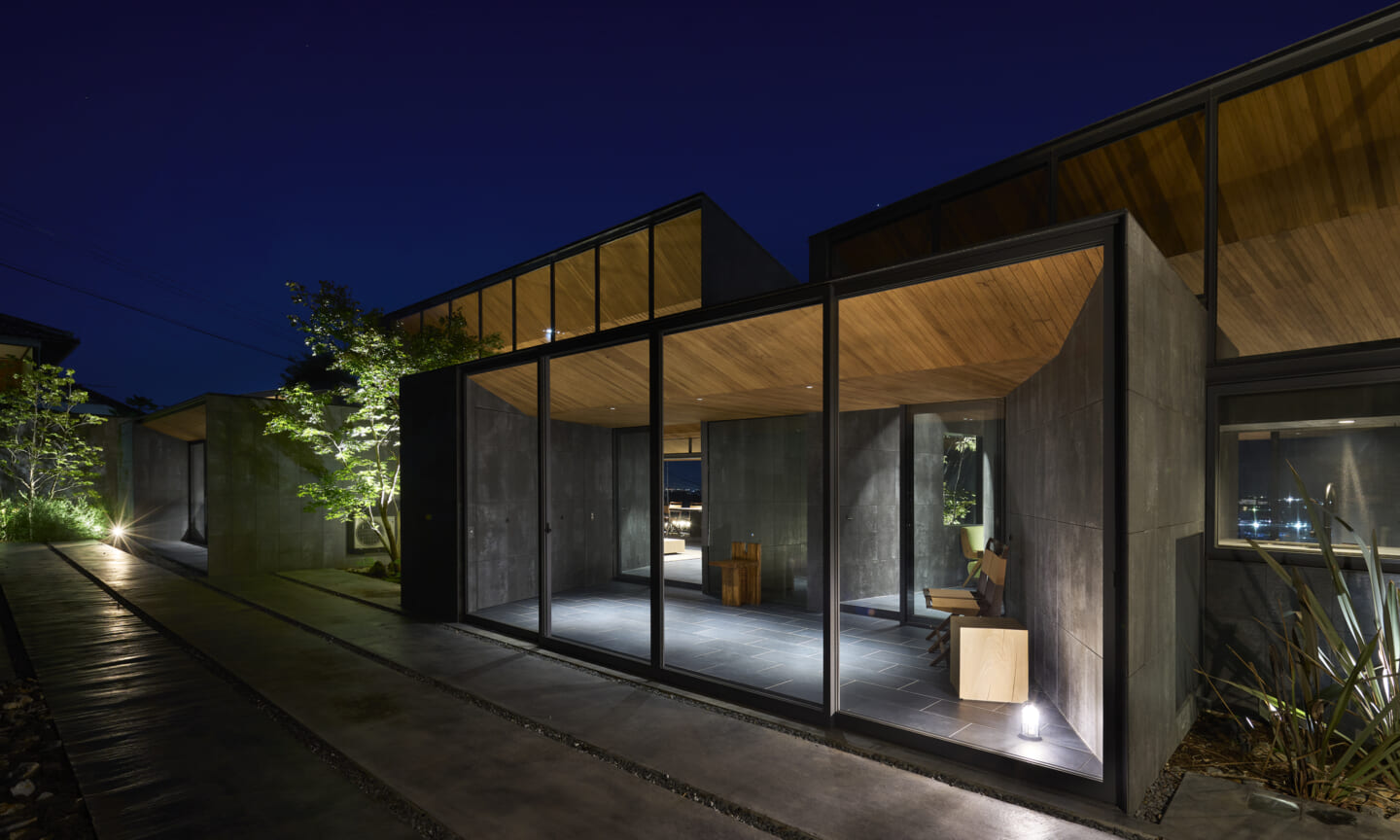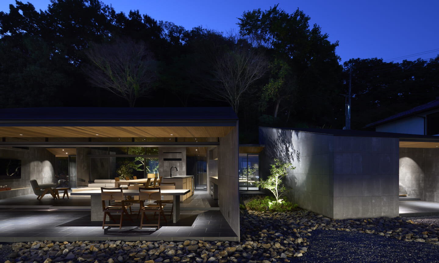 近隣との距離を保つことが難しい国土の狭い日本において、壁や屋根は外的環境から住まい手を守り隠す重要な要素となるが、この住まいの壁や屋根は、人工的な風景であるまちと大自然の間で、住まい手に新たな環境との共存を促す柔らかな隙間を作っている。