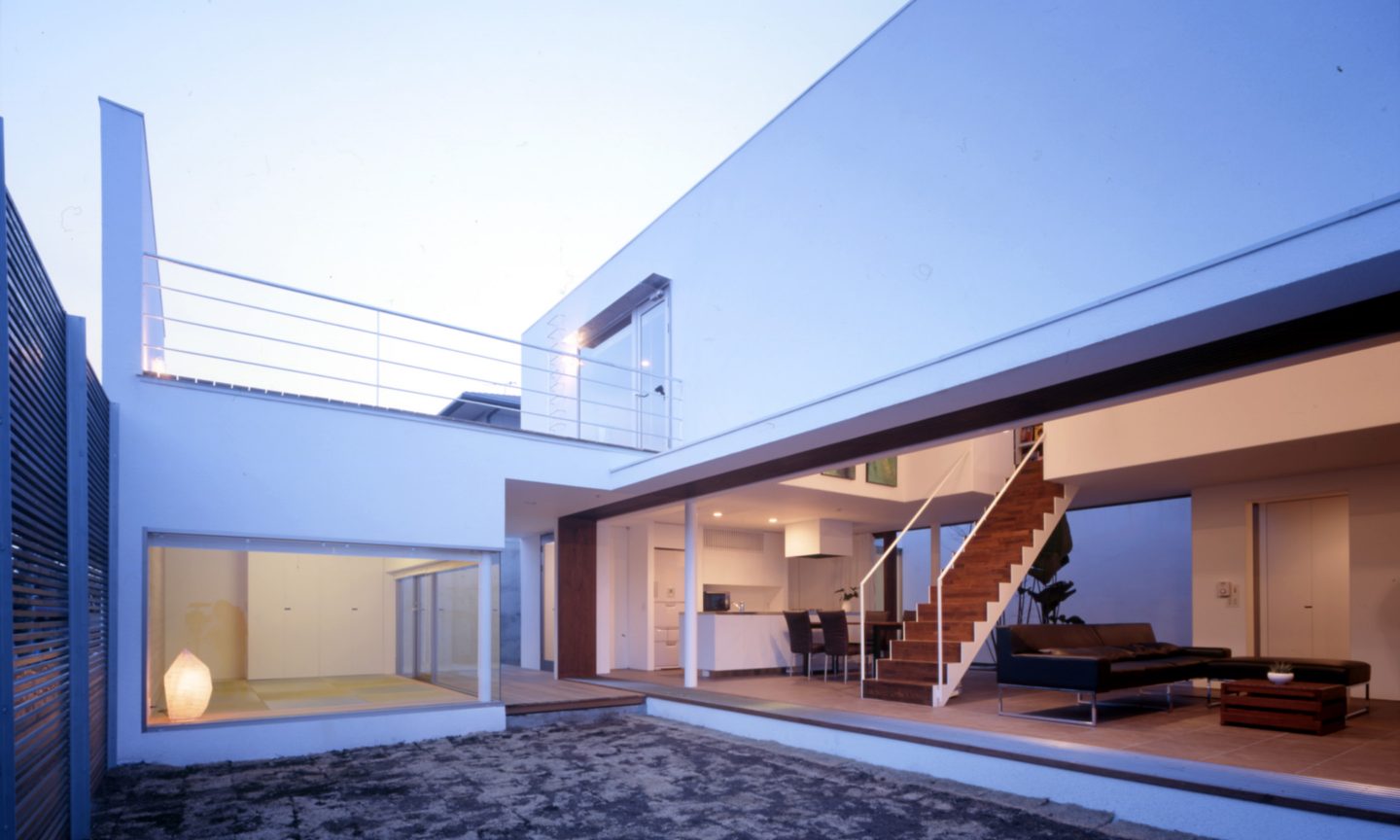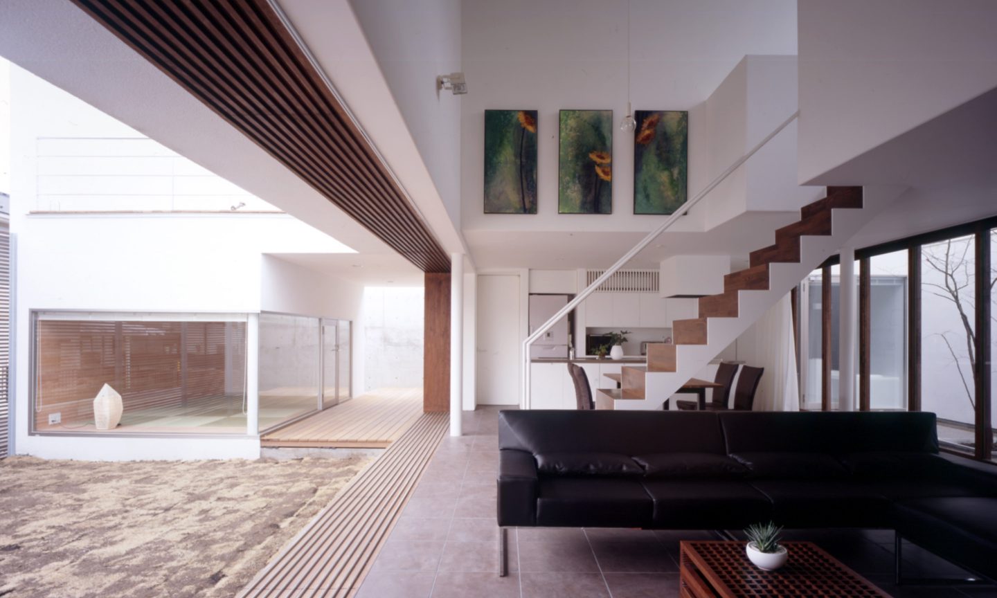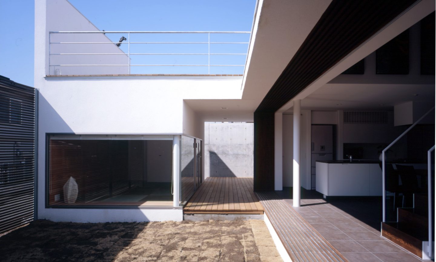 毎日の慌ただしい時間を忘れる事の出来るようなプリミティブな住宅を求められていたお施主さんの御要望に対して南の緑の庭と北の水の庭を配置した自然を最大限に感じることを可能にする計画を提案しました。