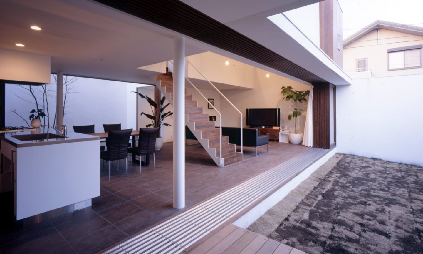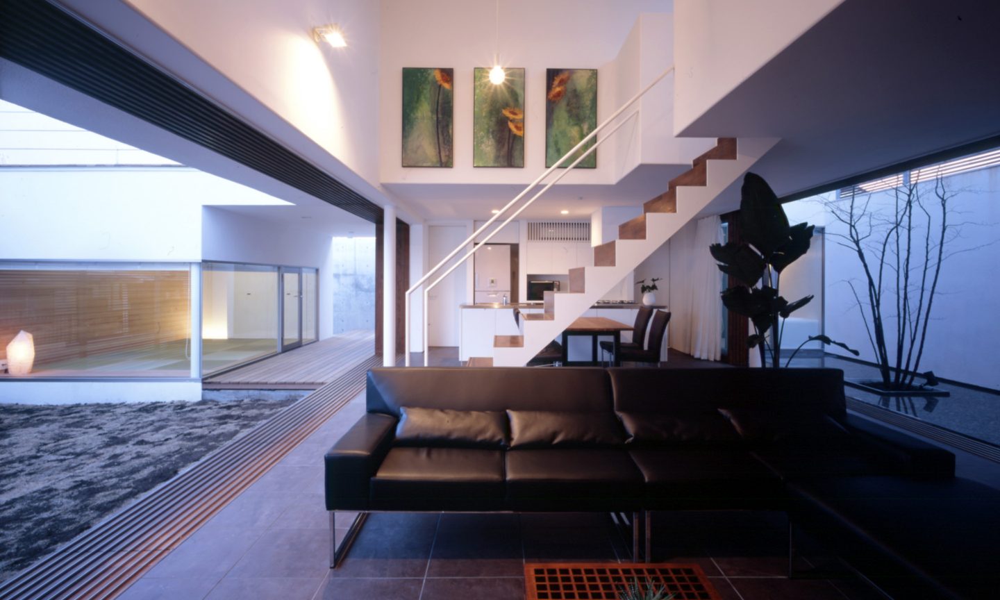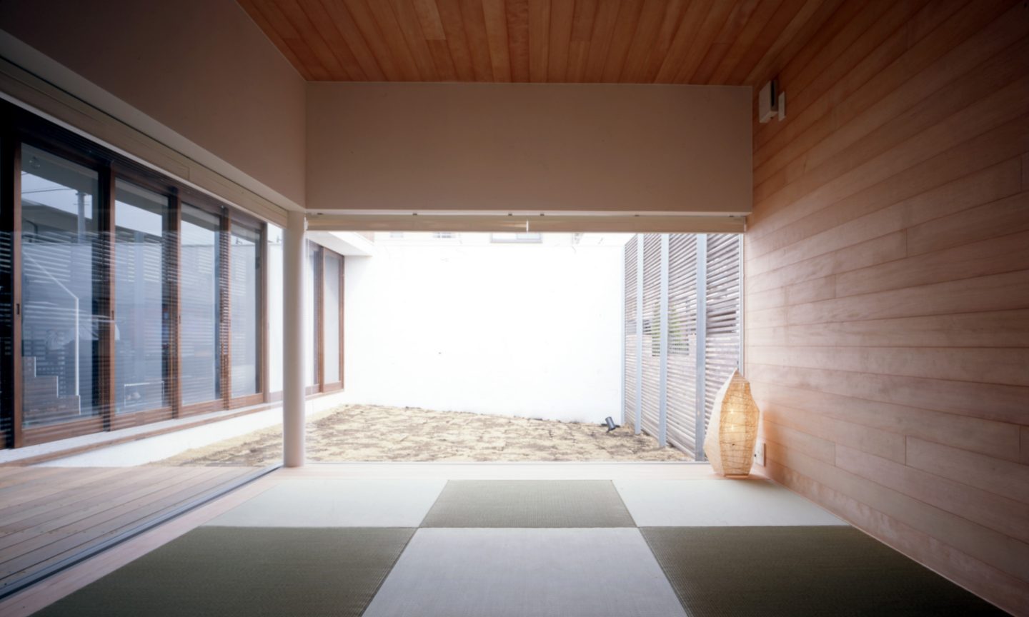 毎日の慌ただしい時間を忘れる事の出来るようなプリミティブな住宅を求められていたお施主さんの御要望に対して南の緑の庭と北の水の庭を配置した自然を最大限に感じることを可能にする計画を提案しました。