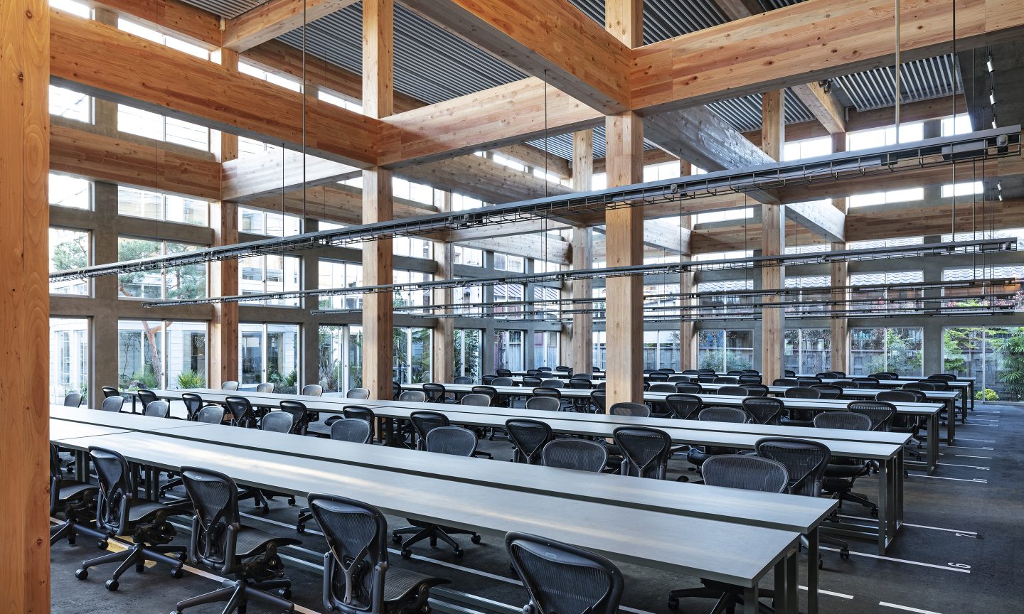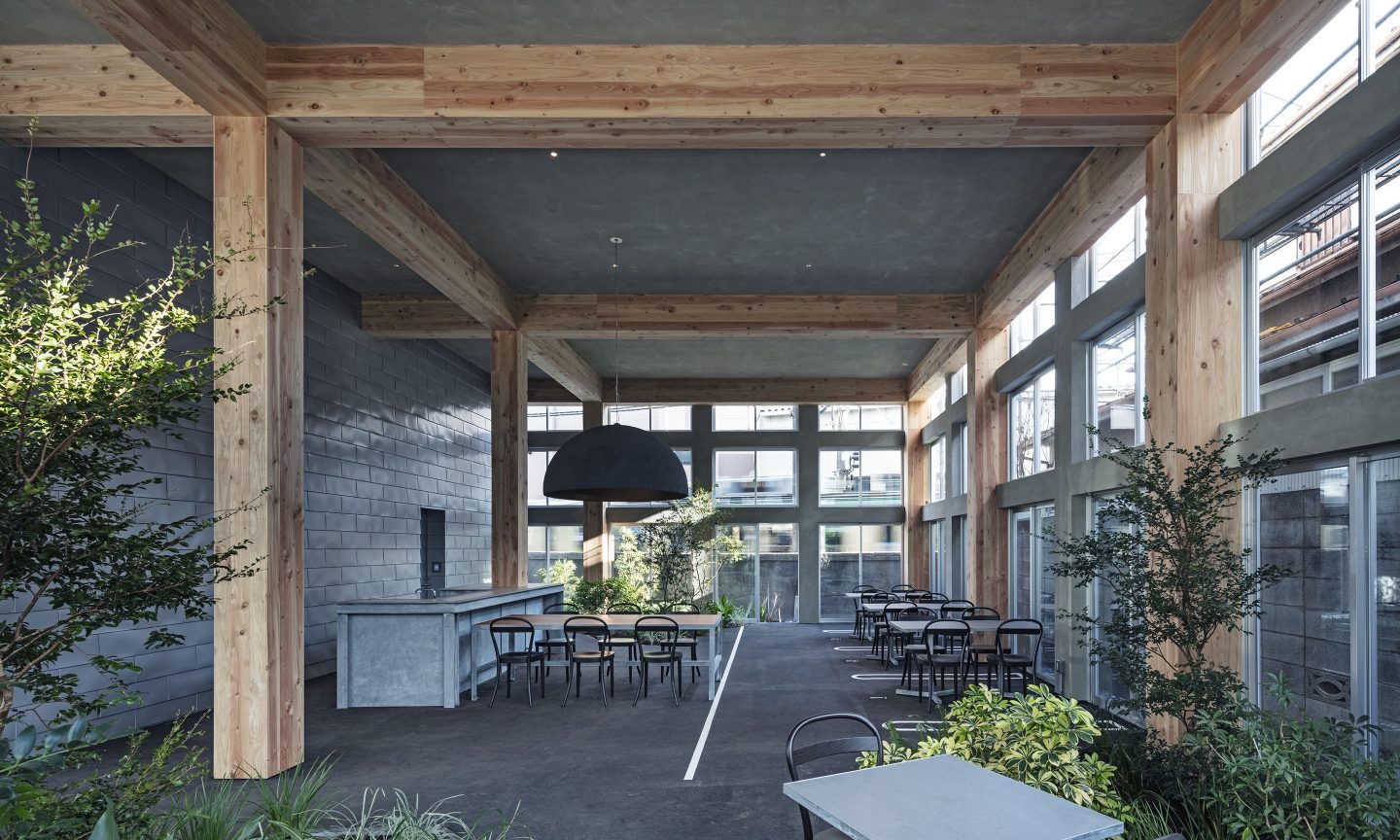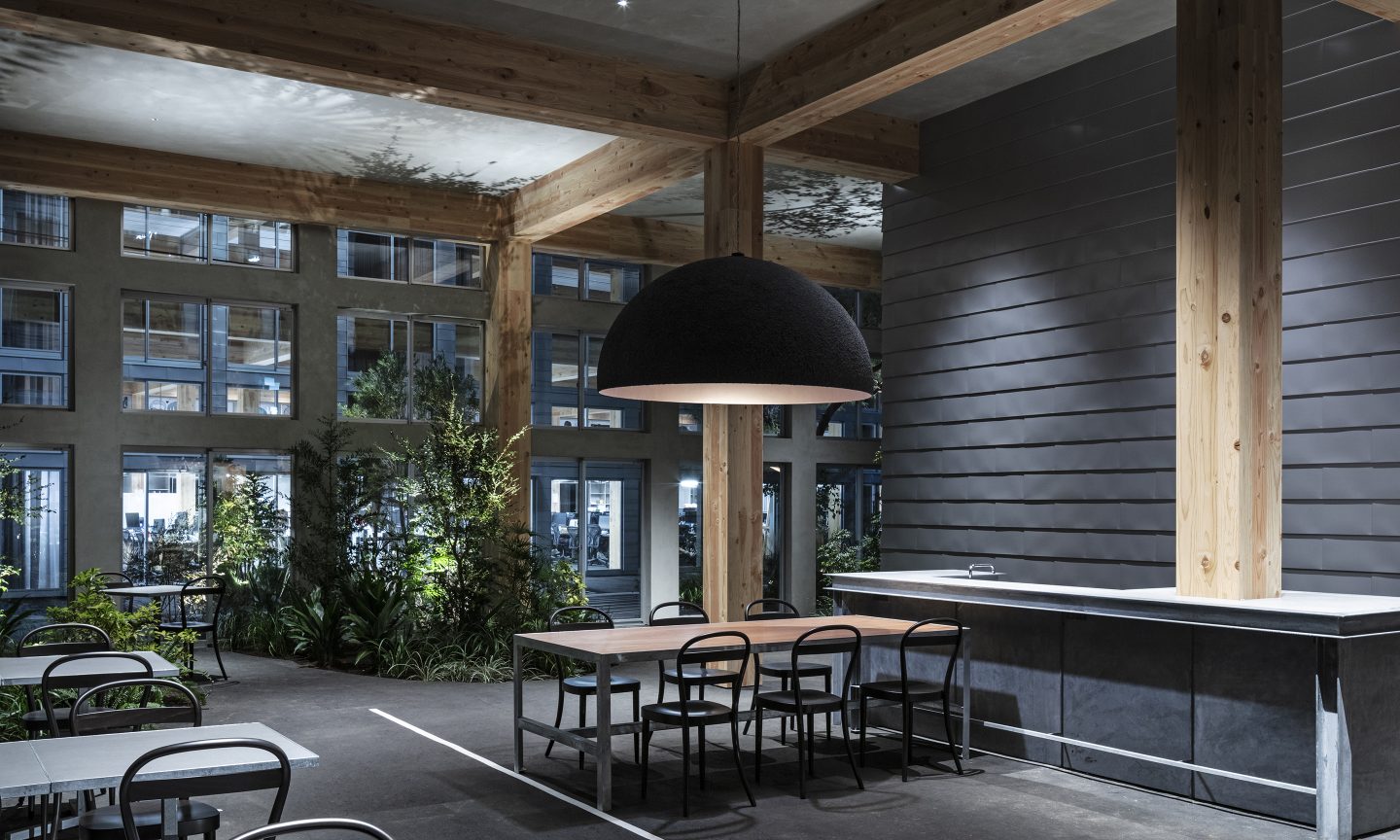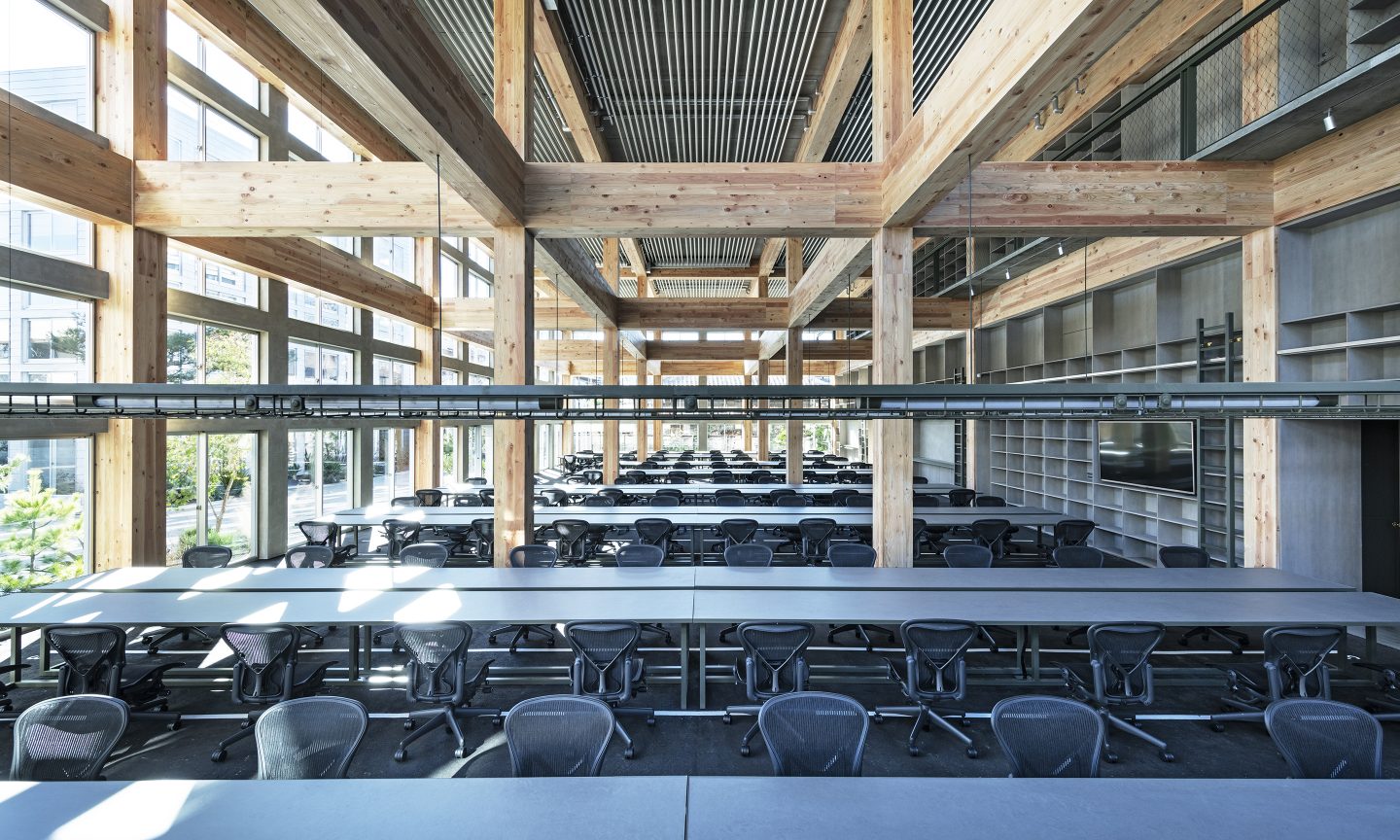 求められたのは、新しい知的生産の場。建物内部に留まることのないオフィスの在り方であった。