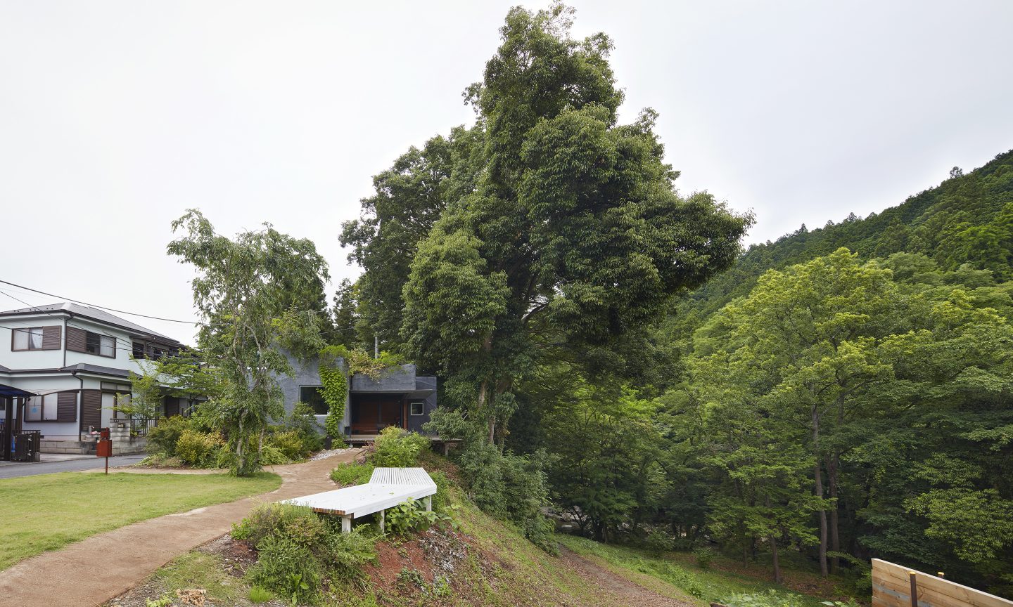渓流添いに建築するためには、敷地拡張を行い、一期工事として接道のある上段敷地に最小限の用途での建築をつくることが行政の指導によって条件として求められた。樹木の覆い茂る上段敷地においては、植物と建築が調和した建築をつくることを基軸に計画を進めた。