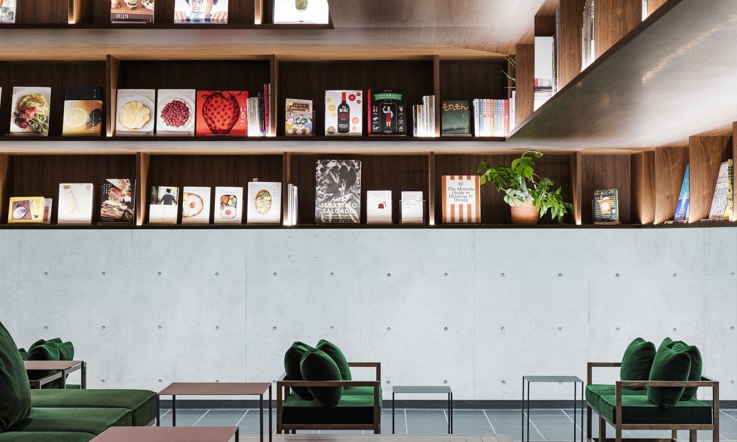 この場所に一本の木(本棚)を建て、日常の中のふとした瞬間に何気なく本を手に取り、本を読むことができる場所をつくった。高さ1400mm程度しかない軒下をくぐり抜けると、通常隅から隅まで、足元から身長を超える高さまで重く敷き詰められている本が、目線の高さで軽やかに浮遊し、魅力的な表紙がそれぞれの本の個性を程よく主張する。