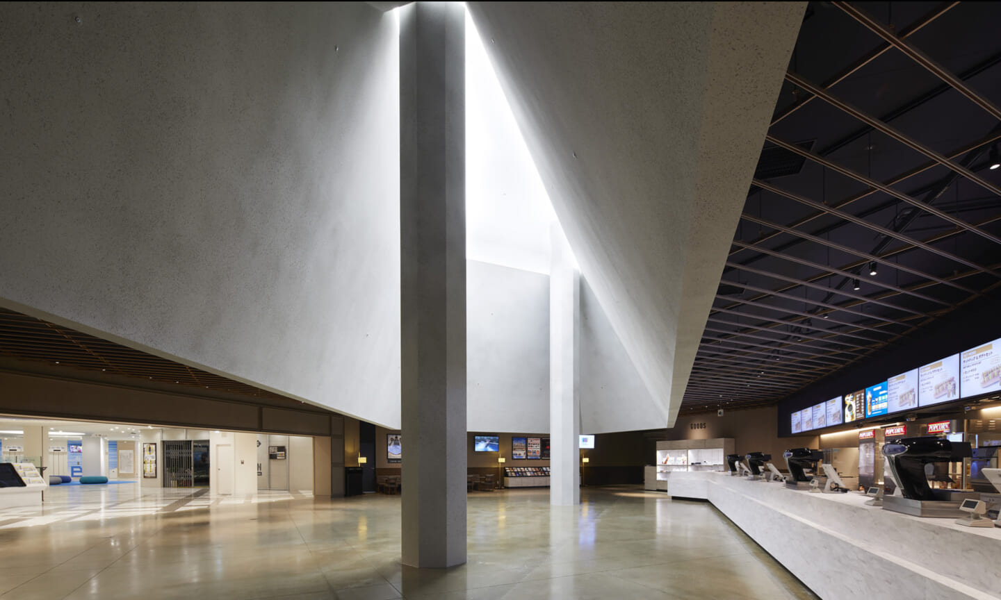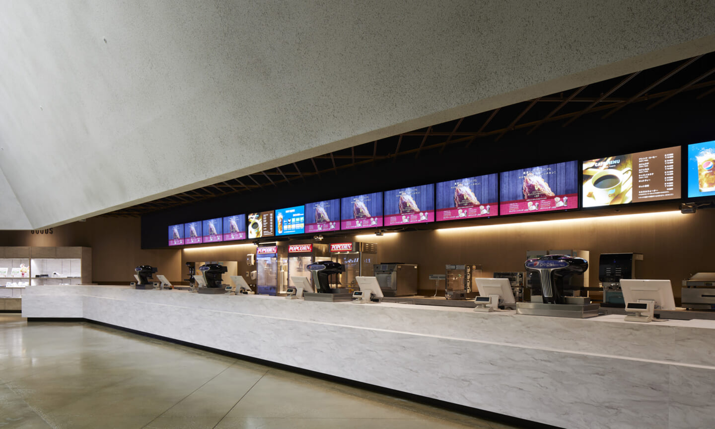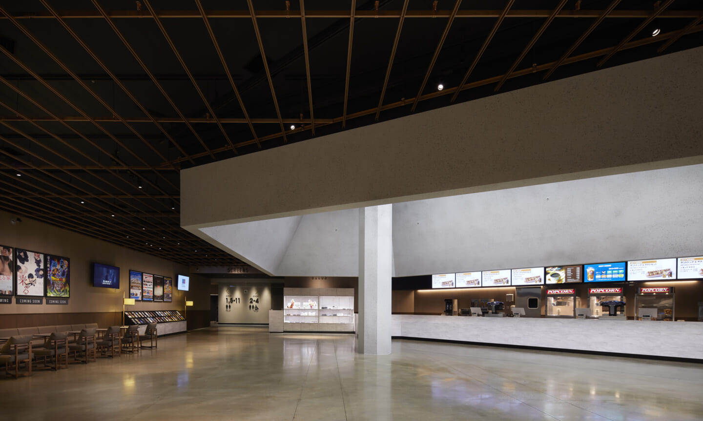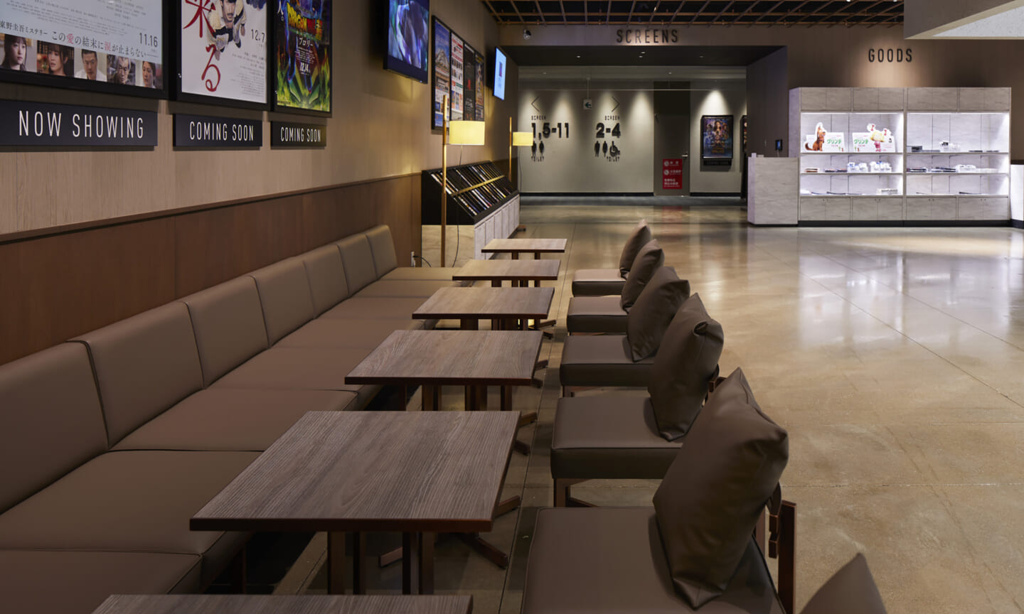 映画を見るということに彩りを与える 特別な日をホテルで過ごすように ホテルラウンジのようなロビーでは 映画をみるまでのひとときを 映画を見るという 少し特別な体験をより上質な時間へ