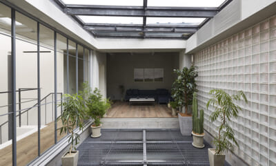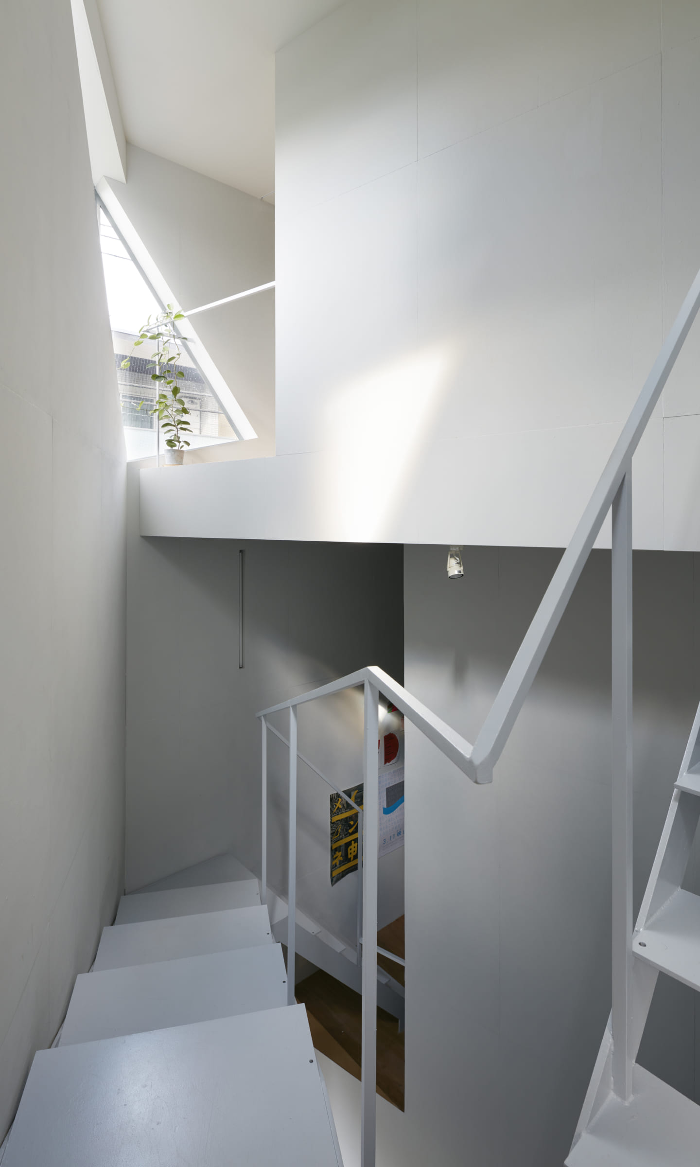 職住一体という働くことと、生活が隣接した状況を、断面という距離を持つ関係として計画し、ひとつの建築でありながら、離れている状態として計画したことで、都市という体験が内部に存在する住宅となった。