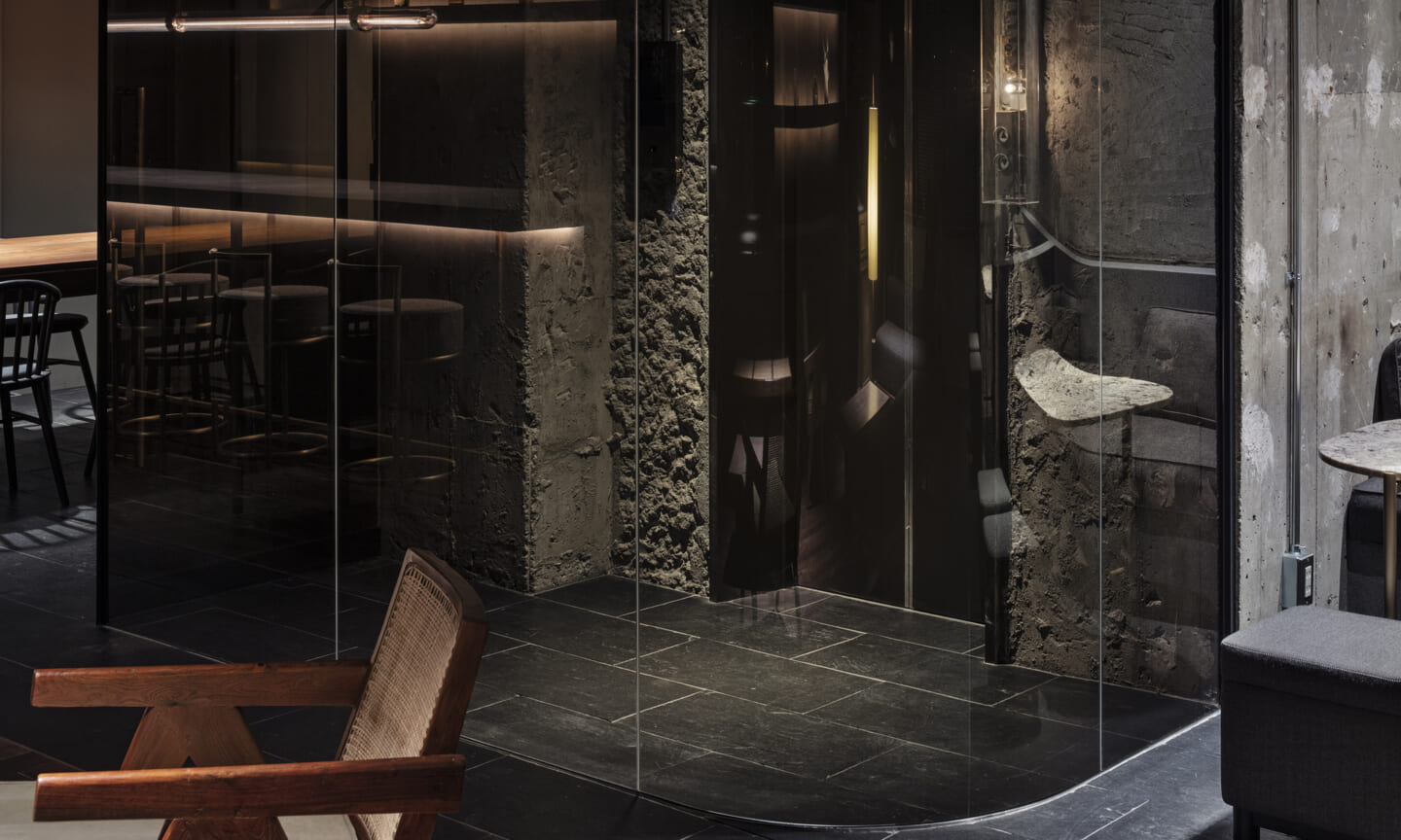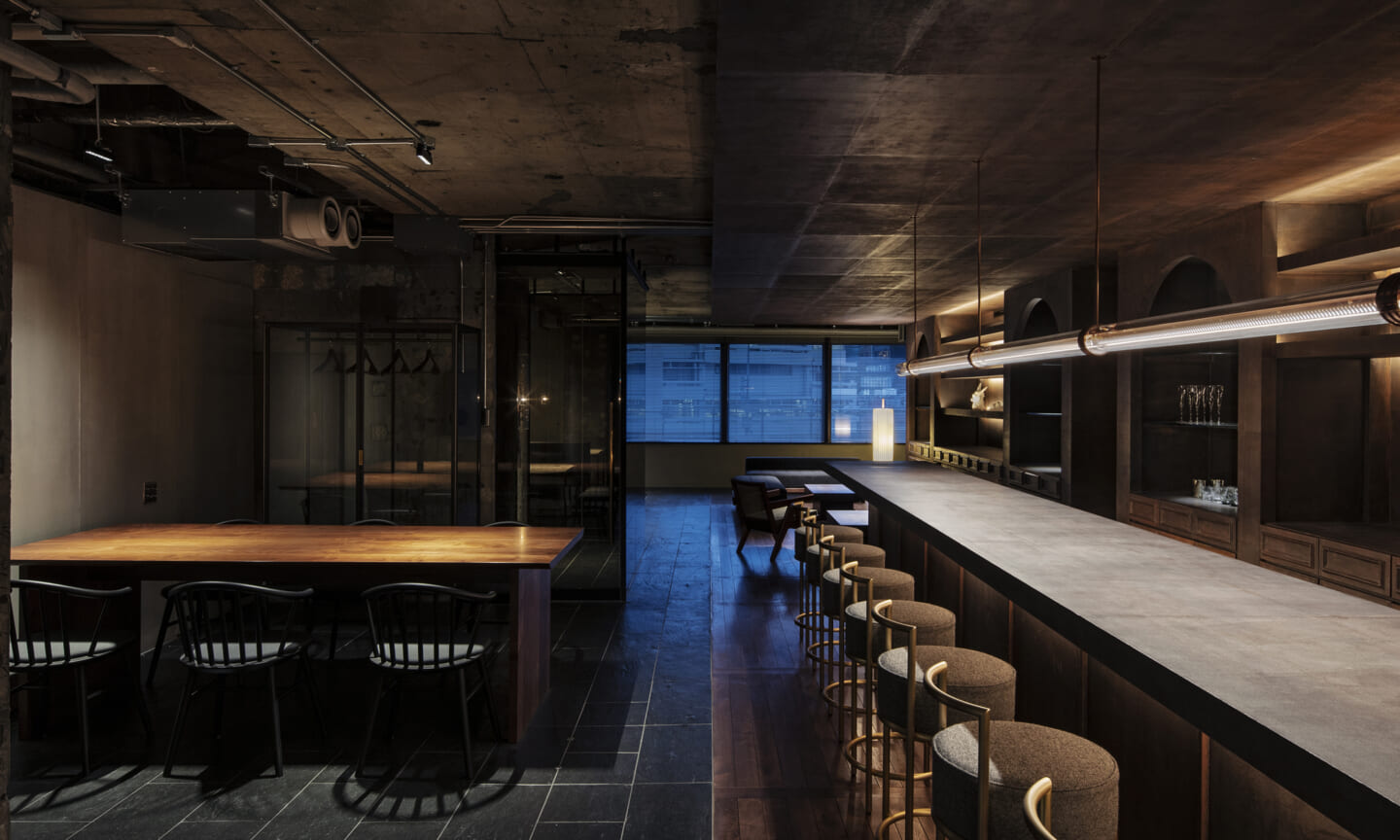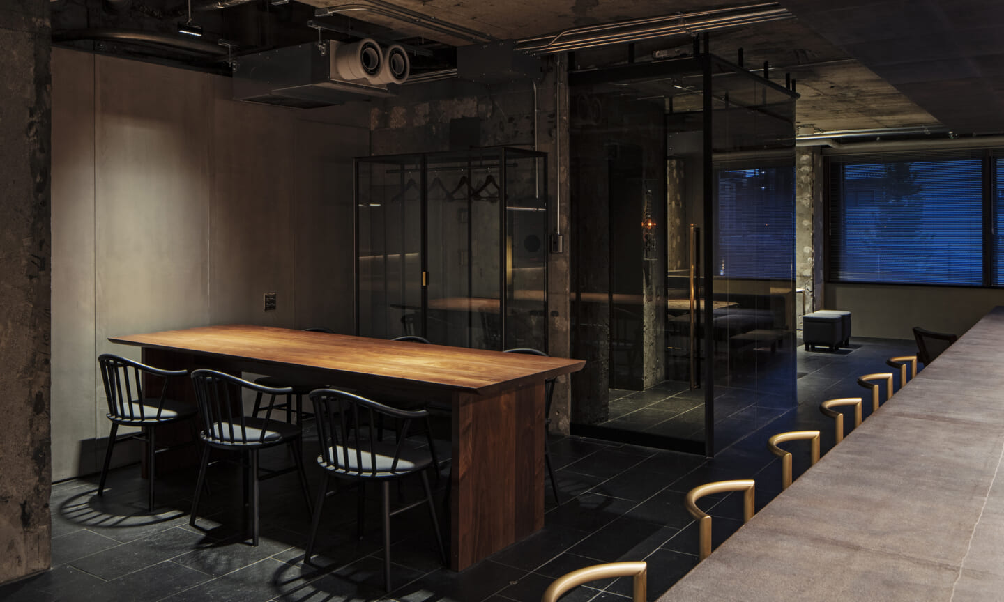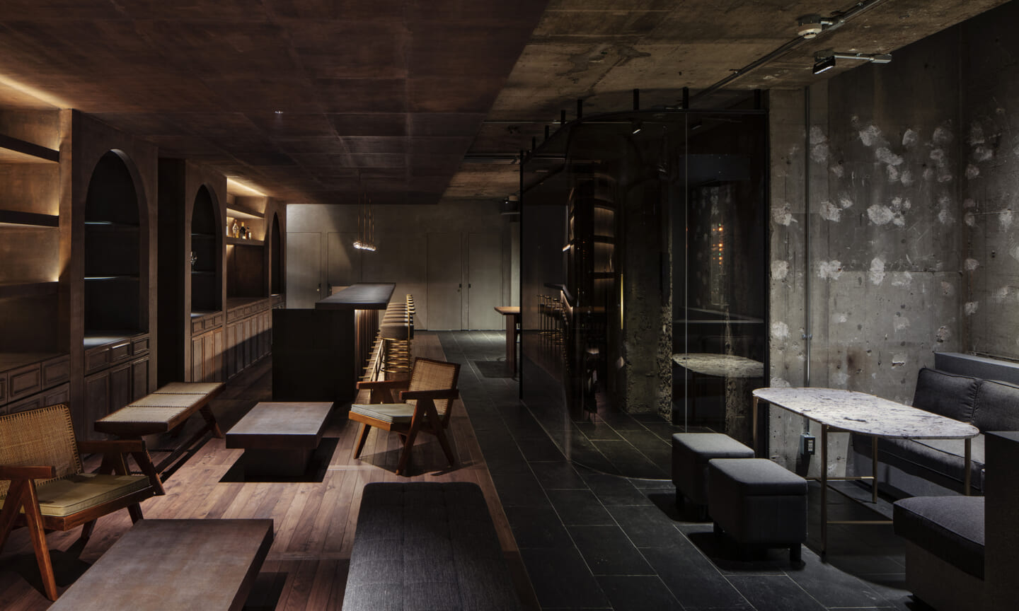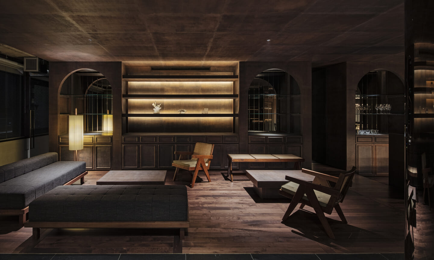既存のバーの記憶を柿渋で染めた和紙で包み