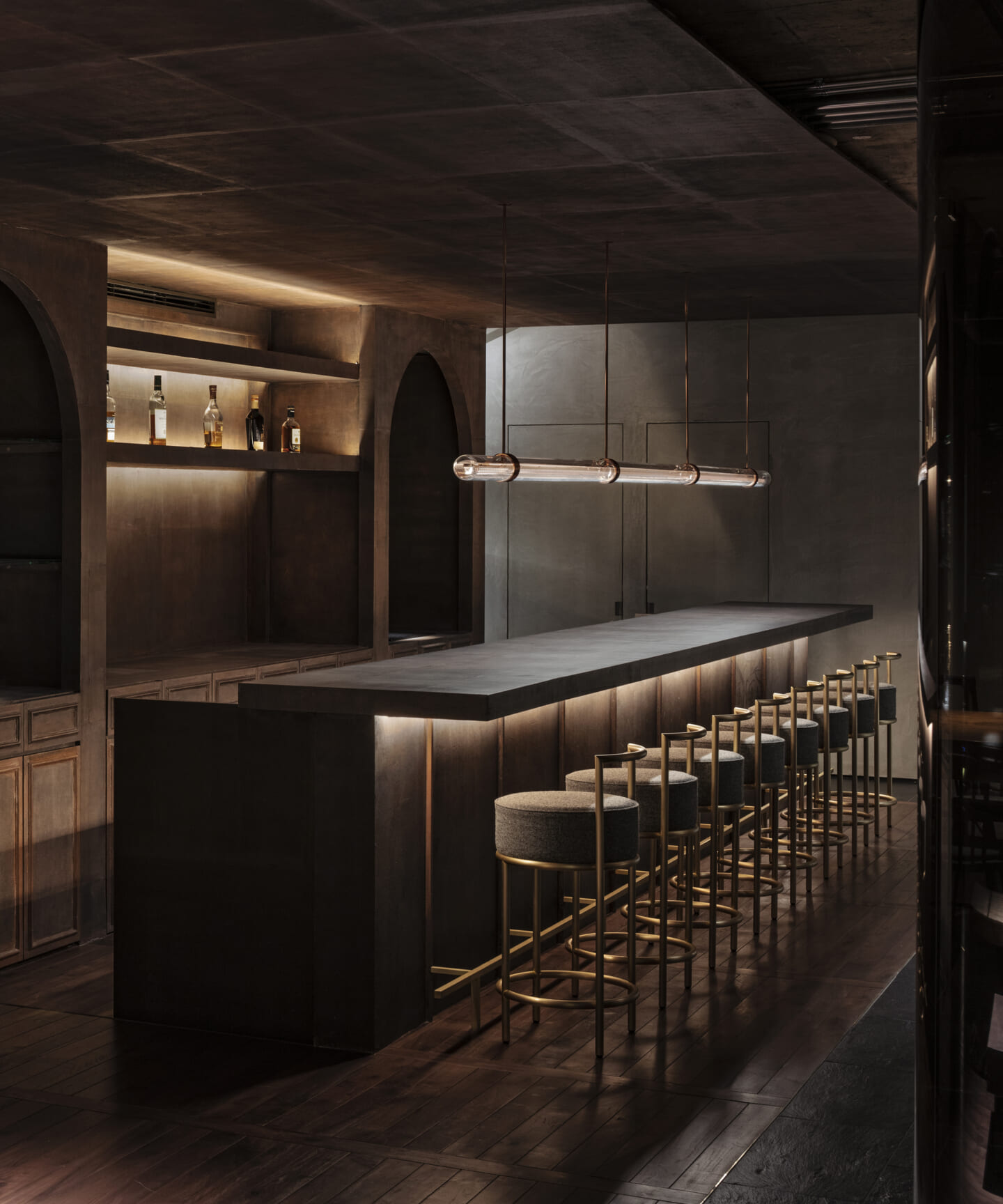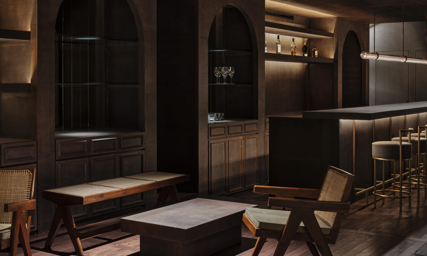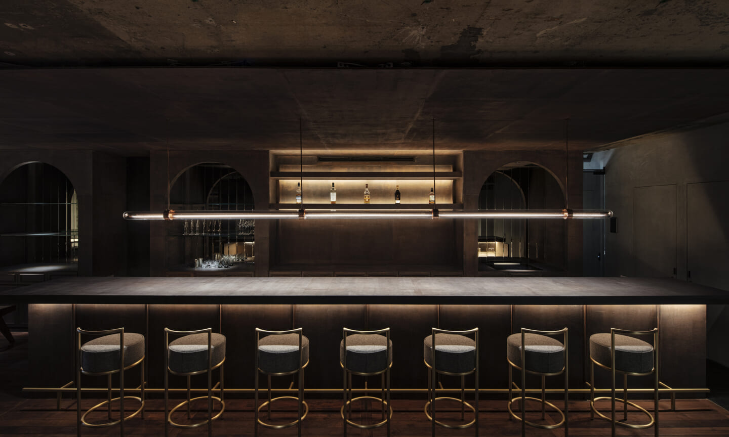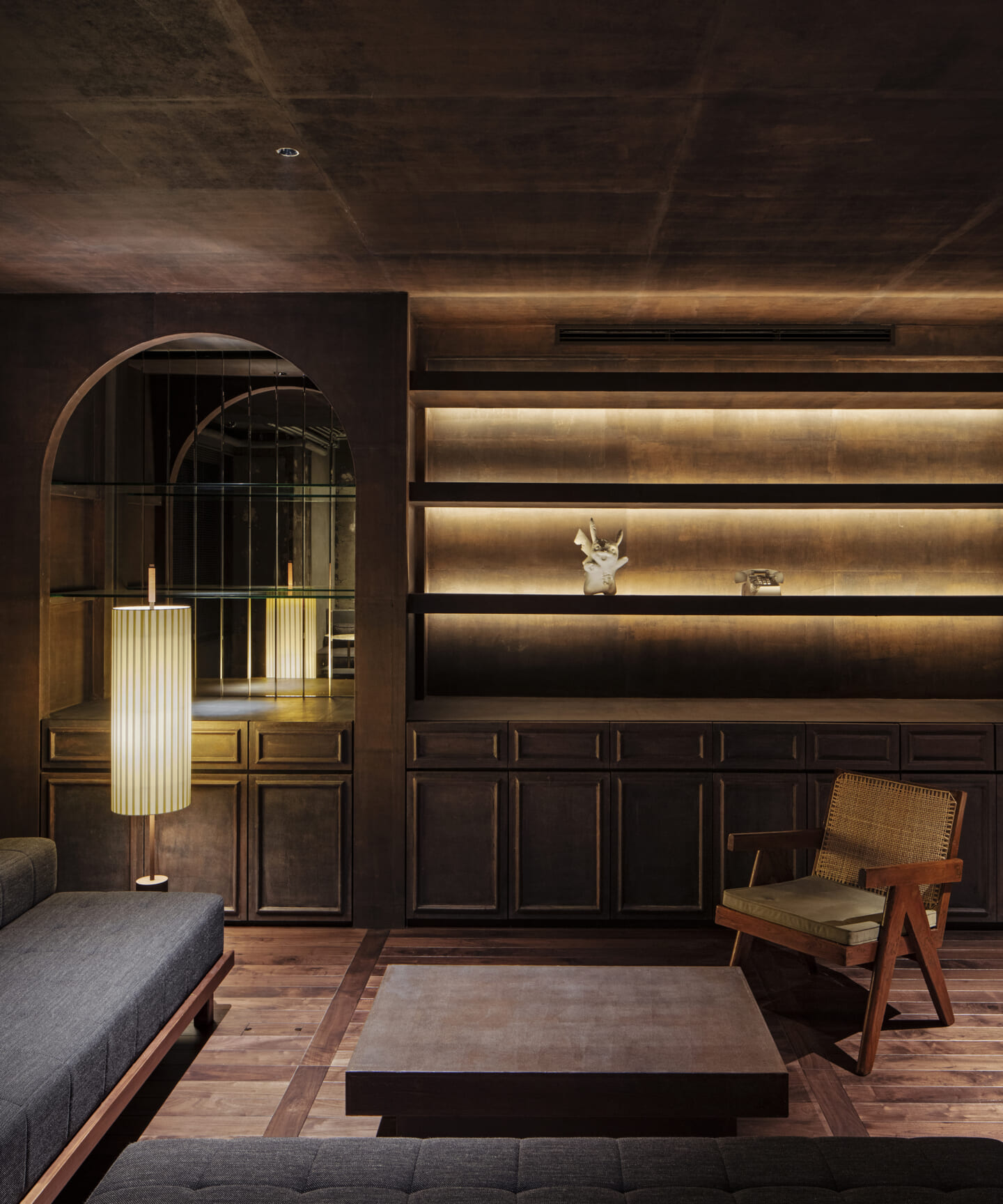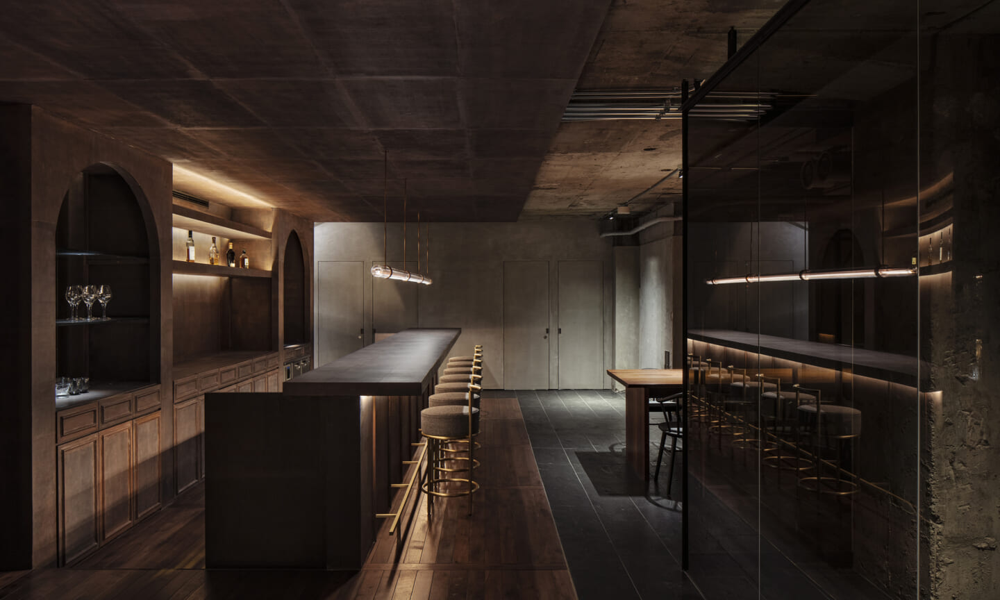 既存のバーの記憶を柿渋で染めた和紙で包み