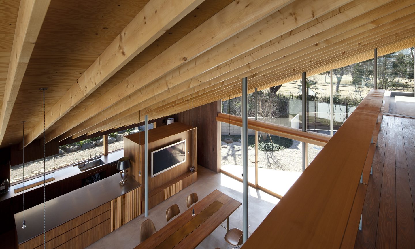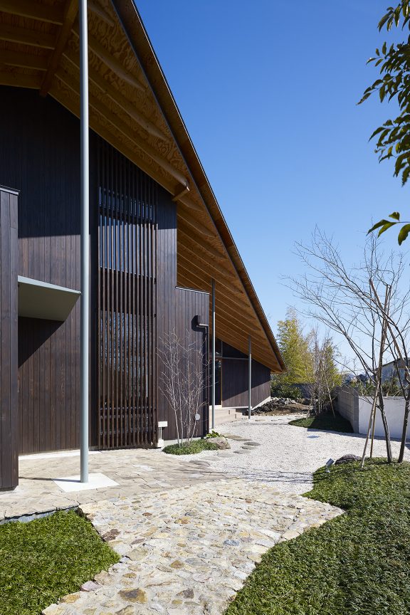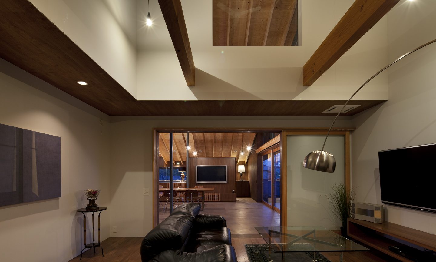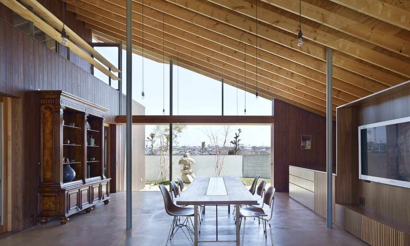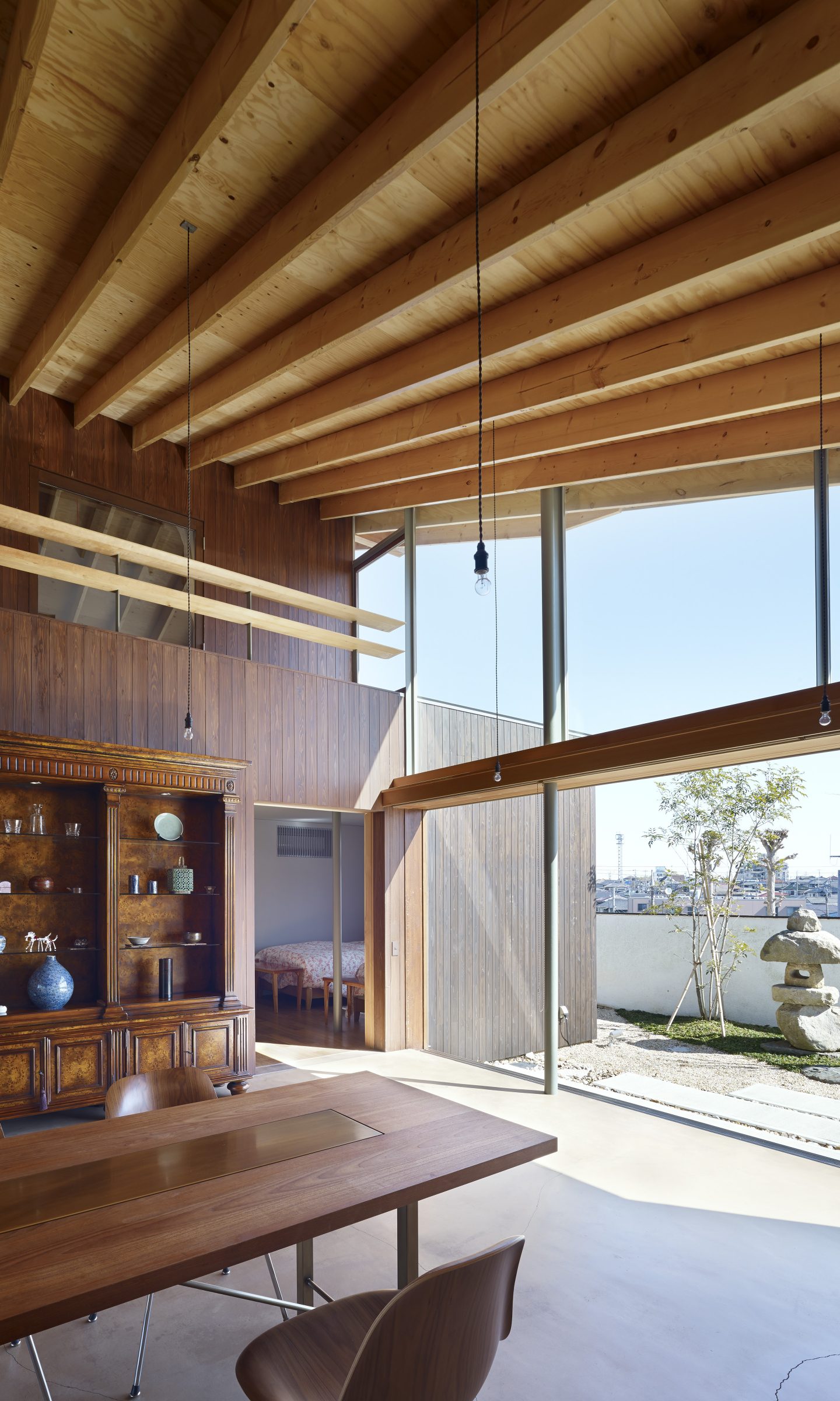 この住宅では、建築における借脳的な状態を設計することで、この場所に長く住み続けてきた家族の思考を設計の要素として取り込むことを考えた。具体的には、既存建物の屋根を減築し、新しい大屋根をかけ替えることで、今まで庭であった場所を室内化する計画である。庭から観た建物の記憶を活かし、既存建物の外側が室内化されることによって、庭にいる感覚を残しながらも新しい家族の居場所をつくることで、記憶によって導かれる精神的な開放感と、実質的な拡がりのある開放感、その両方を設計した。