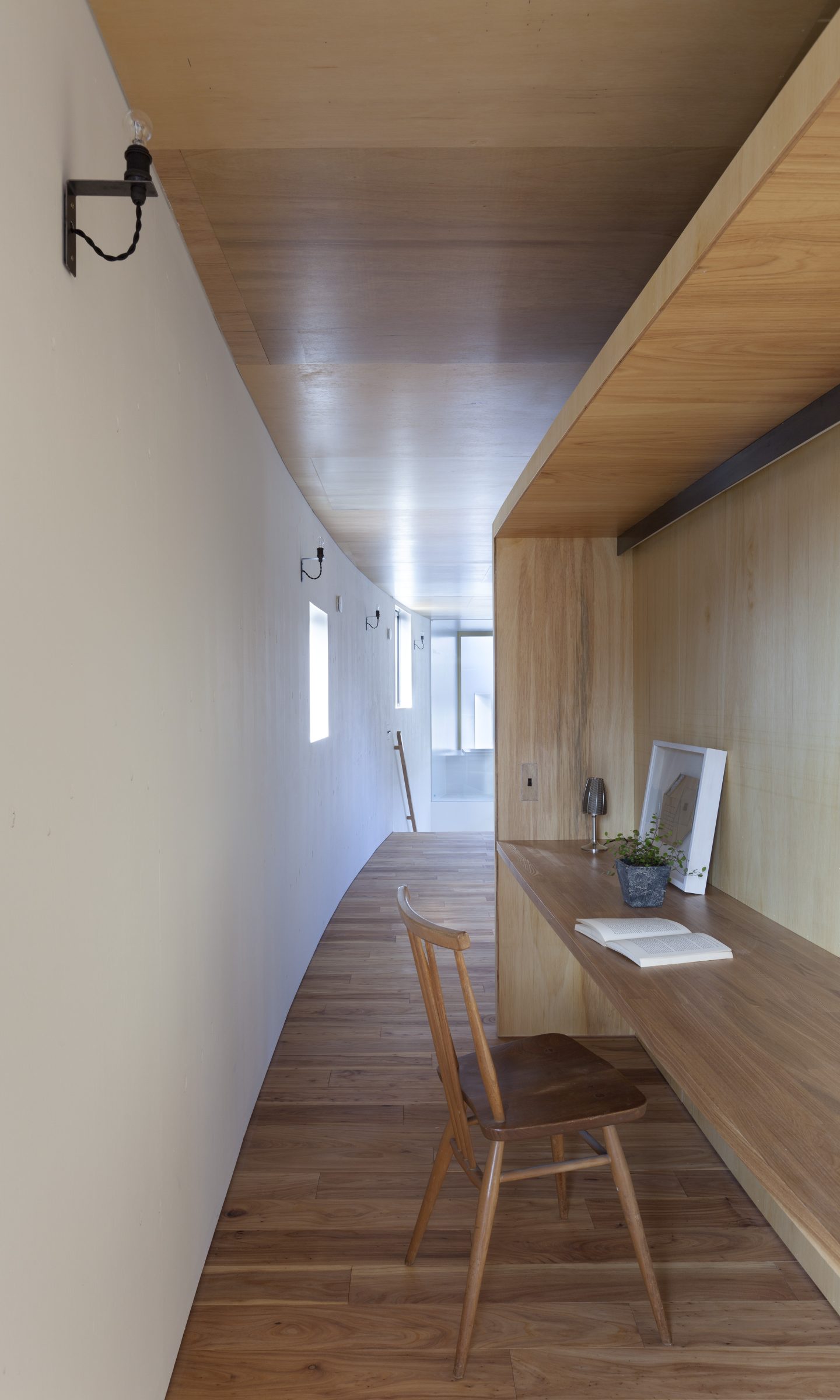壁のような建築は、それまで存在し得なかった自然に境界を生み出し、その境界に自然と自然のすきまを存在させます。性格の異なる二つの自然を生み出す壁のような建築の内部空間は、まるで自然のすきまに住んでいるような感覚を持つ場所となり、外部との関係がほんの少し近づいた住空間となります。