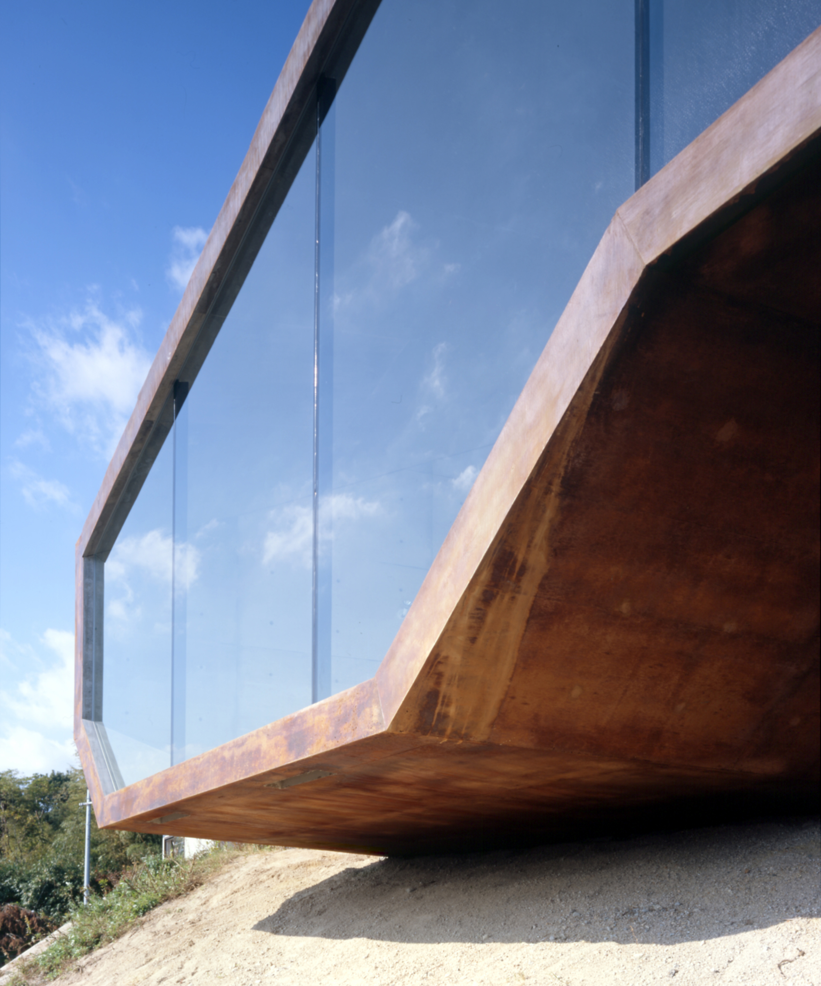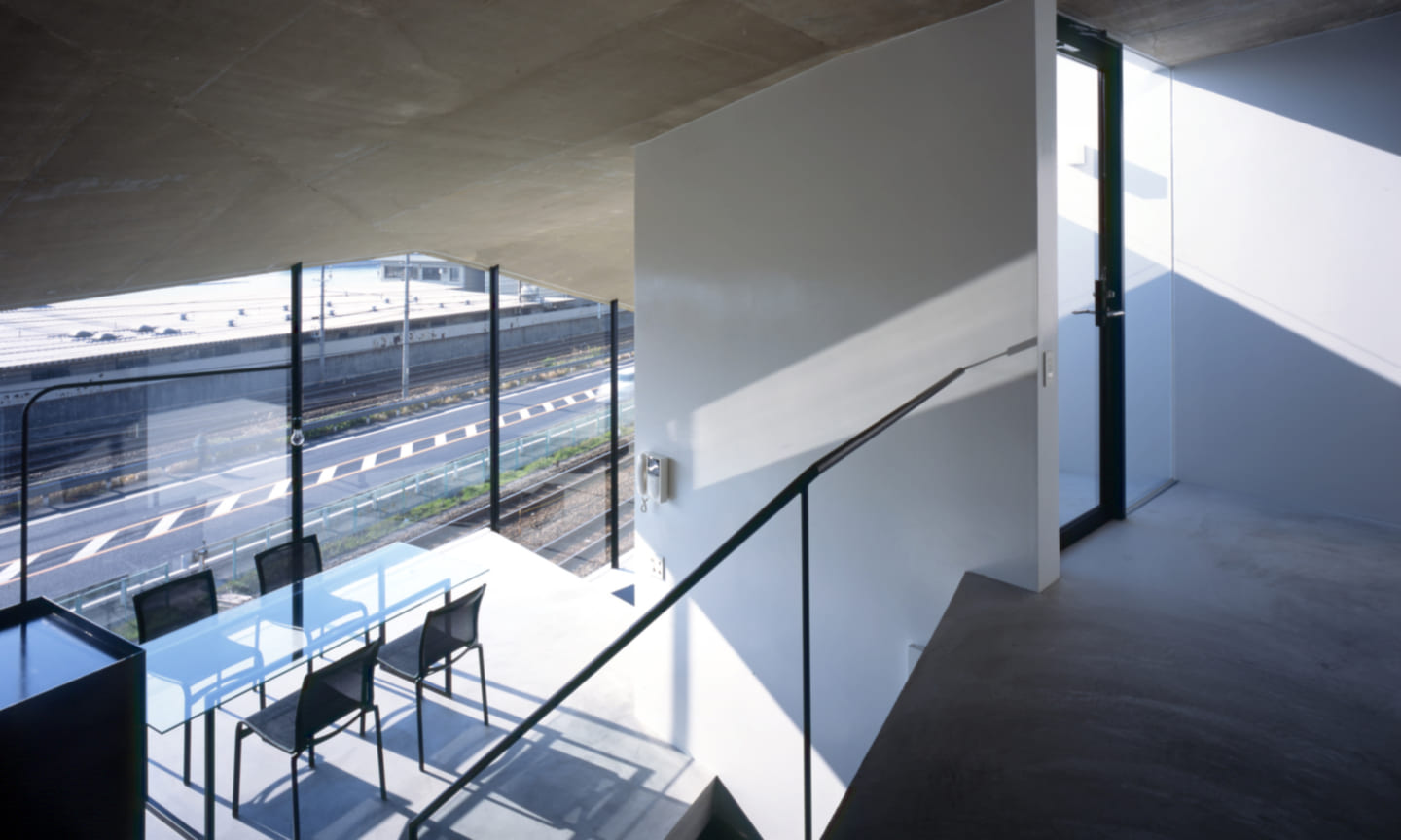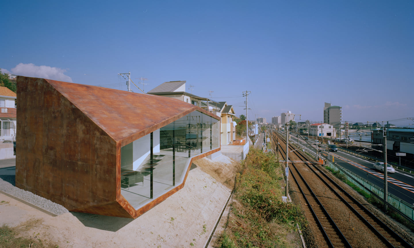 海からの塩害により、線路で多く見られるレールと車輪の摩擦によって生じた鉄粉が錆びている様子から、建築の表皮を慎重に選ぶことが必要があった。そこで外部はコンクリートをステインで染め、当初から錆びているかのような仕上げとすることで、鉄粉の飛来に対しても、時間と共に外壁がより味わい深くなっていく、環境に左右されない仕上げとした。また、開口部周辺の金物を外部に露出しないディティールでのガラス施工によって塩害に対応した。