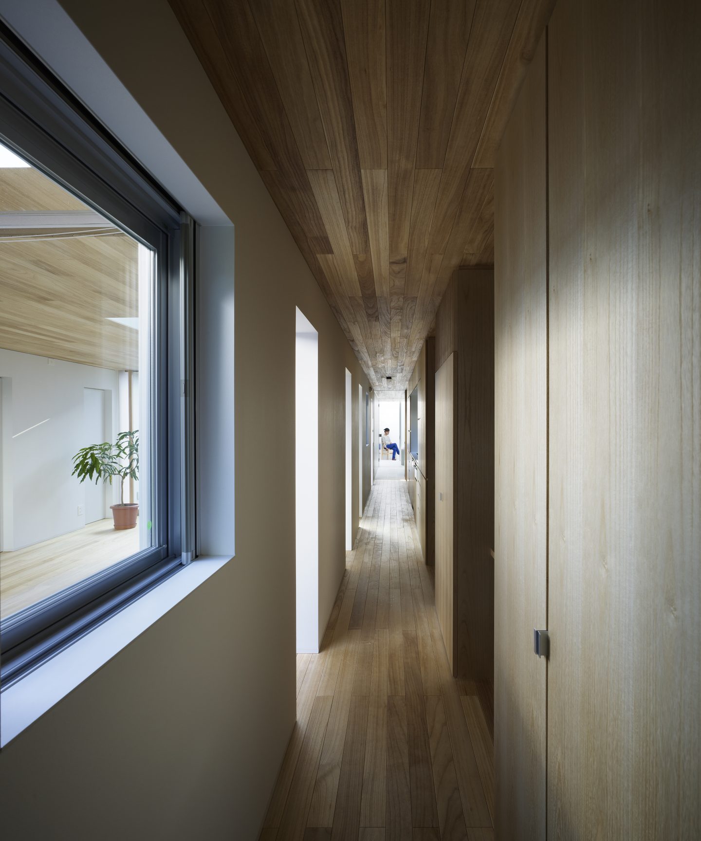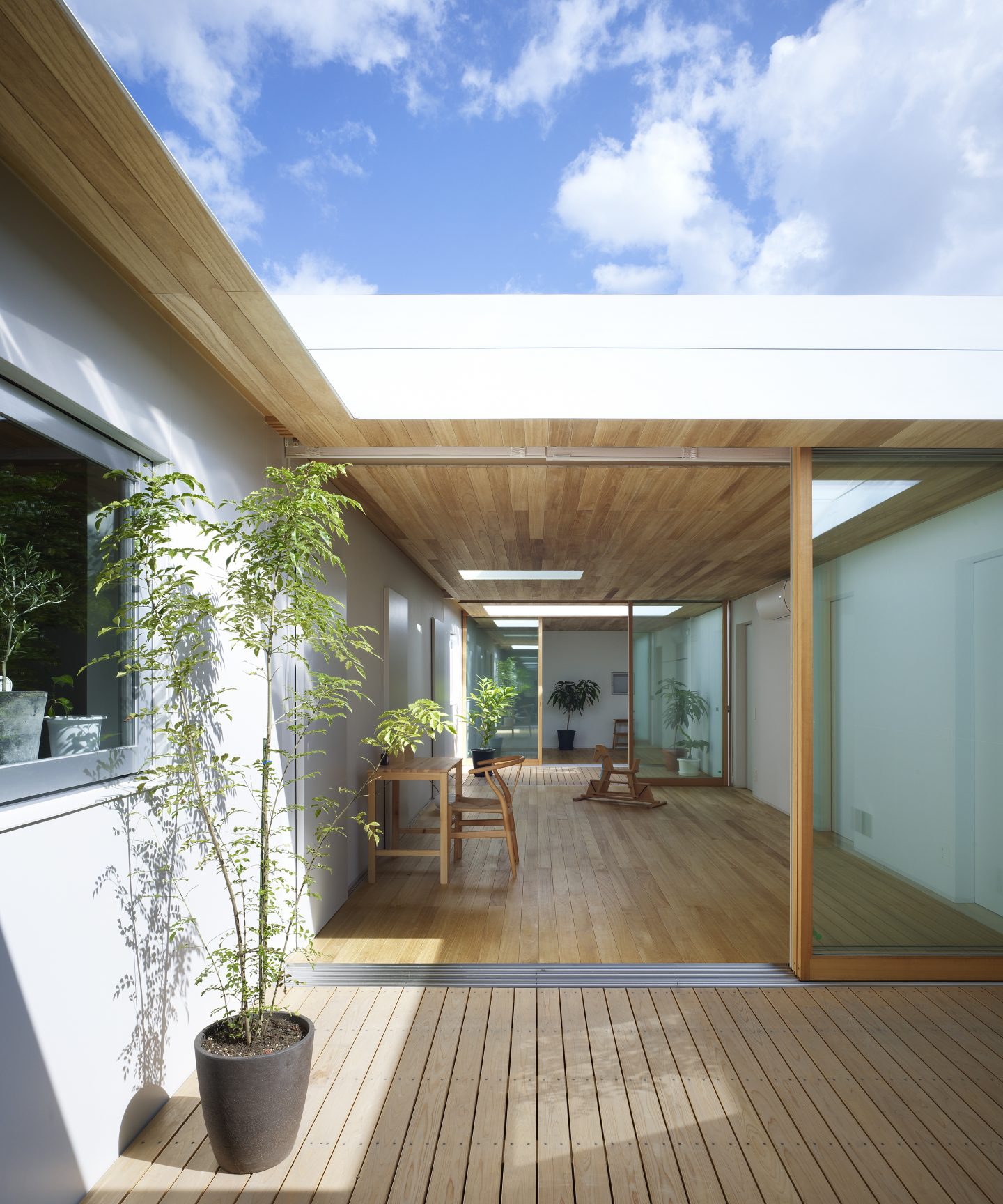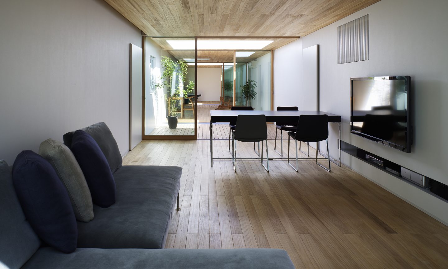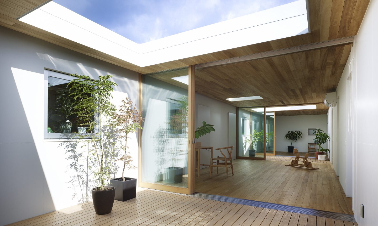 この建築は内部と外部のあいだ、いわゆる半屋外空間があることで外部と内部という環境を緩やかに繋いでいます。