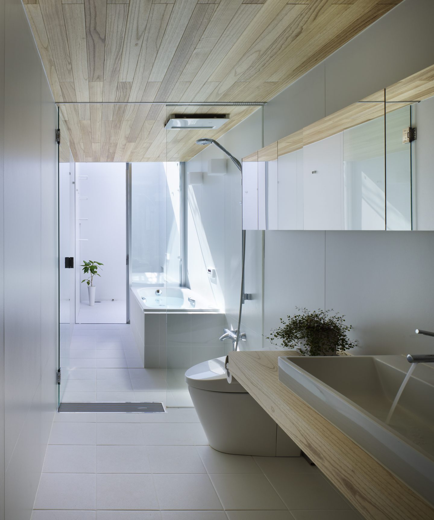 内部から外部へのグラデーションのある、テラスのような、縁側のような室内のような屋外のような空間に、本来は室内にあるべき本や絵、書斎やお風呂などが、積極的に参加することで、内部と外部を強く関係づける役割を果たしています。