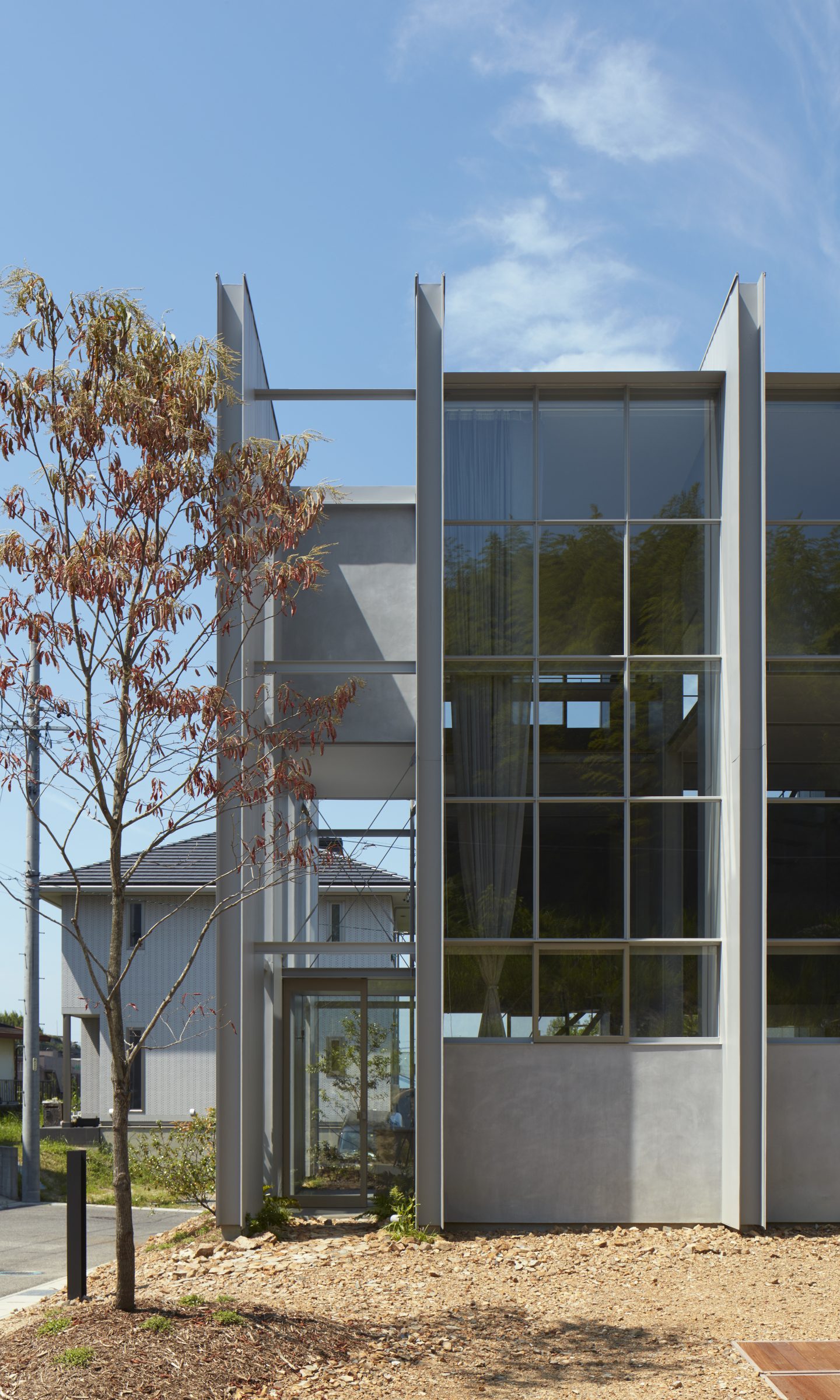敷地は、常滑市の宅地開発された住宅地の3方向を道路に囲まれた土地で、昔からある自然の気配をわずかながら感じることができる場所である。