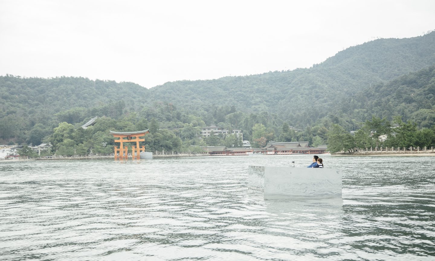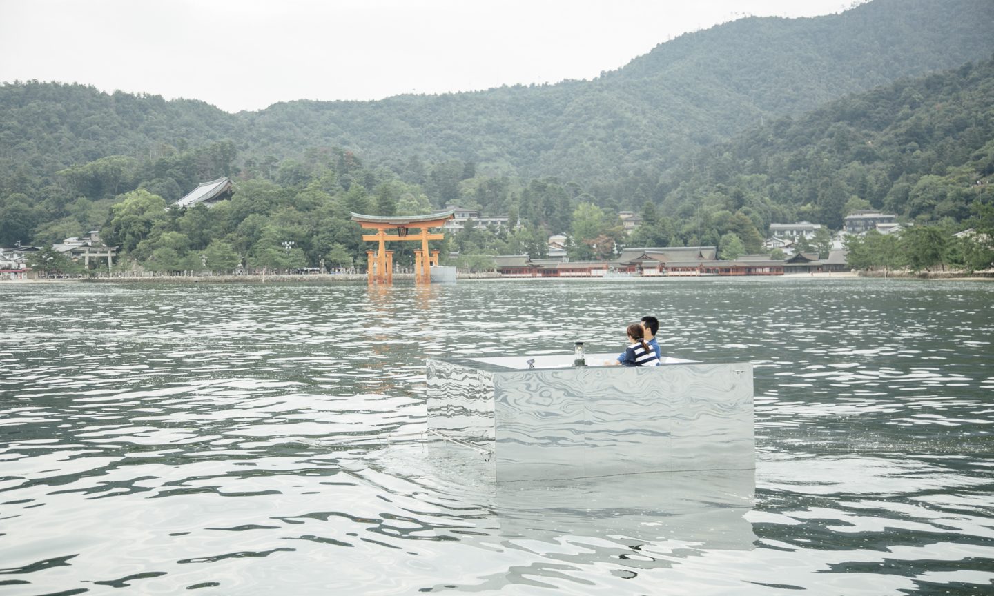 海の上の海 海を二人だけで所有する時間 二人の小さなイカダは 宮島の海の風景を取り込む 海を映すイカダは そのもの自体が海ともいえる ささいで儚いひととき