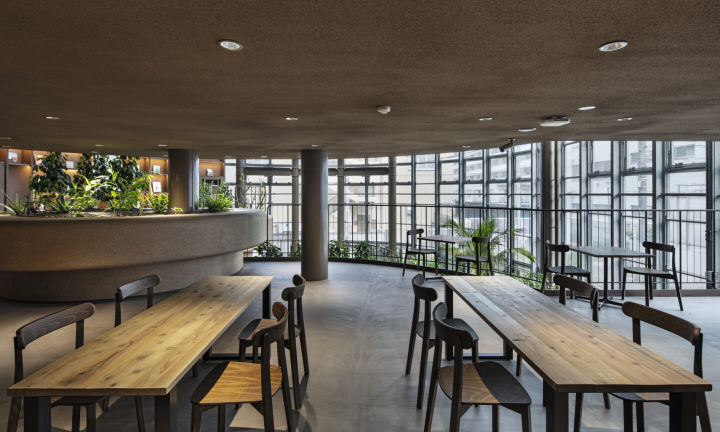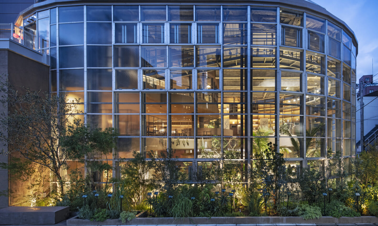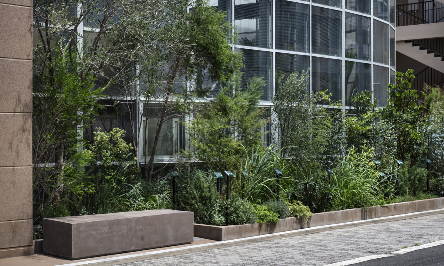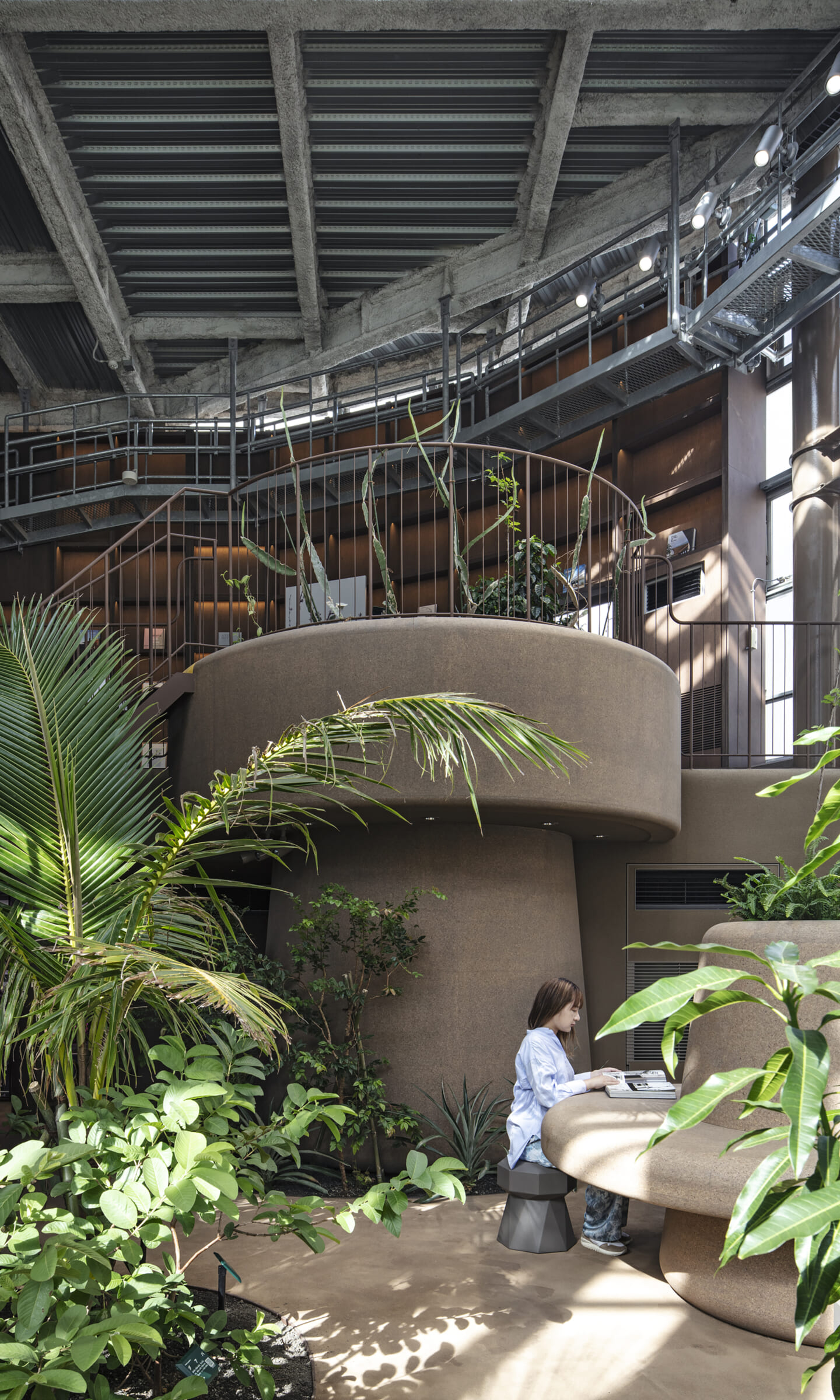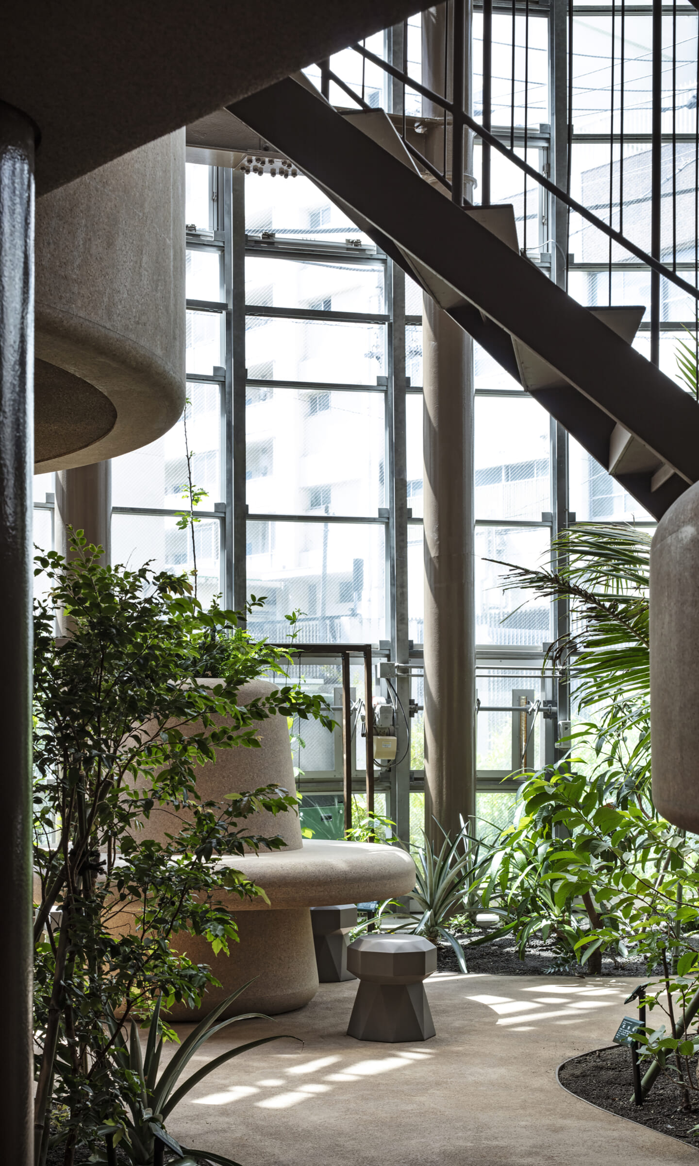 「発芽~増殖~共生」‒自然を構成する細胞の物語をこの空間で建築の手法を用いて語ってみた。街、人、植物、建築を等価に考え調和、同化することで、渋谷らしいあそび心持ちながら、地元の人々にとっての、街中にある心のより所になることを願った。