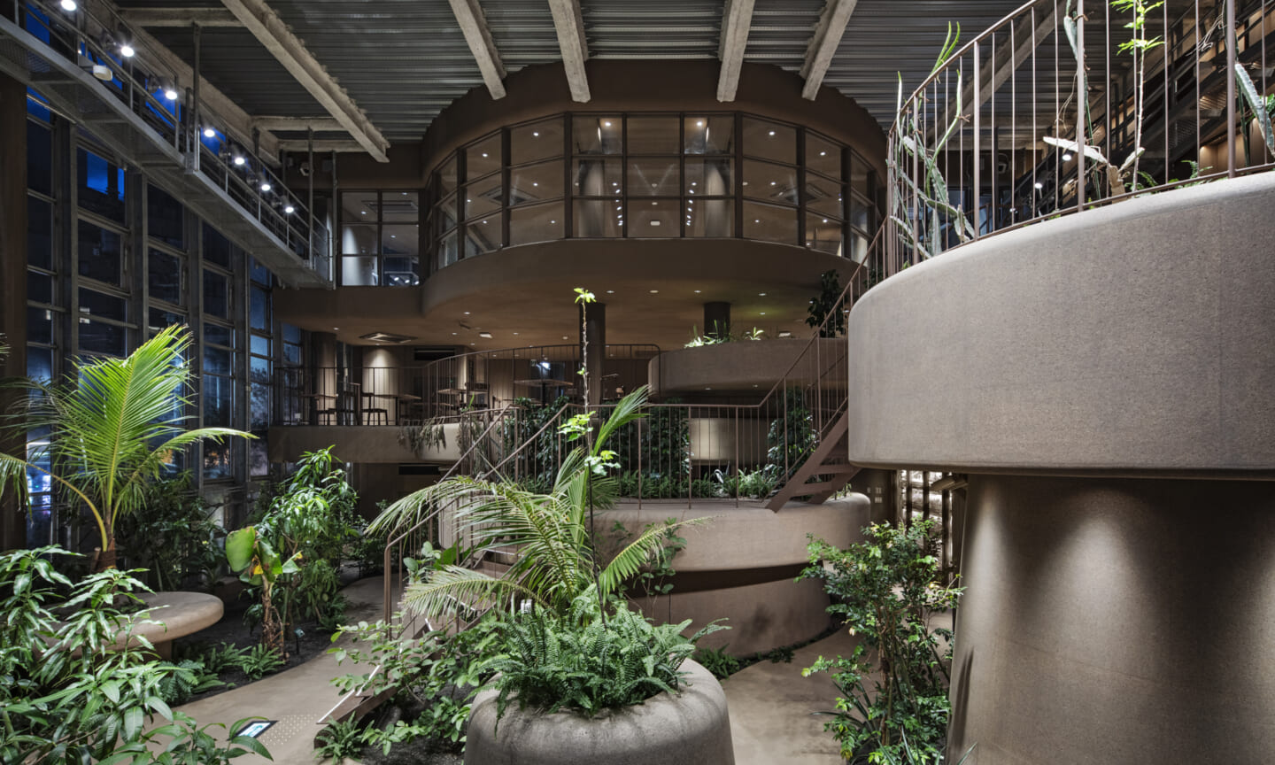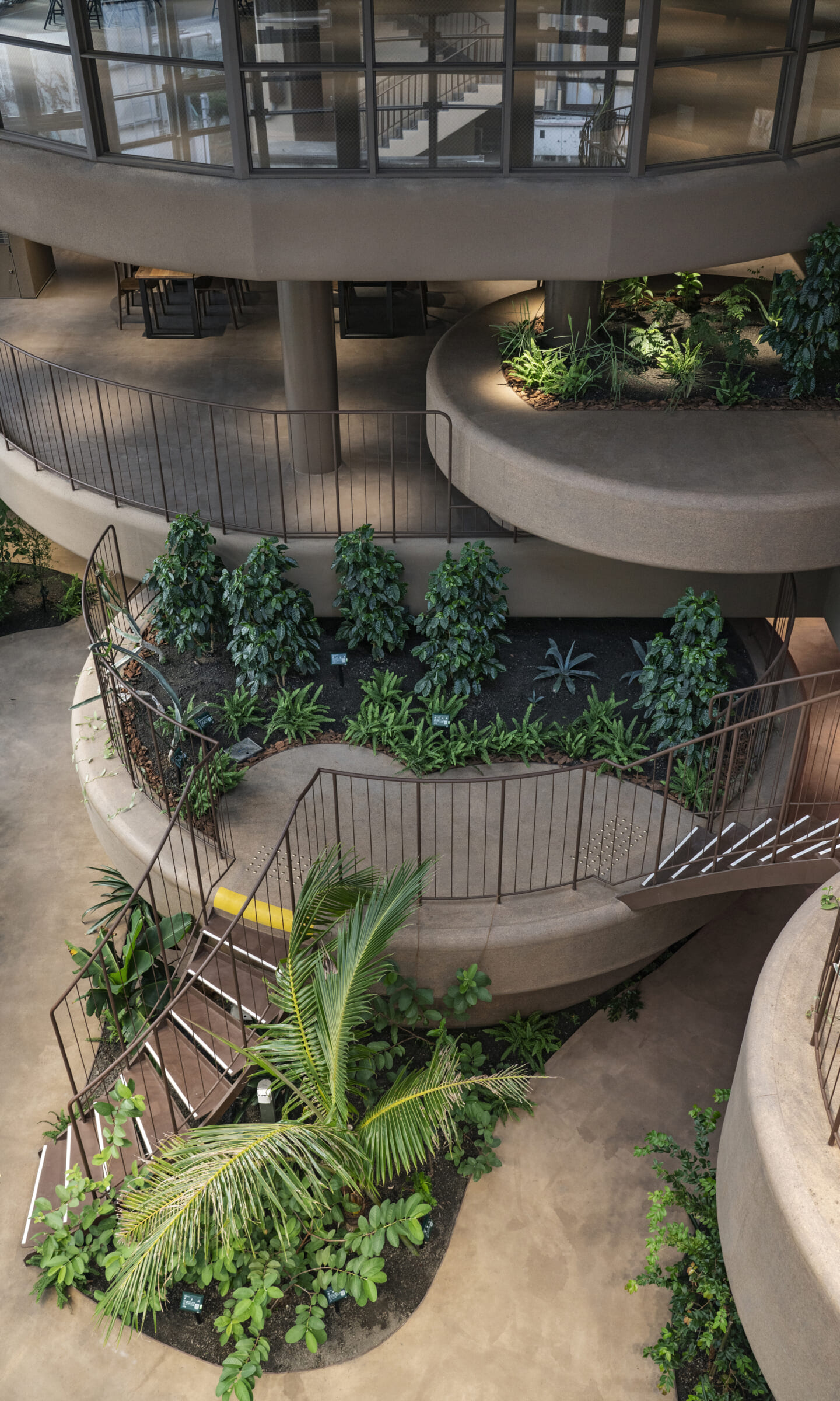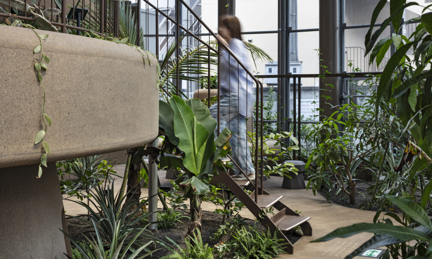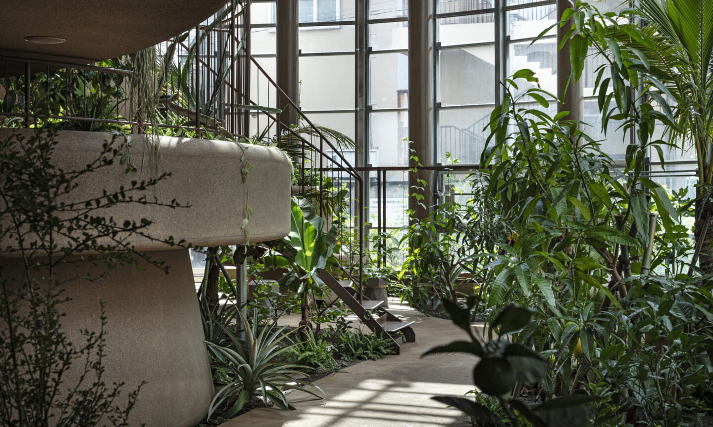 「発芽~増殖~共生」‒自然を構成する細胞の物語をこの空間で建築の手法を用いて語ってみた。街、人、植物、建築を等価に考え調和、同化することで、渋谷らしいあそび心持ちながら、地元の人々にとっての、街中にある心のより所になることを願った。