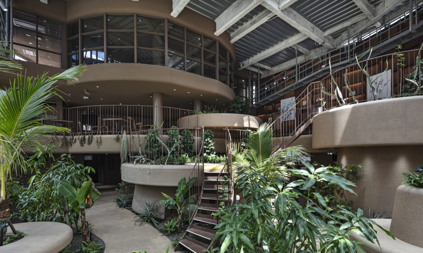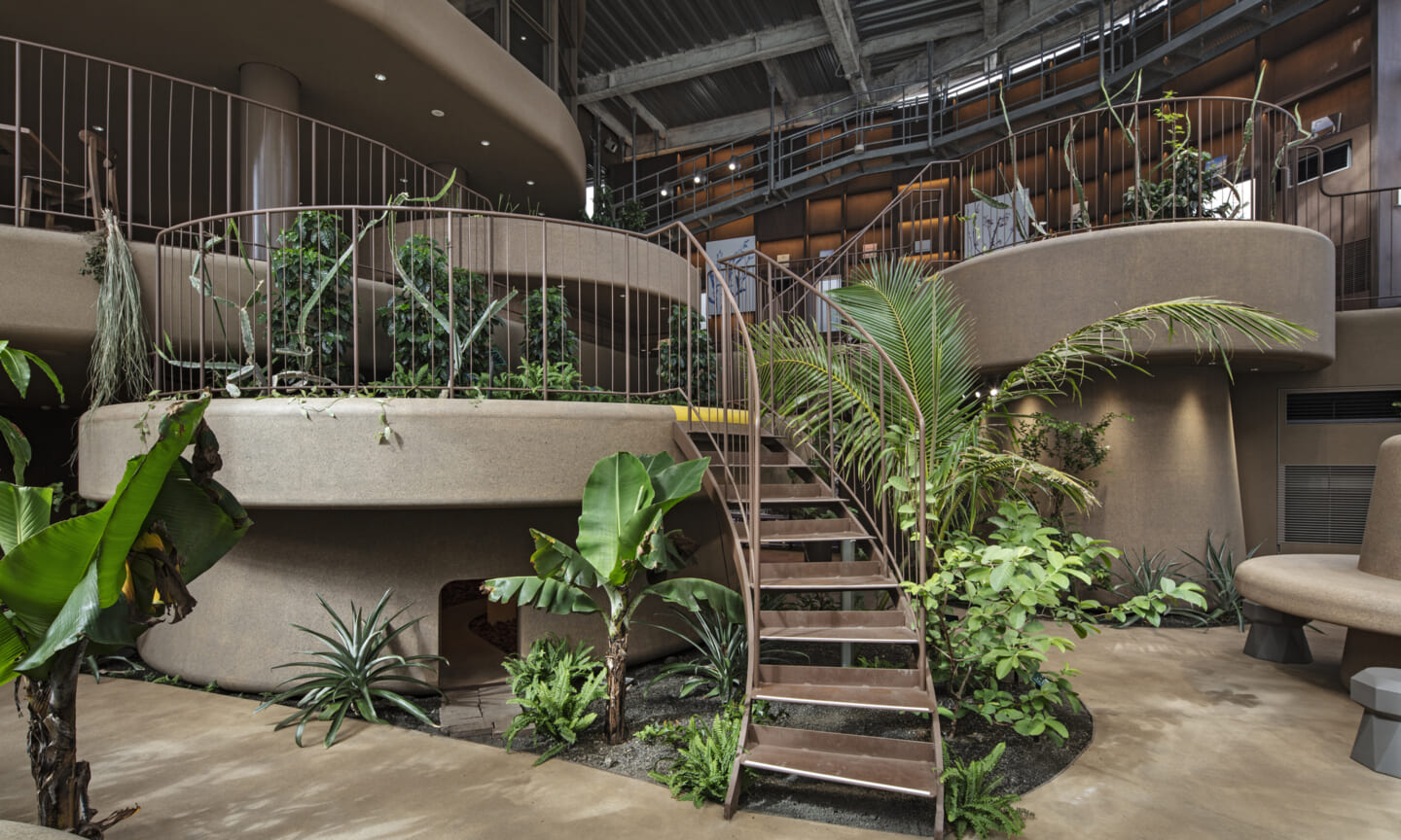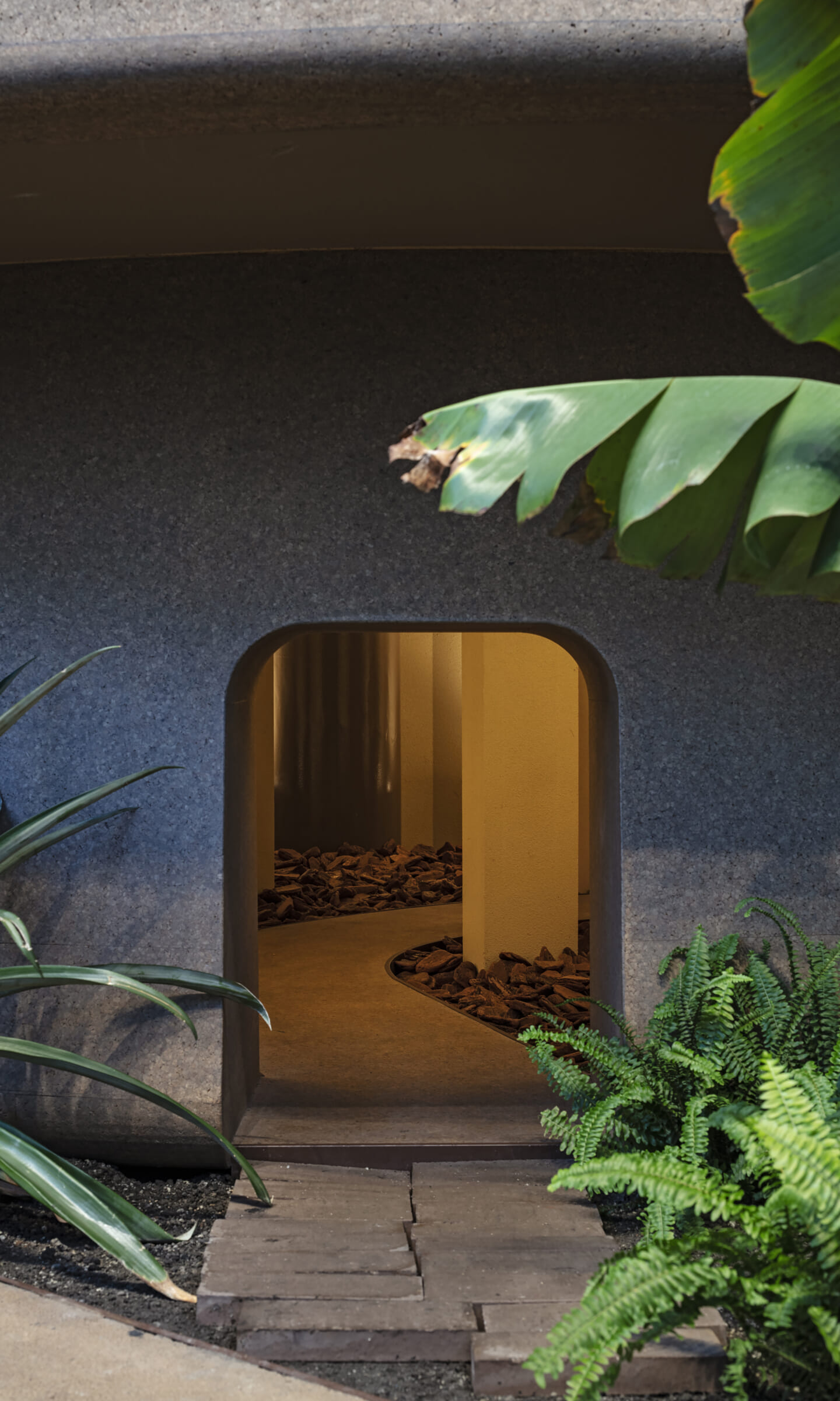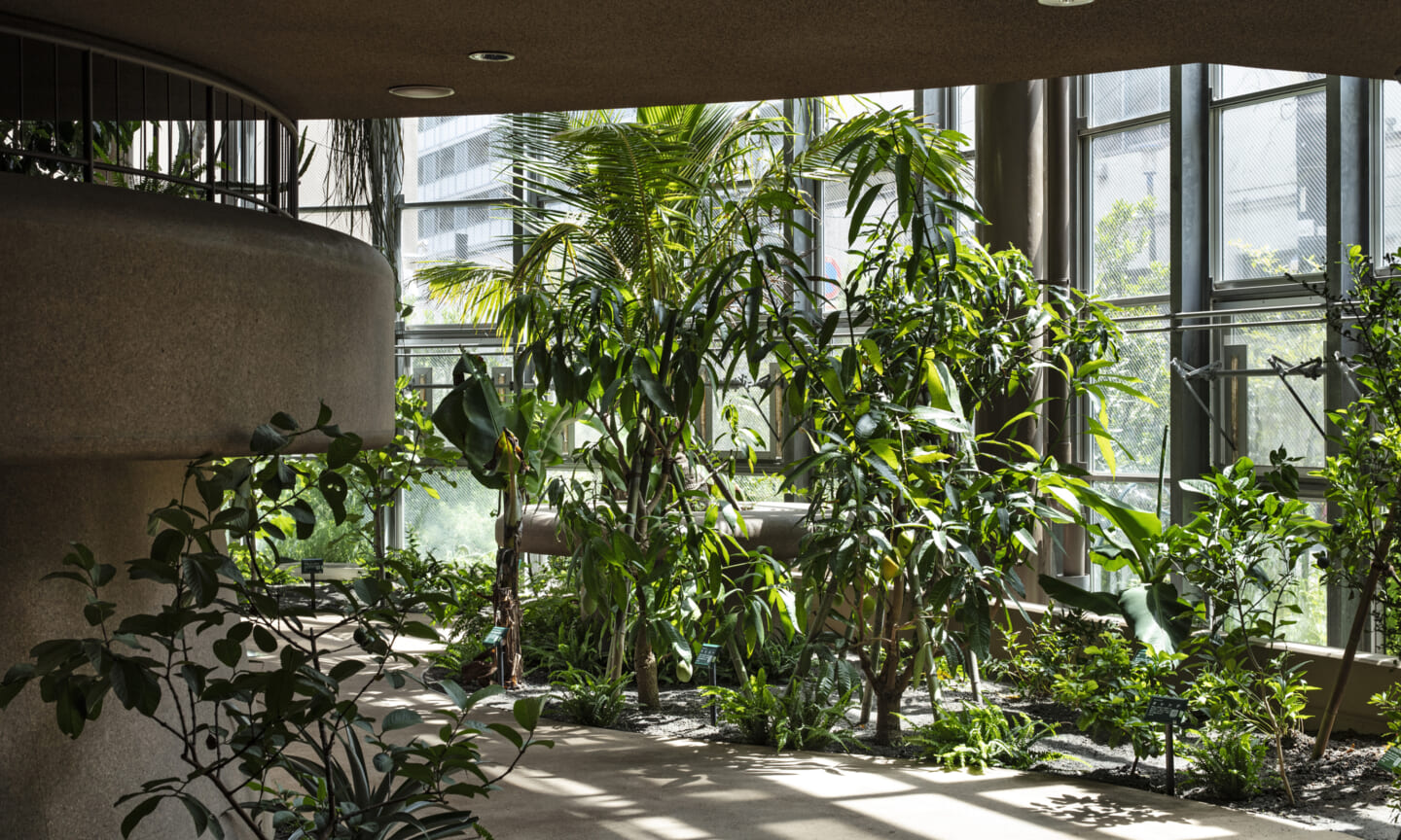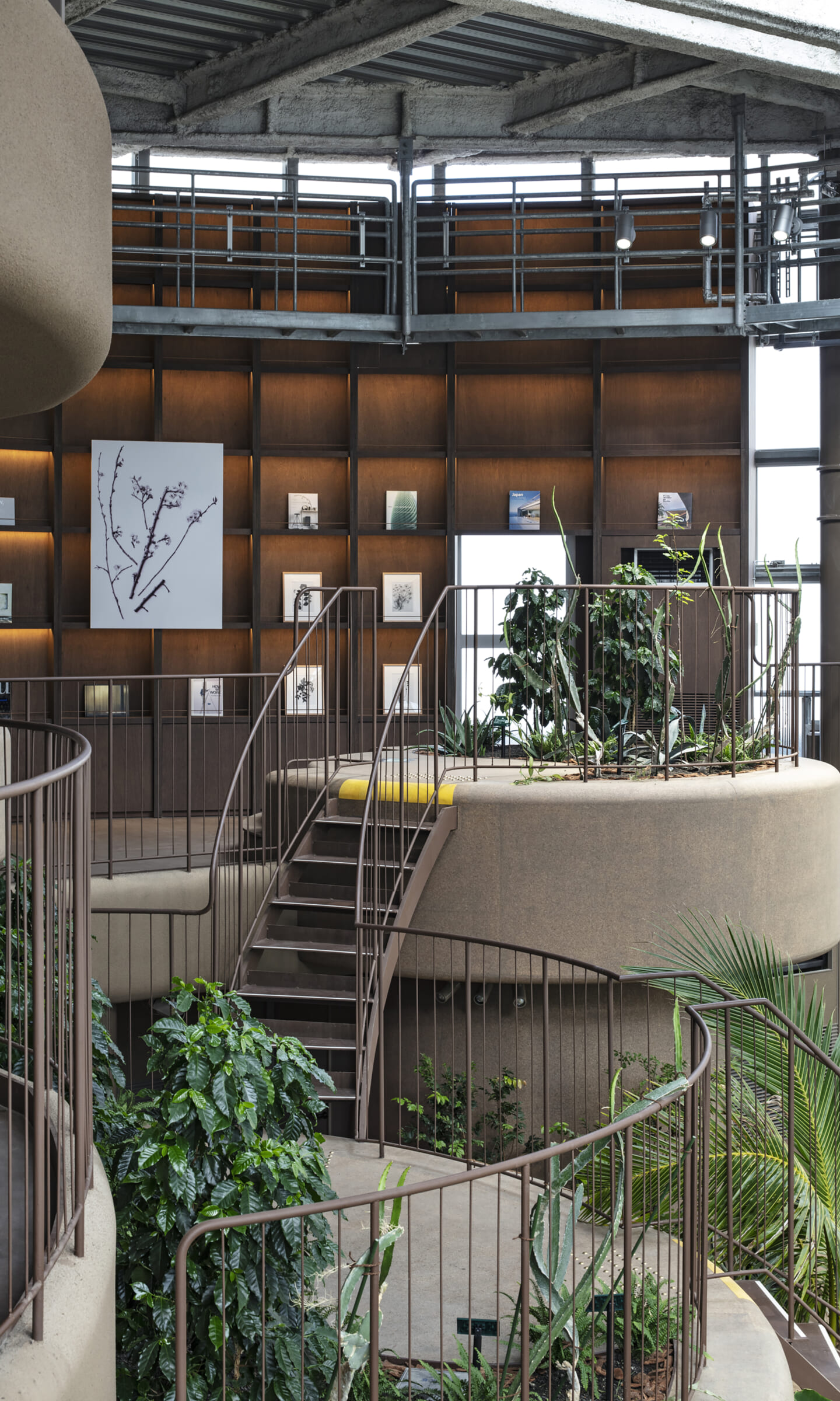 「発芽~増殖~共生」‒自然を構成する細胞の物語をこの空間で建築の手法を用いて語ってみた。街、人、植物、建築を等価に考え調和、同化することで、渋谷らしいあそび心持ちながら、地元の人々にとっての、街中にある心のより所になることを願った。