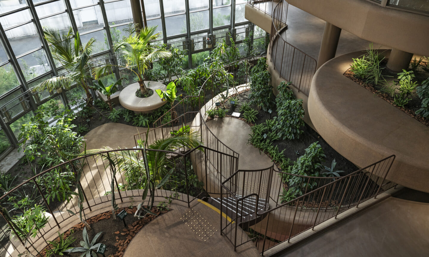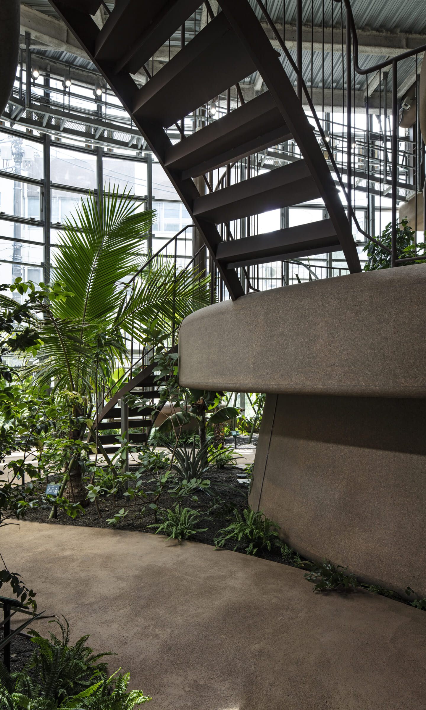 広い植物園でよく見かける、大きい植物のある広大でかつ平面的構成という構成とは差別化するために、あえて体験が発生する場ー「土の舞台」をつくり、そこで森羅万象な風景を“発生させた”。