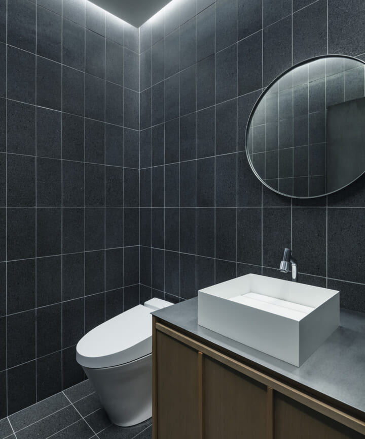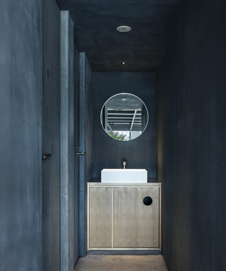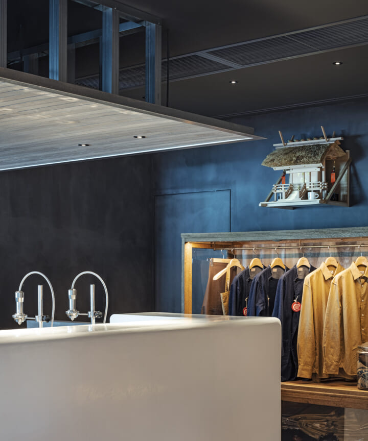天井格子、障子、タイル割り、軽鉄、畳、棚割、建具など、空間の中にクレームワークを散りばめると同時に、線形を顕在化させる左官面を配し、コントラストを生み、背景としての空間を目指した。
