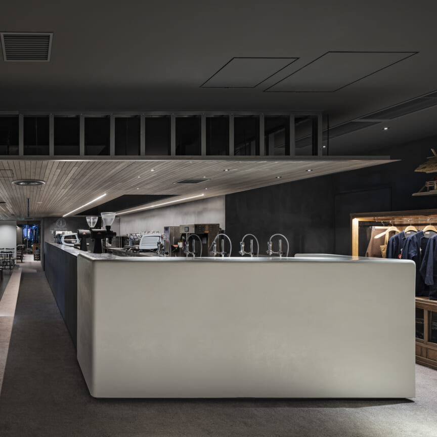 映画の世界を忠実に表現するのではなく、猿田彦珈琲という現代の珈琲屋をつくる上で、その原理を空間に配しながら、人の背景となるフレームワークの組み合わせが、美しいシーンをつくる映画の構成を空間に置き換えながらデザインをした。