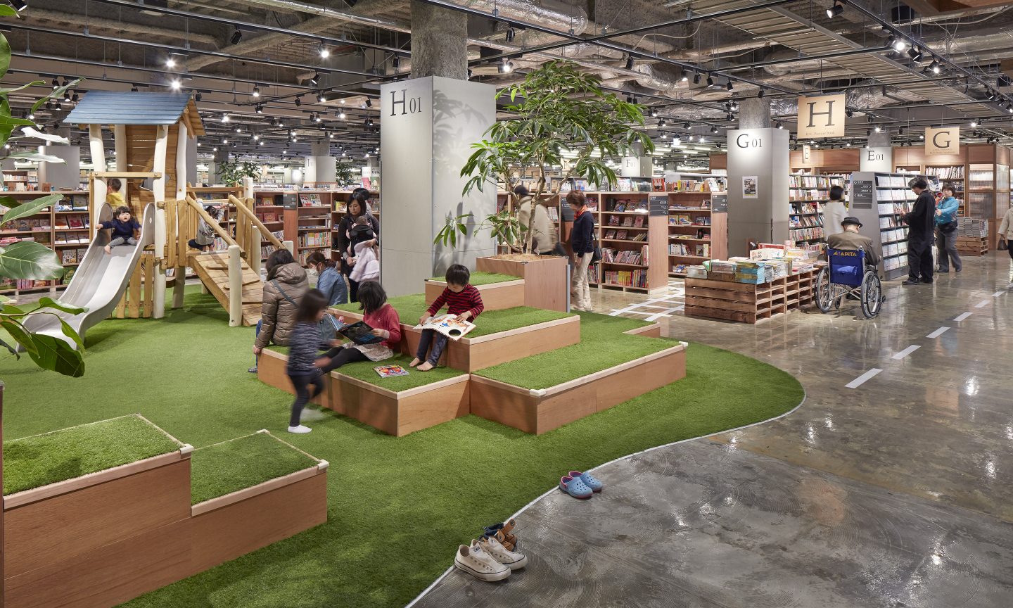 ショッピングモールなど、通常の商業施設は通路と店舗のスペースが分かれているものだ。しかしその境界を曖昧にし、店の軒を出すことで、お客さんは通路を歩いていながら、知らず知らずのうちに、お店に入っていく。本があると人が集まってくる。カフェがあると人が滞在する。遊び場を併設することで、人を休ませる場所にもなり、その結果滞在率が高くなり、消費につながる。