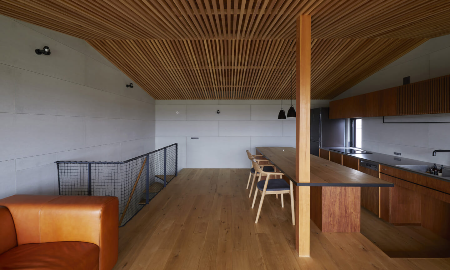 家の中の屋根=斜面は、機能が固定されていない場所となり、生活と風景が連続したシーンをつくり、住まいに自由を与える余白となっている。