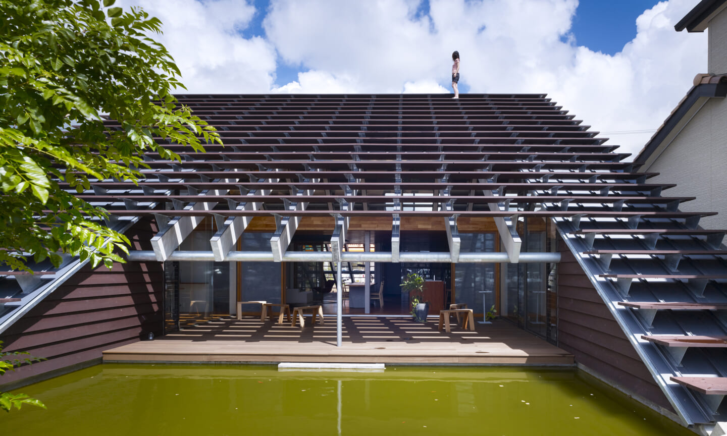 昔からある、光や風、水や影といった決して新しい材料ではないが、建築と常に関わりのある要素をもう一度、見直すことで、これからの豊かさになるのではないか。熱いときには、木陰に入ったり、水を見ることで涼しさを感じたり柔らかい光や風を感じたりと、いたってあたりまえであったことをもう一度見直すことから導き出せるのではないかと考えた。よって、ここでは、大屋根によって、敷地に大きな影の空間をつくり、水面で冷やされた風が室内を通り抜けていくための形態をとっている。