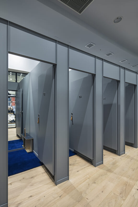それらの個性をカスタマーに感じてもらえるショップにするために、コーヒーやドーナツなどのフードに加え、レコードの販売、刺繍やワッペンなどで商品のカスタマイズやワークショップが行える機能を内包した 「Gap の世界観が凝縮したGap CAFE」という小屋(シェッド)を建築し、カフェがエントランスとなるようなお店の在り方を提案した。