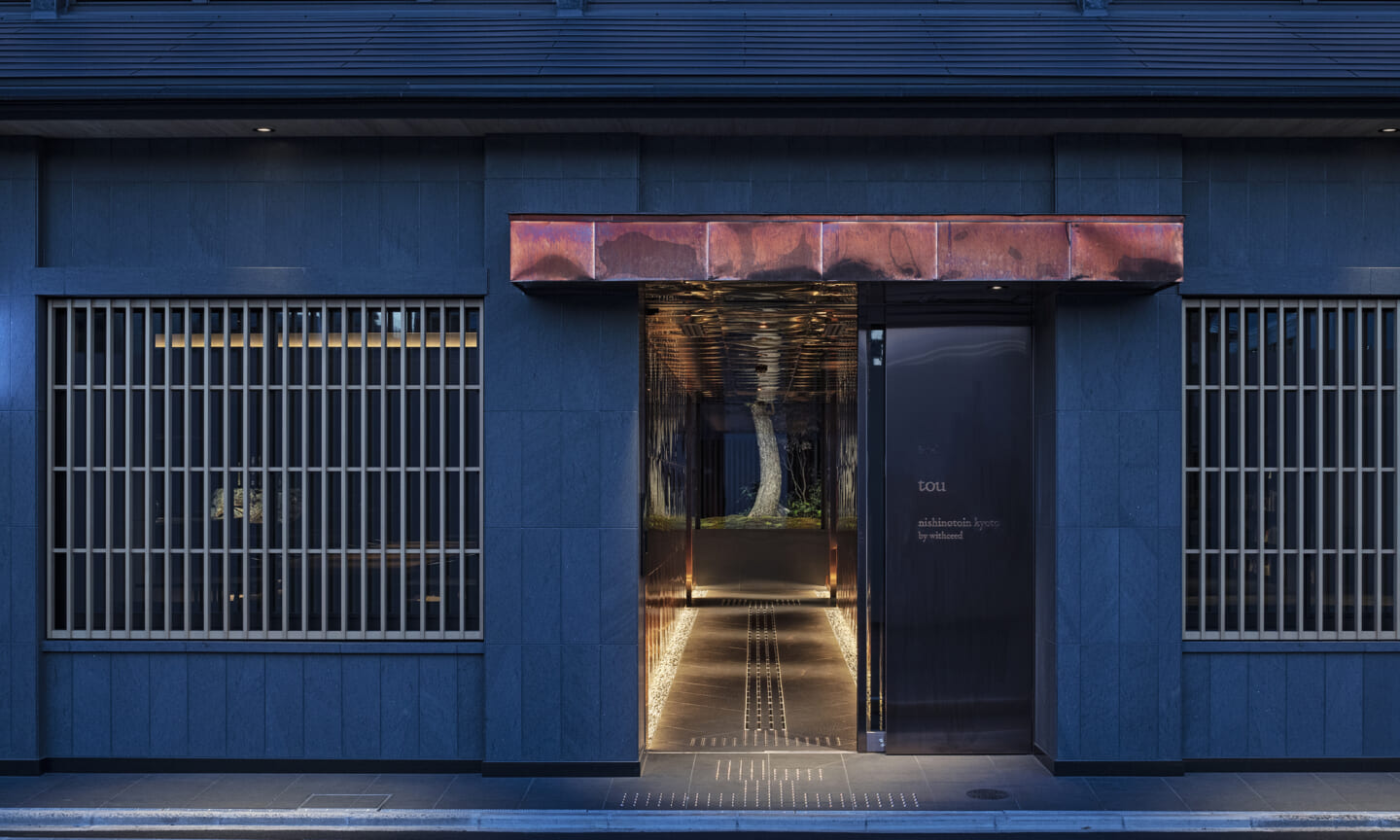 西本願寺と東本願寺の間、西桐院通り沿いに建つこのホテルは、仏具店が軒を連ねる閑静なエリアにある。観光客で賑わう中心部から少し離れた立地であることもひとつの個性と捉え「奥」というコンセプトを軸に、落ち着きのある空間、京都の歴史や文化の“奥深さ”を感じられるホテルを目指し計画を始めた。