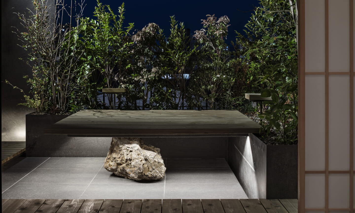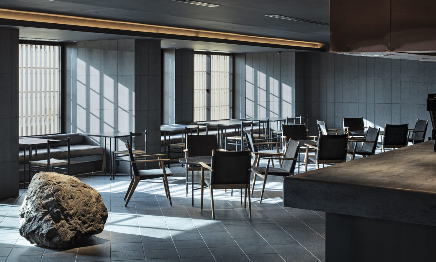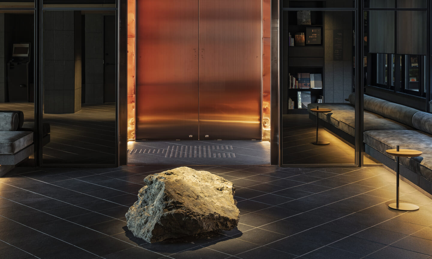 このプロジェクトで大切にしたのは、物と余白の関係性がつくる“間合い”や、一つの石が想起させる庭の存在など、人の視覚や予感や想像力といった“感覚”をデザインすることで、奥へと導くシークエンシャルな体験と場の空気感を設計したことだ。それらに加え、枯山水や茶の湯など日本文化に根差す美の概念。その奥深さを、造園・アート・本・グラフィック・食のクリエーターの感性が加わり、訪れる人の感性によって多様な解釈で楽しむ体験こそがこのホテルの目指すべき在り方ではないだろうかと考えた。