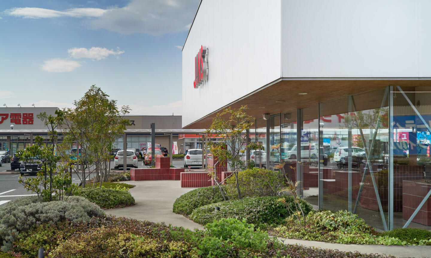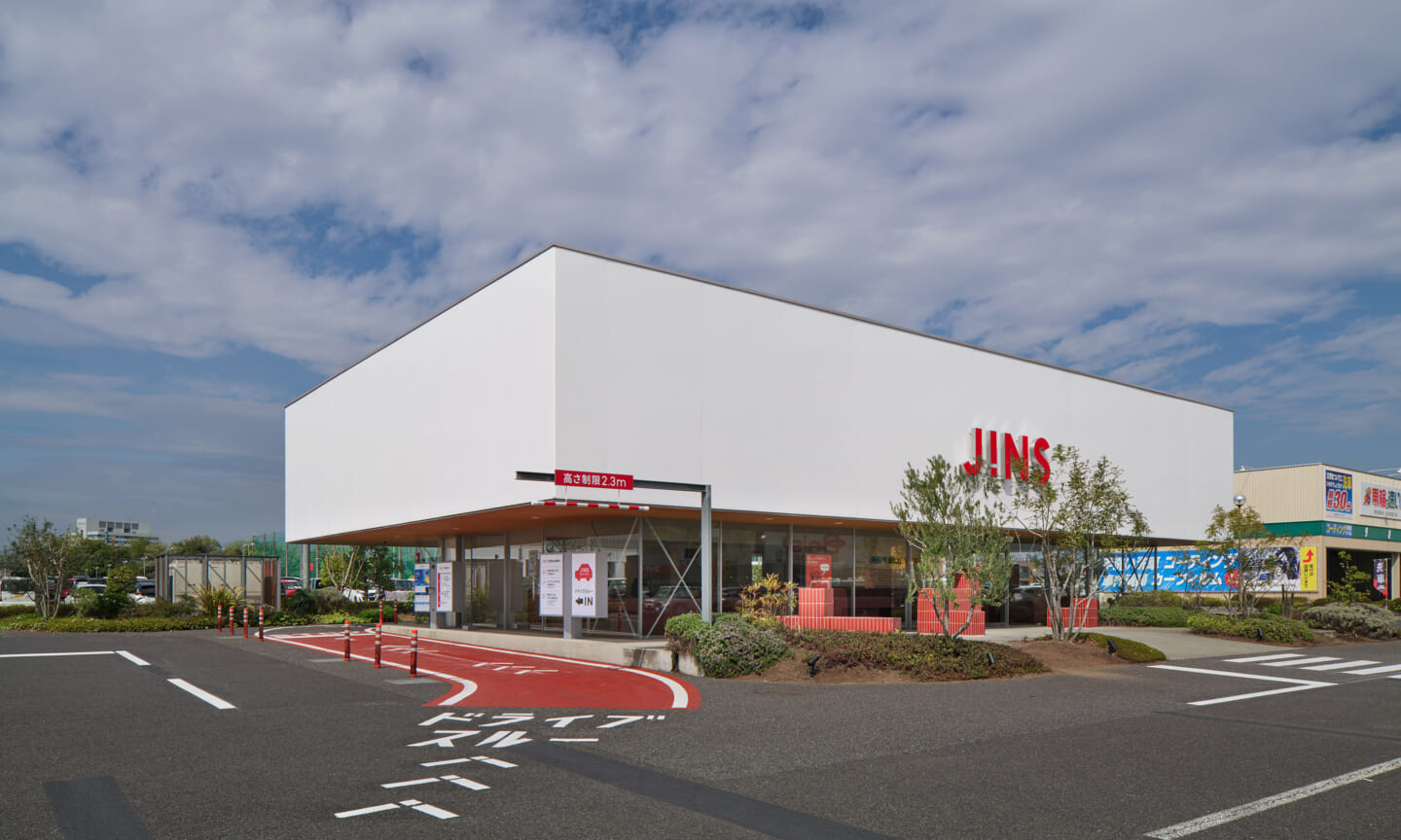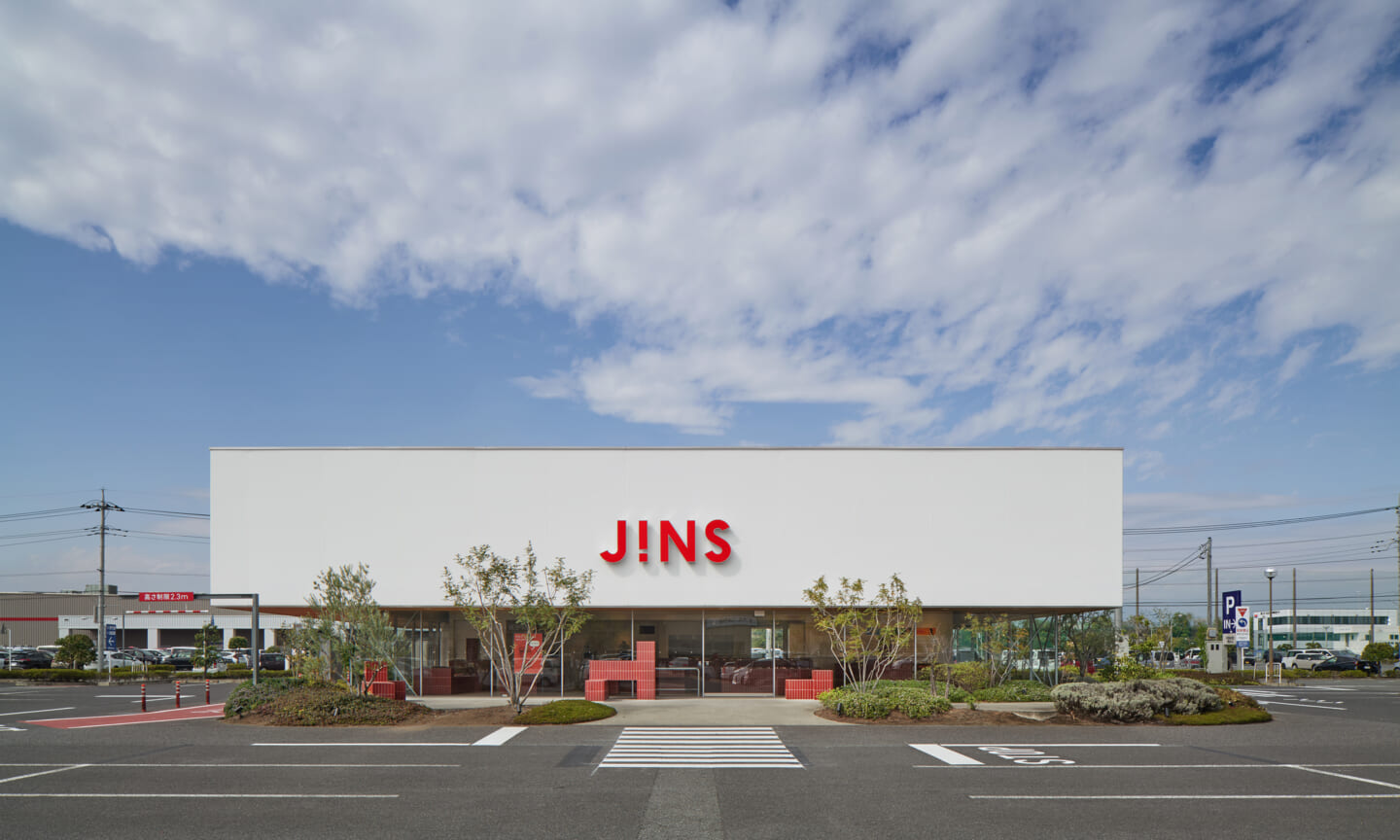 ドライブスルーでメガネの販売や受け取りができる画期的なアイデアを具現化すべく10年前に建築の計画をした前橋みなみ店。この度のリニューアルでは数あるJINSのショップのなかでも珍しい“庭をもつ店舗”ならではの魅力を、中と外との繋がりによってデザインしたいと考えた。
