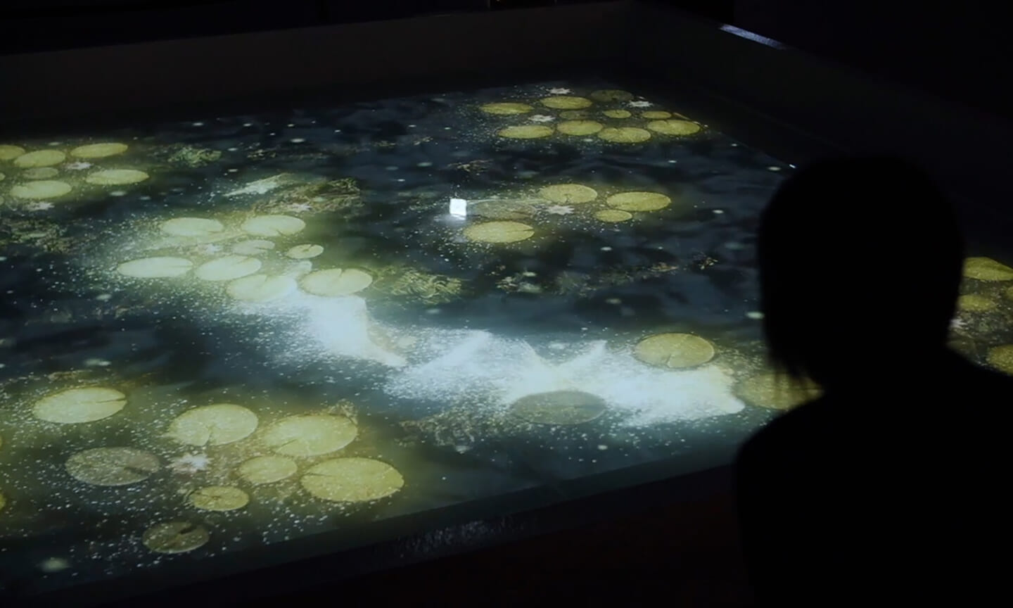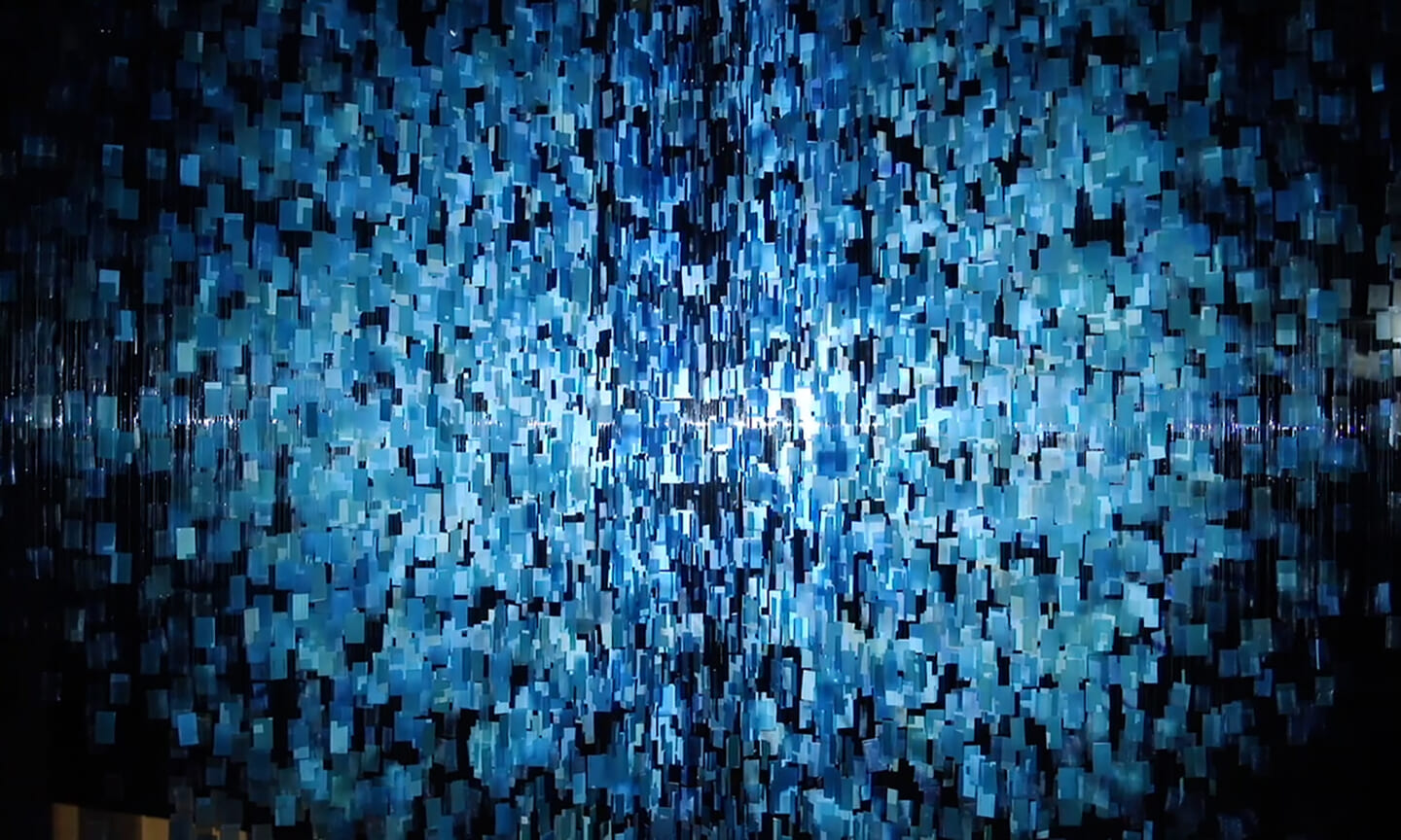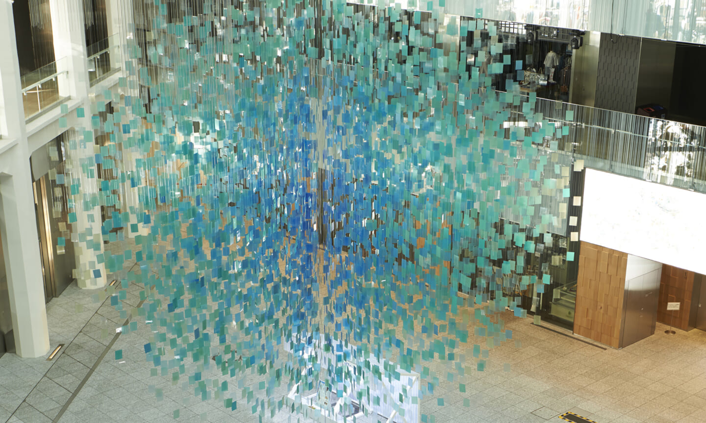 水が奏でる涼やかな音色と共に大輪の水花火によって彩られたアトリウム空間