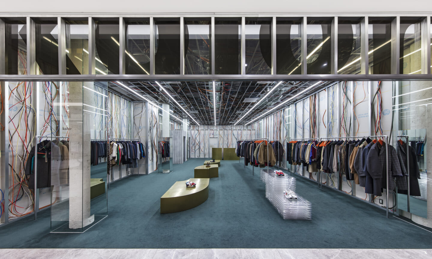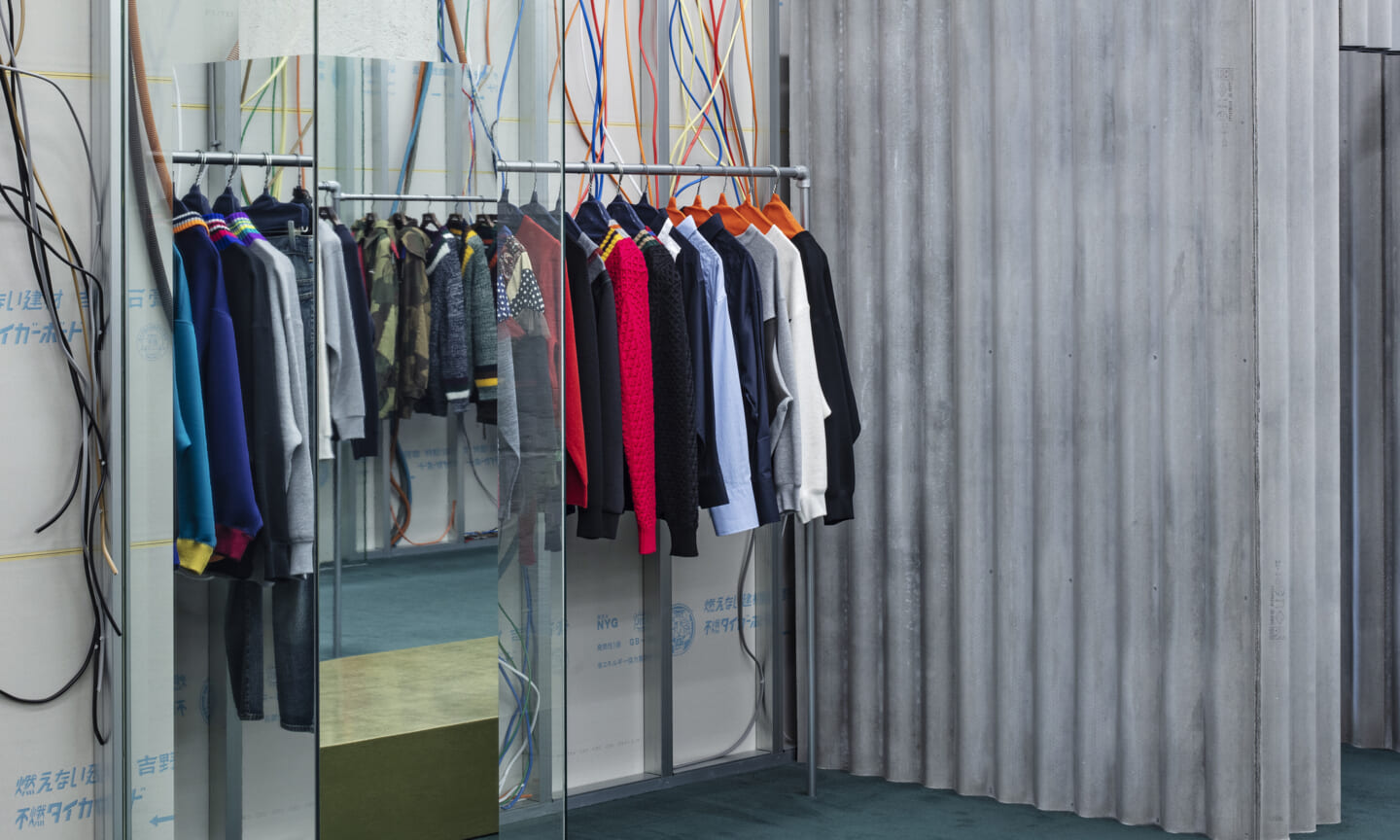 Kolorというブランドを考察すると、素材、パターン、加工、色など、洋服を構成する様々な要素において、はっとさせられるような“良い違和感”が感じられる。ショップのデザインに際し、その “良い違和感”という感覚を幾つかの“対比”を用いてブランドの魅力として空間的に表現したいと考えた。