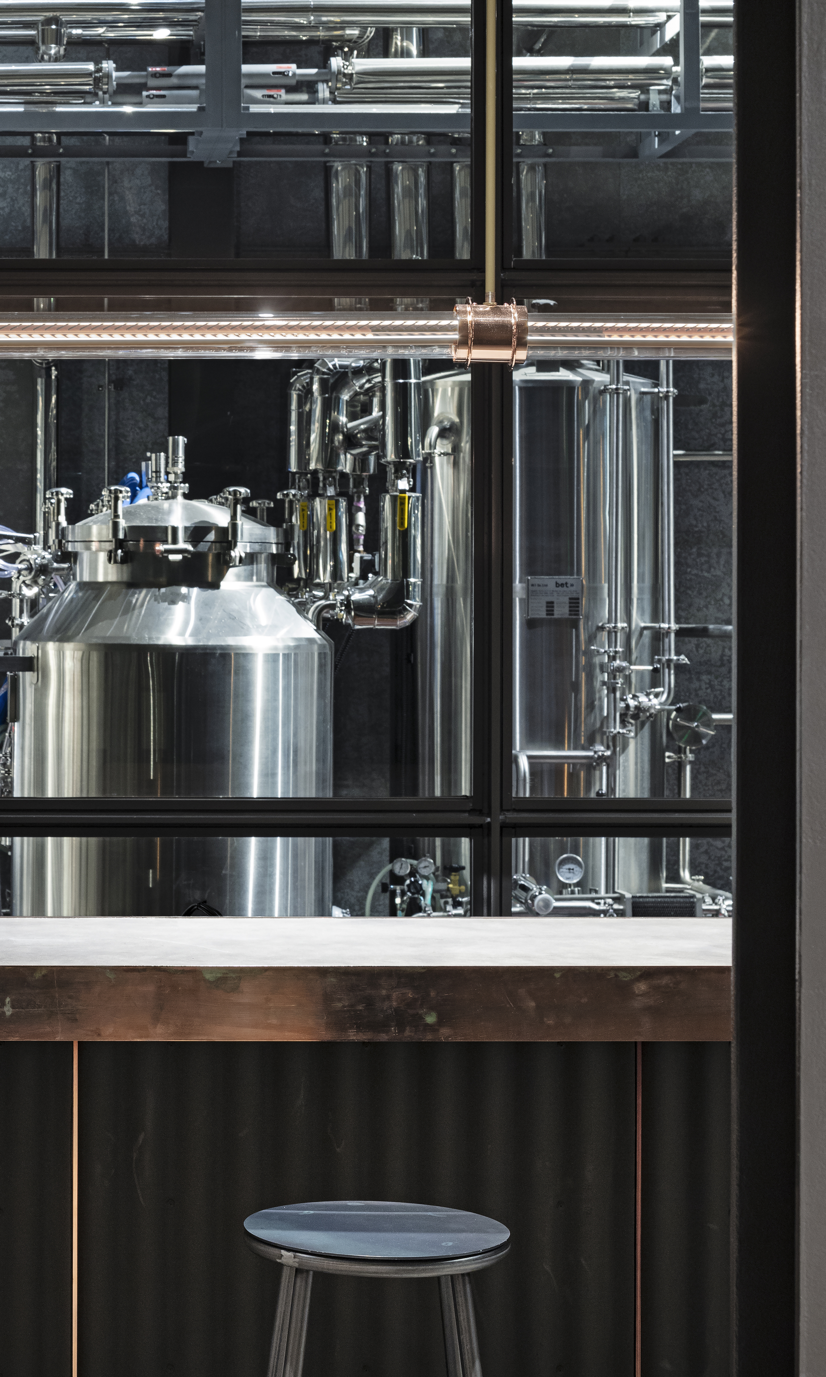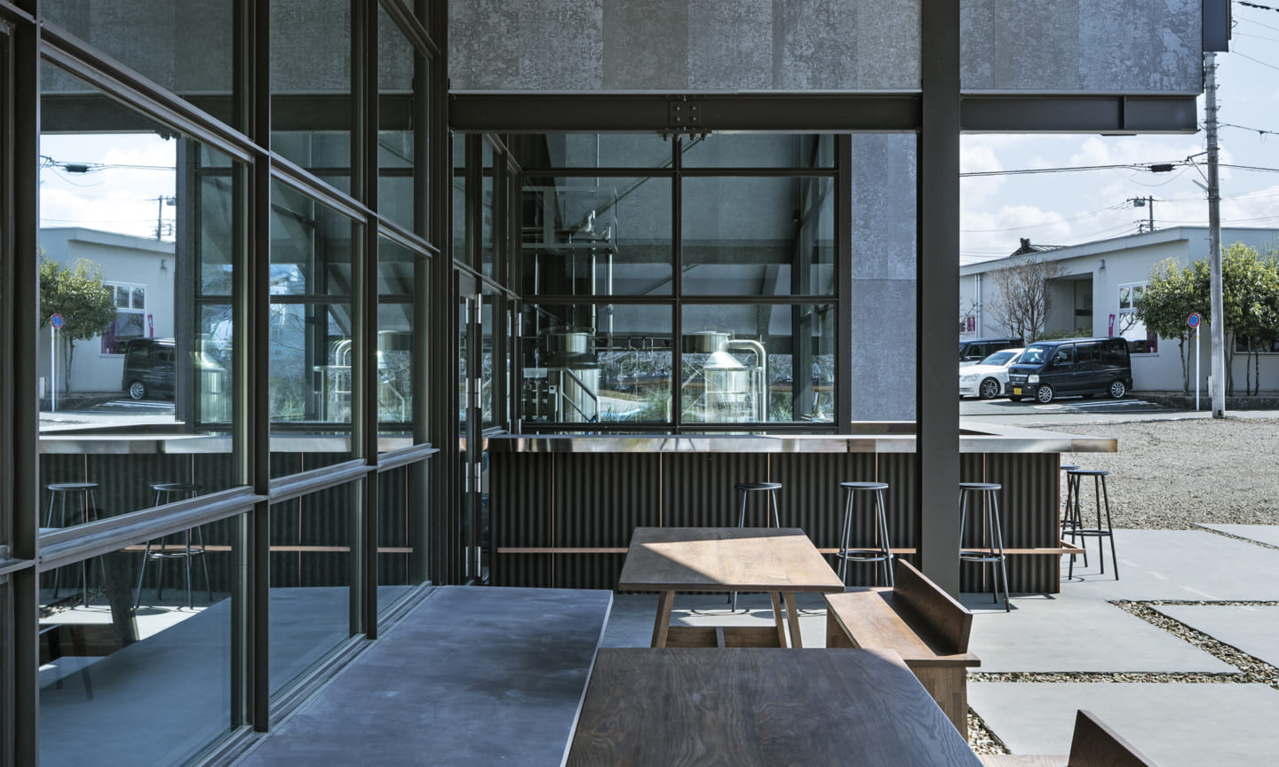 雨が降り、森が育み、水が生まれる自然の巡りを体で感じ美しいと思うように、土地の恩恵である原材料から手仕事による生産、水と醸造と空間が相互扶助する関係を訪れた人が自然と味覚や嗅覚など身体的に体験できるよう丁寧に設計することで、味わいが助長される空間。一杯の美味しさを通じ、この土地の豊かさや地域の営みを感じ、街の新たな魅力が熟成されることを願う。