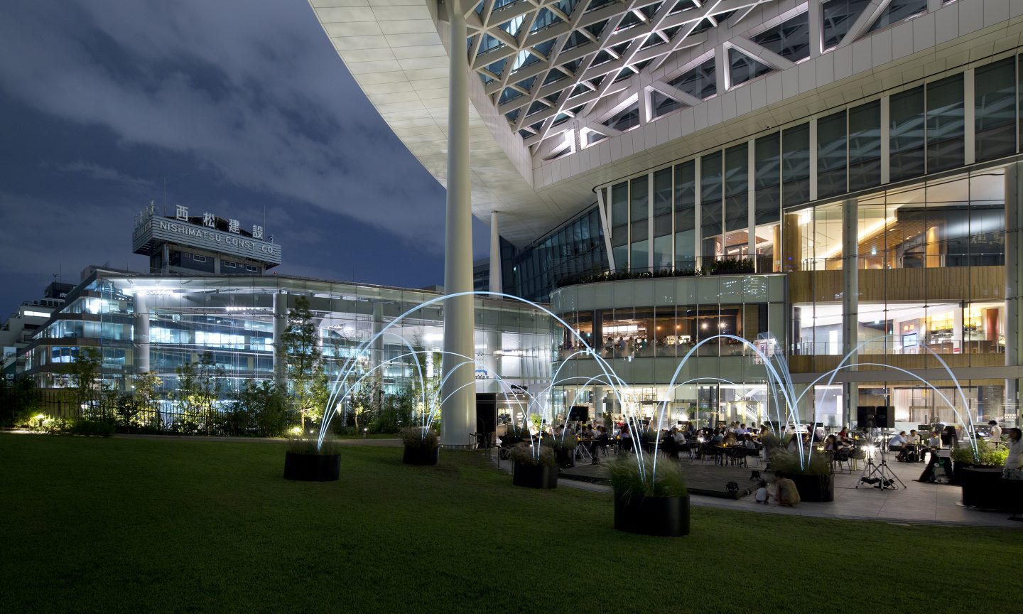 風にそよぐ草のような、寄せて返す波のような自然の移ろい。星の動きや月の満ち欠けのような重力の示す曲線。こういった自然界に潜む美しい要素を抽出し再解釈することで都会の中の森という抽象化された新たな領域をつくりました。