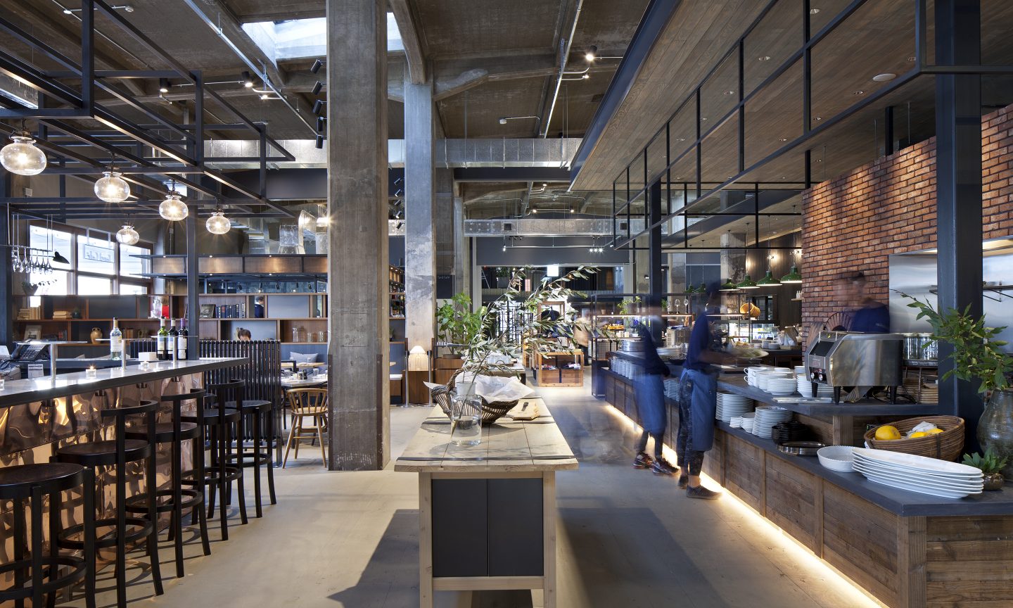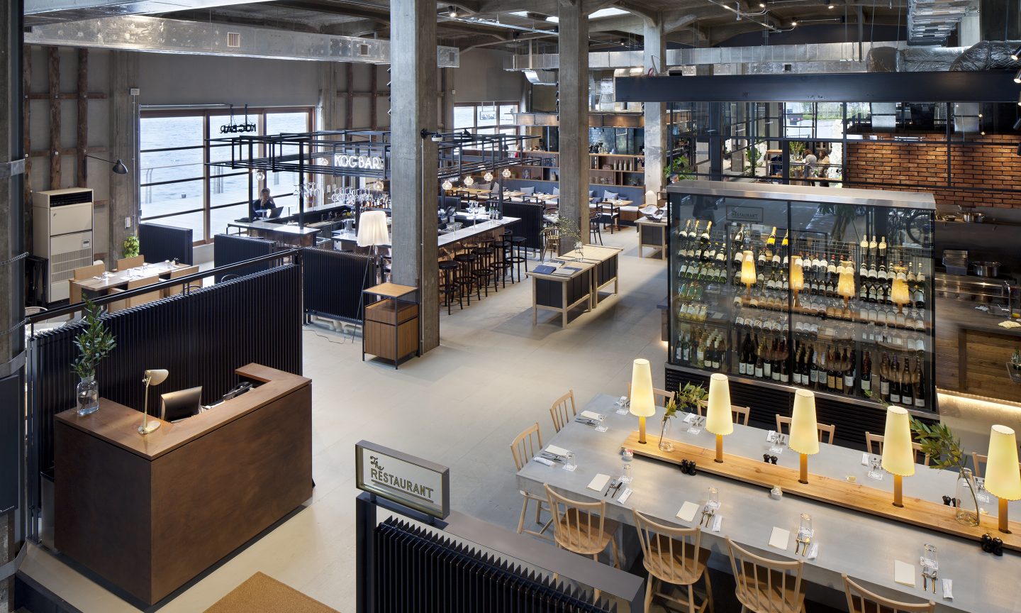 私たちは海沿いの古い倉庫をコンバージョンし、新たな拠点施設として、ホテル、サイクルショップ、イベントスペース、バー、レストラン、ベーカリー、コーヒーショップ、食品やアパ